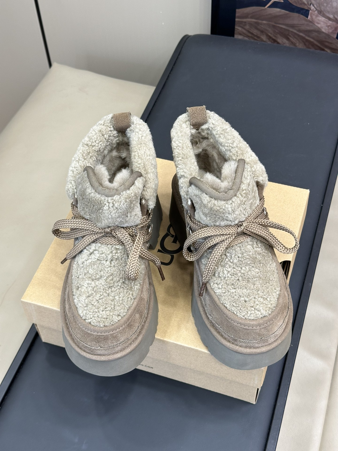 这款鞋子是AAAAA 1:1 质量 (非常棒). 使用了和原版一模一样的材料. 商标部分也保持了和UGG雪地靴一样. 图片拍摄是实物鞋子拍摄, 您所收到的实物保证和我们图片一模一样.