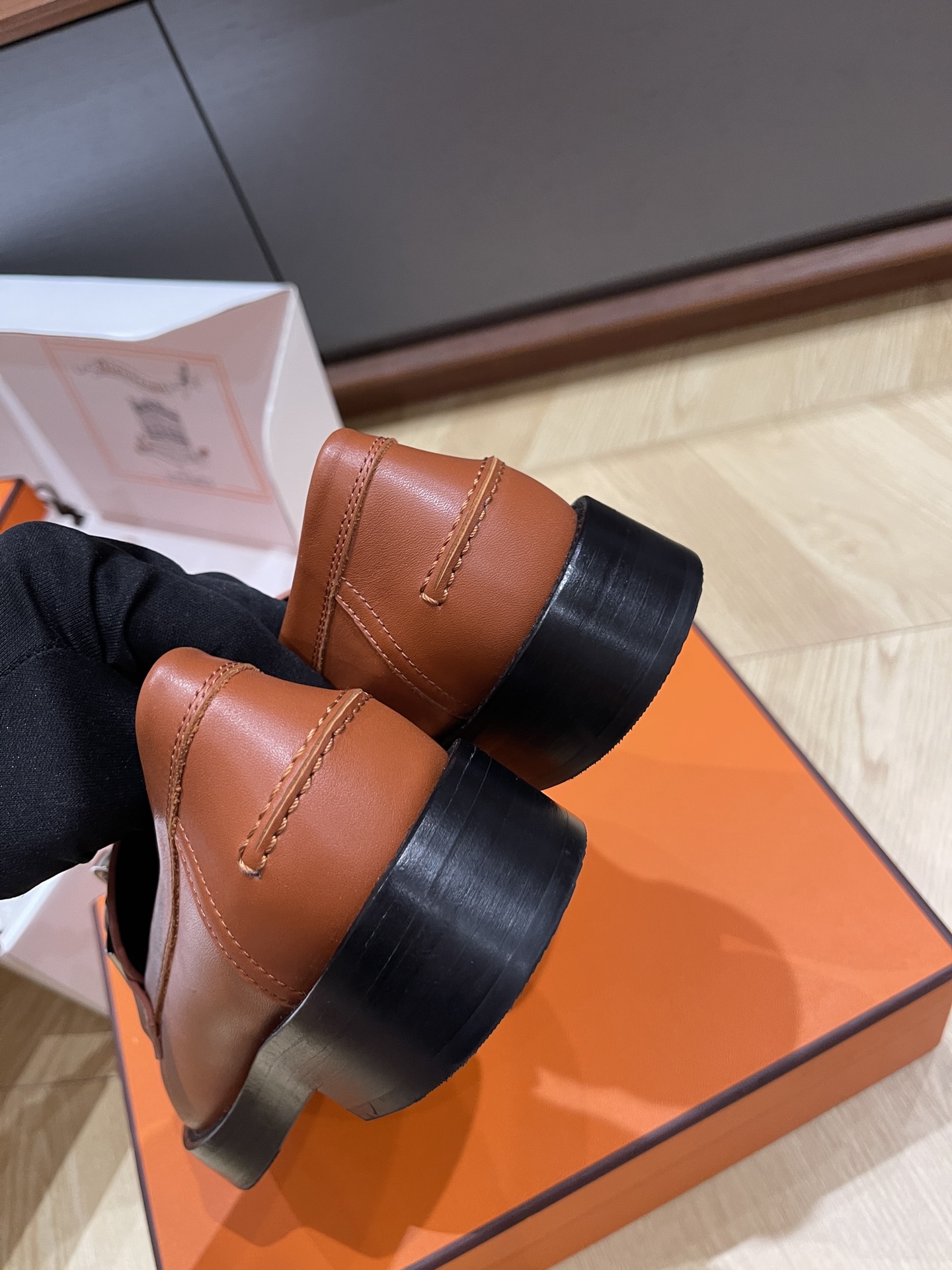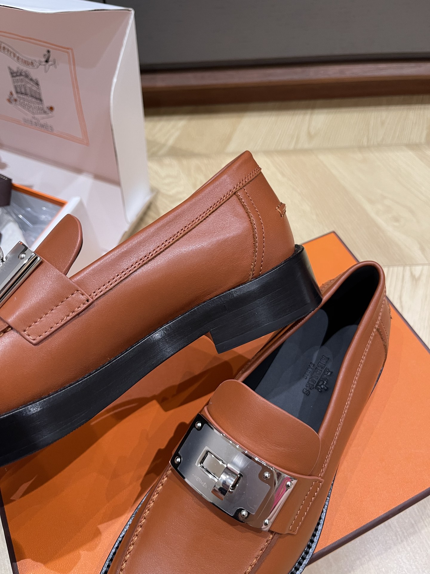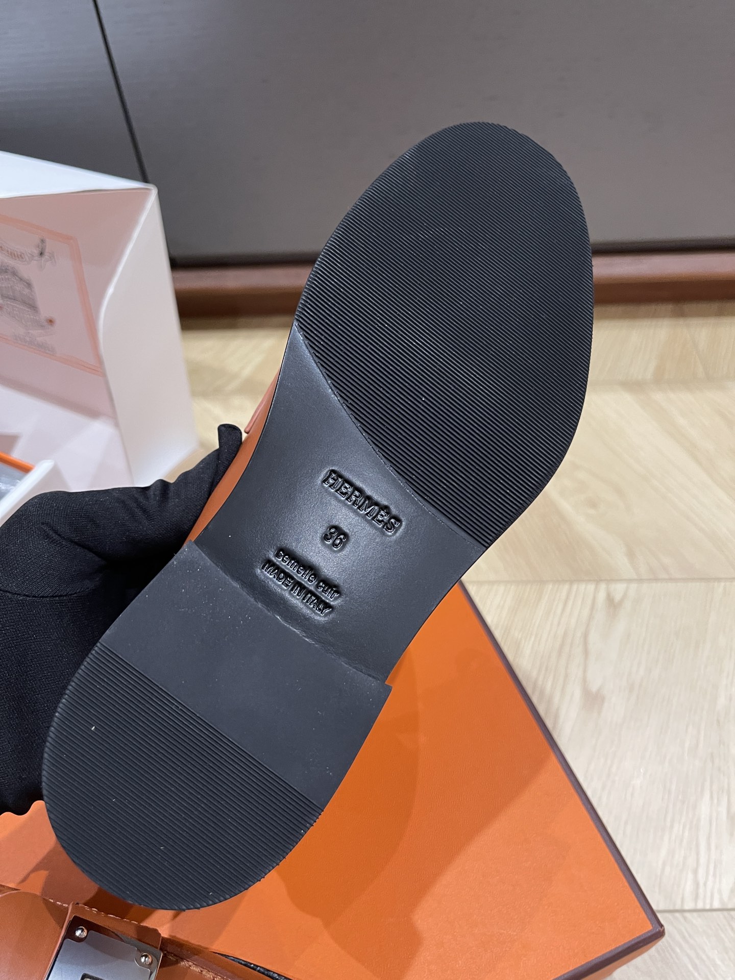 这款鞋子是AAAAA 1:1 质量 (非常棒). 使用了和原版一模一样的材料. 商标部分也保持了和爱马仕/Hermes一样. 图片拍摄是实物鞋子拍摄, 您所收到的实物保证和我们图片一模一样.