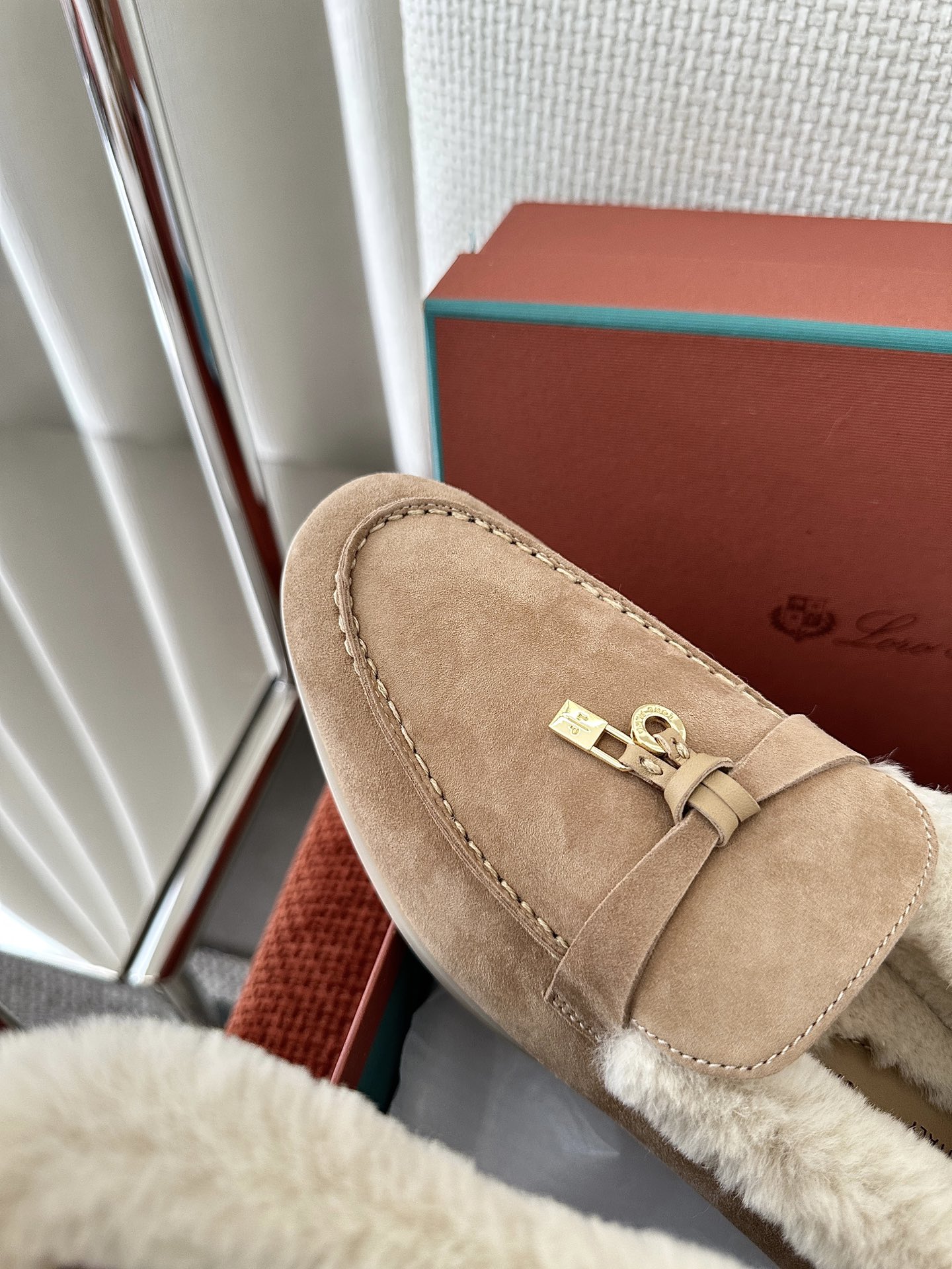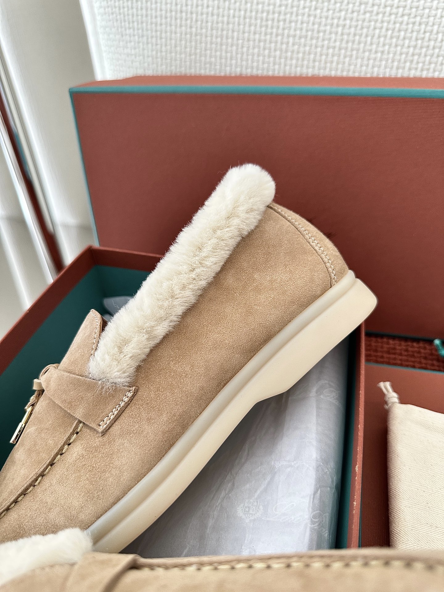 这款鞋子是AAAAA 1:1 质量 (非常棒). 使用了和原版一模一样的材料. 商标部分也保持了和洛罗皮亚纳/Loro Piana一样. 图片拍摄是实物鞋子拍摄, 您所收到的实物保证和我们图片一模一样.