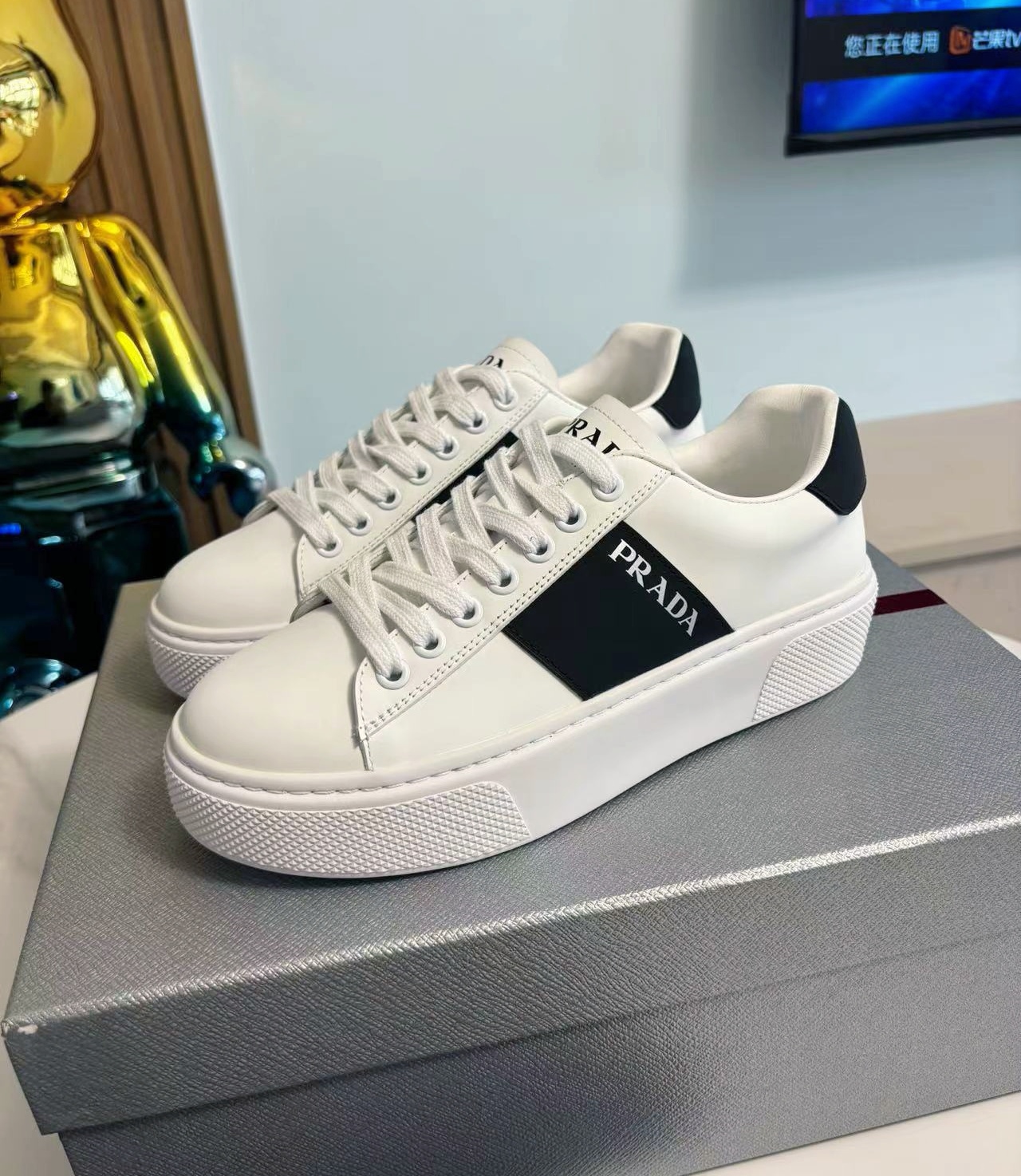 这款鞋子是AAAAA 1:1 质量 (非常棒). 使用了和原版一模一样的材料. 商标部分也保持了和普拉达/Prada一样. 图片拍摄是实物鞋子拍摄, 您所收到的实物保证和我们图片一模一样.