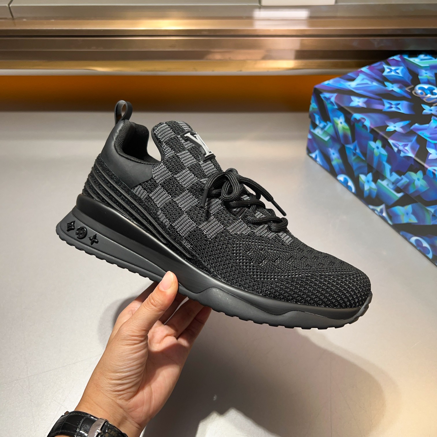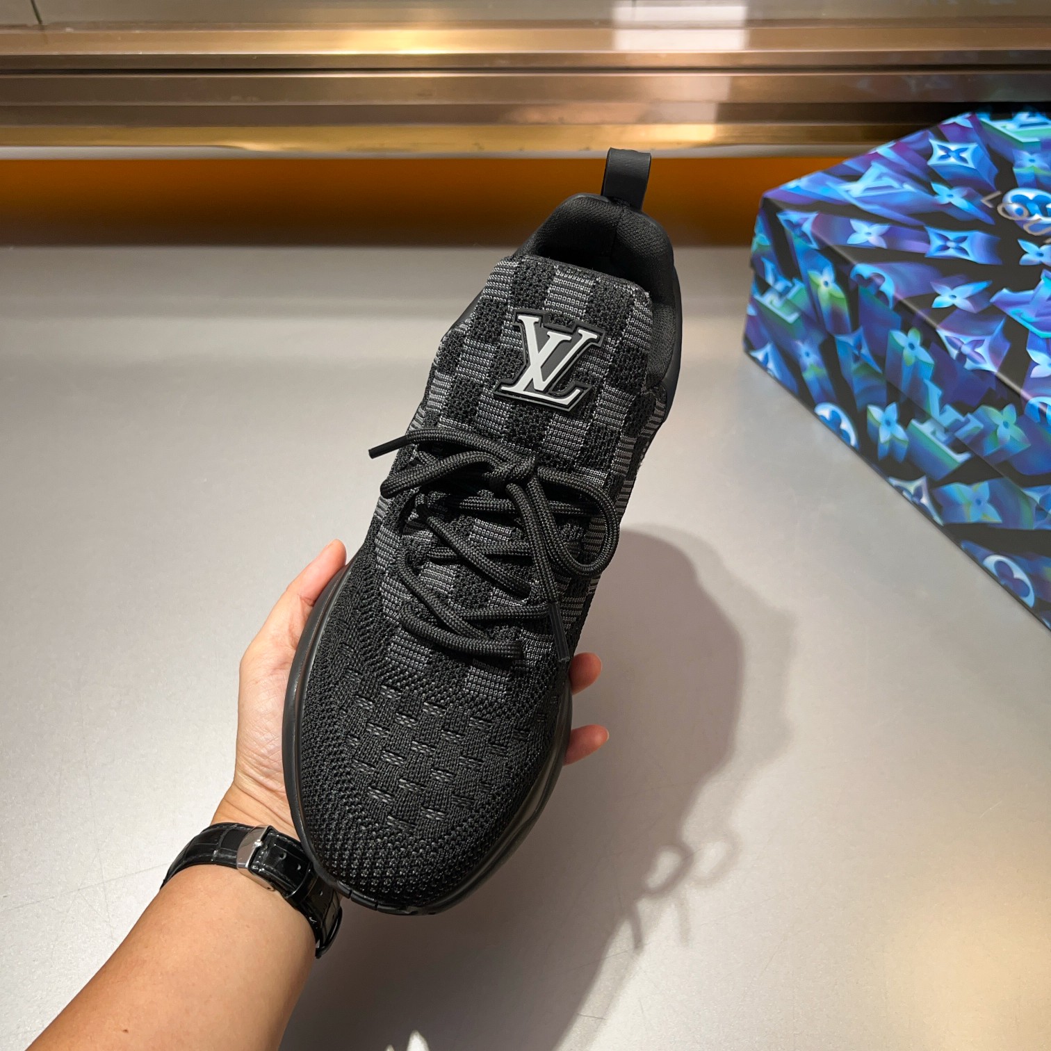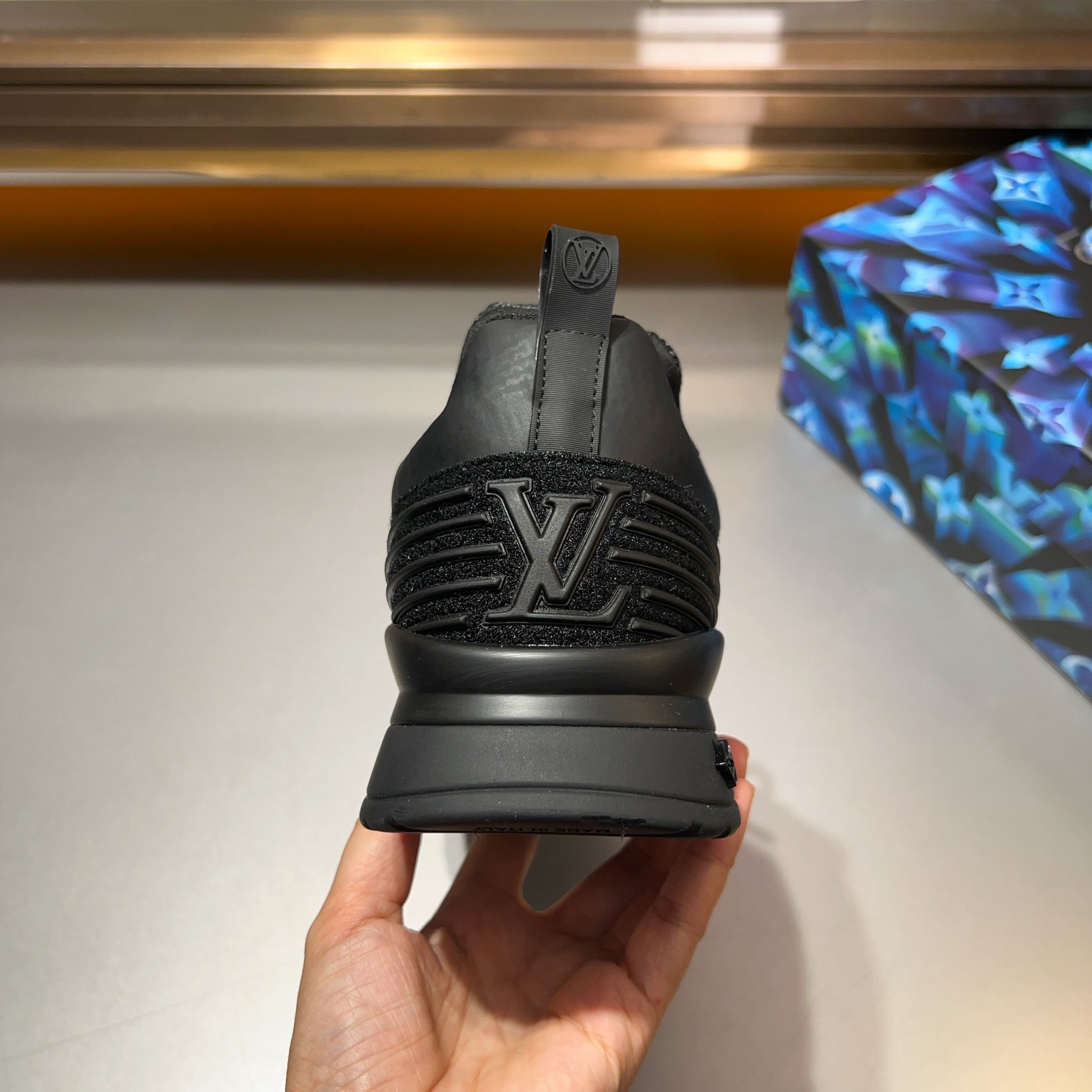 这款鞋子是AAAAA 1:1 质量 (非常棒). 使用了和原版一模一样的材料. 商标部分也保持了和路易威登/Louis Vuitton一样. 图片拍摄是实物鞋子拍摄, 您所收到的实物保证和我们图片一模一样.