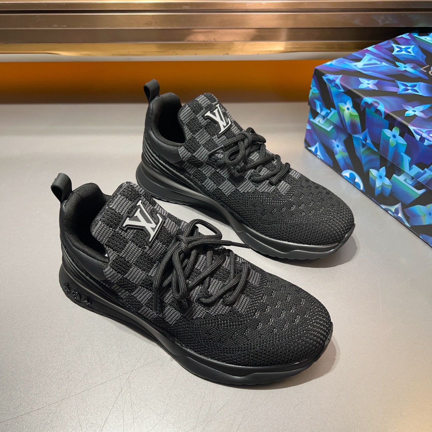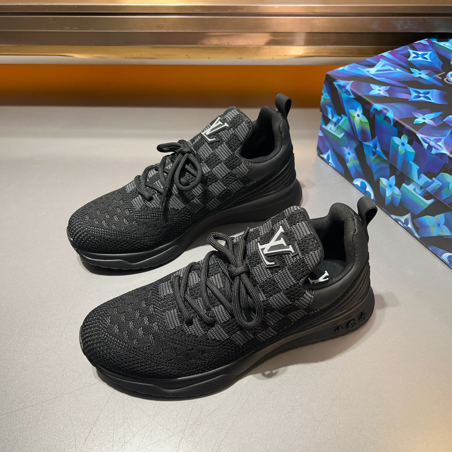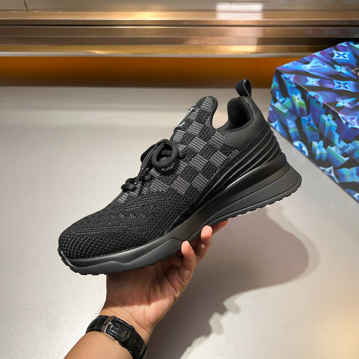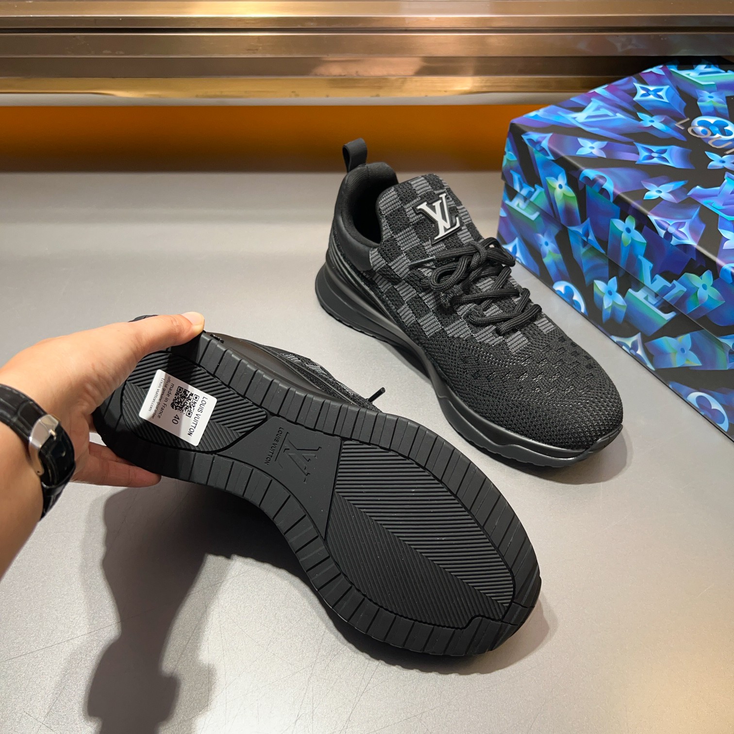 这款鞋子是AAAAA 1:1 质量 (非常棒). 使用了和原版一模一样的材料. 商标部分也保持了和路易威登/Louis Vuitton一样. 图片拍摄是实物鞋子拍摄, 您所收到的实物保证和我们图片一模一样.