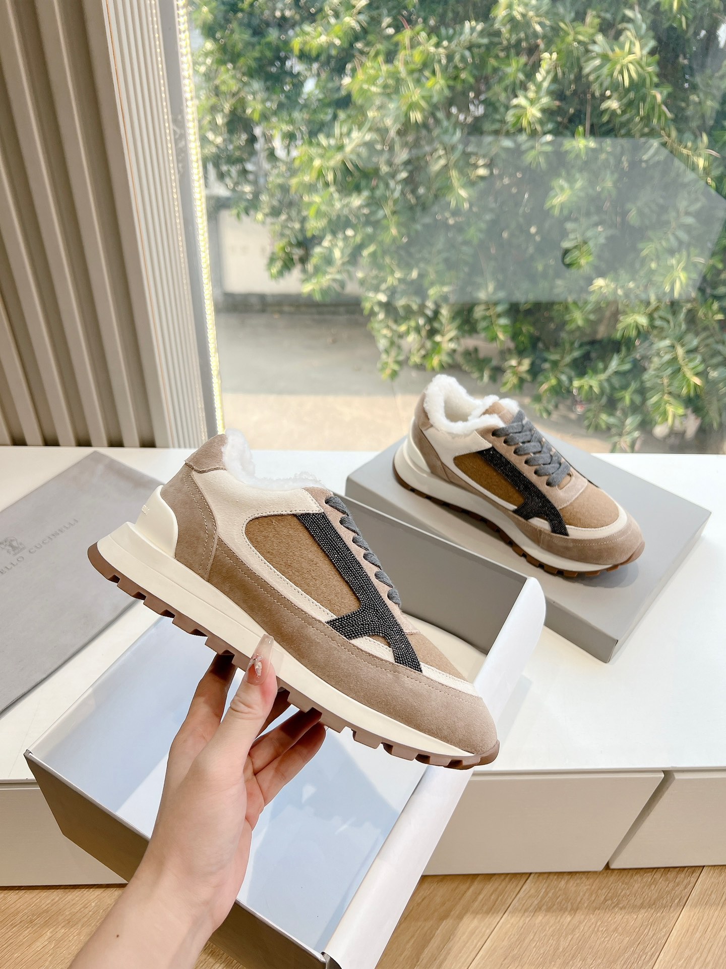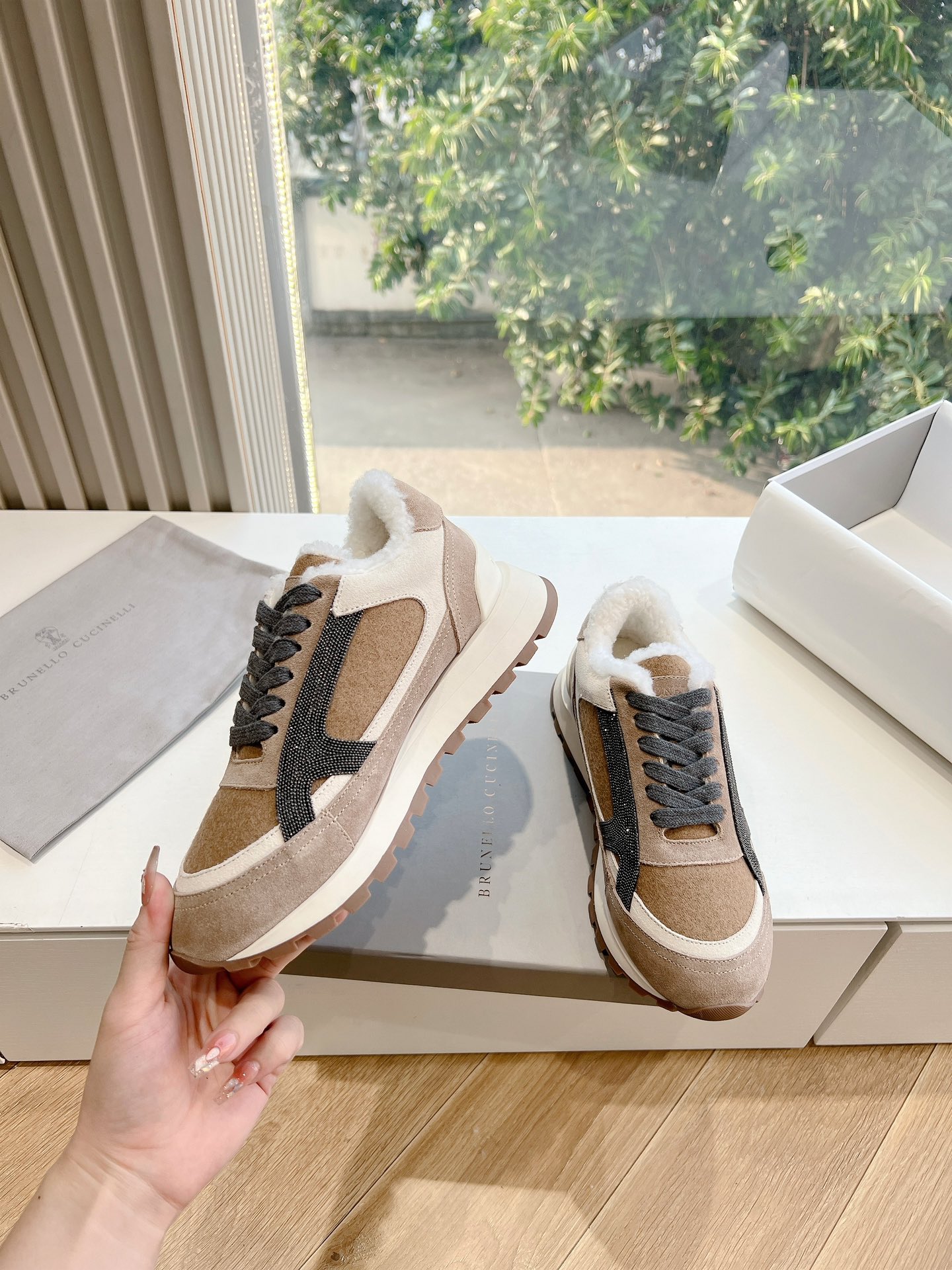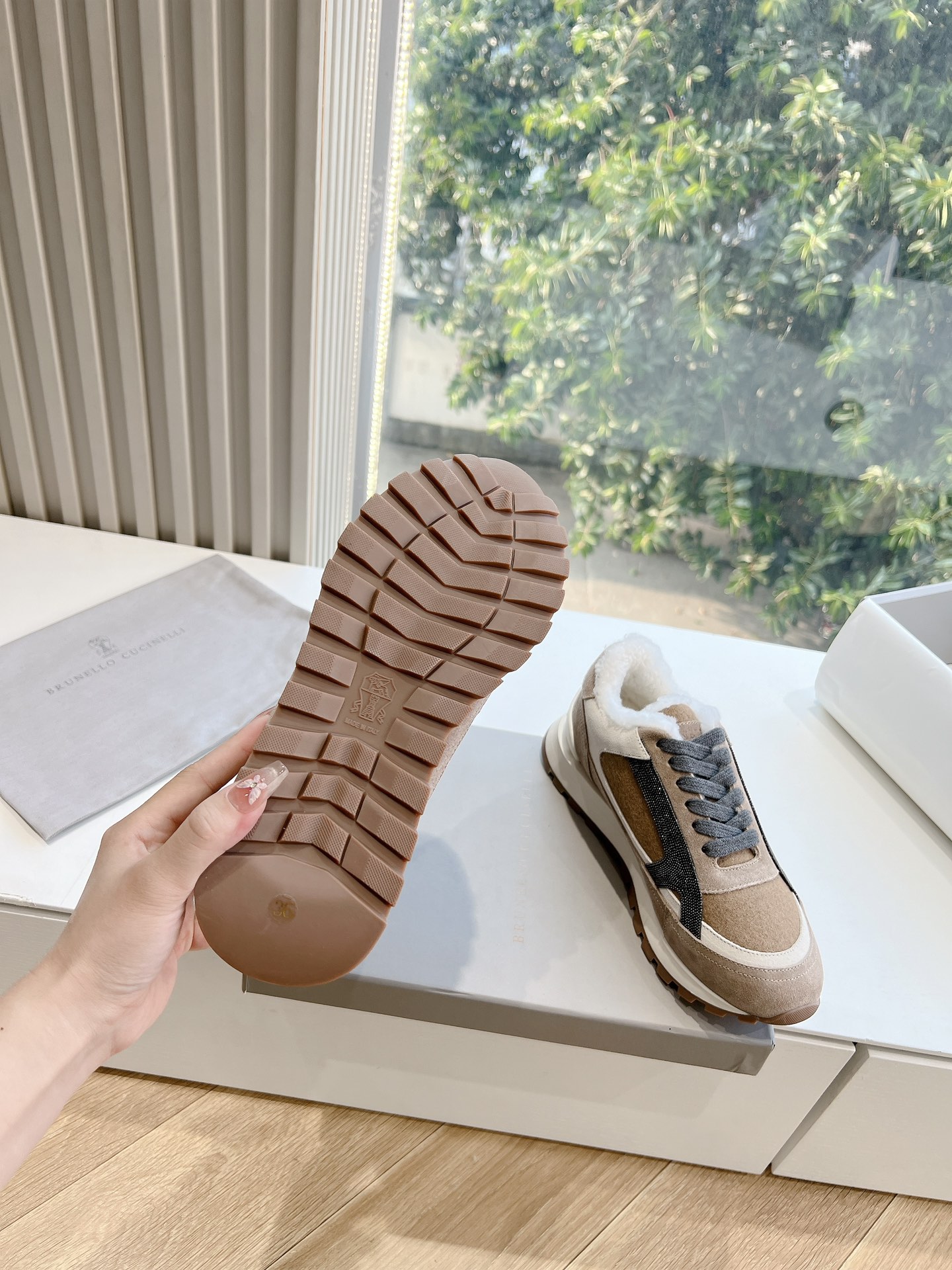 这款鞋子是AAAAA 1:1 质量 (非常棒). 使用了和原版一模一样的材料. 商标部分也保持了和Brunello Cucinelli一样. 图片拍摄是实物鞋子拍摄, 您所收到的实物保证和我们图片一模一样.