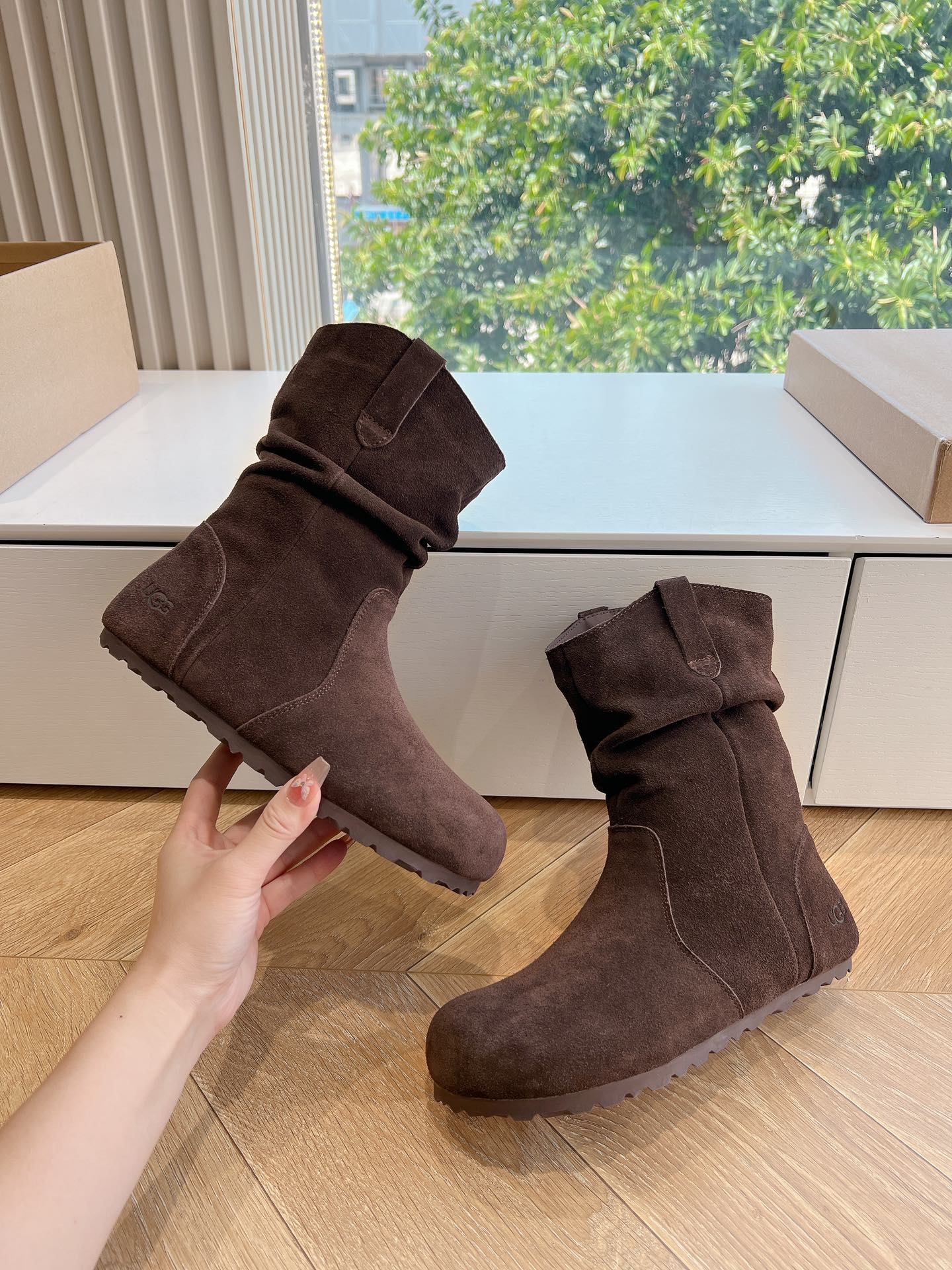 这款鞋子是AAAAA 1:1 质量 (非常棒). 使用了和原版一模一样的材料. 商标部分也保持了和UGG雪地靴一样. 图片拍摄是实物鞋子拍摄, 您所收到的实物保证和我们图片一模一样.