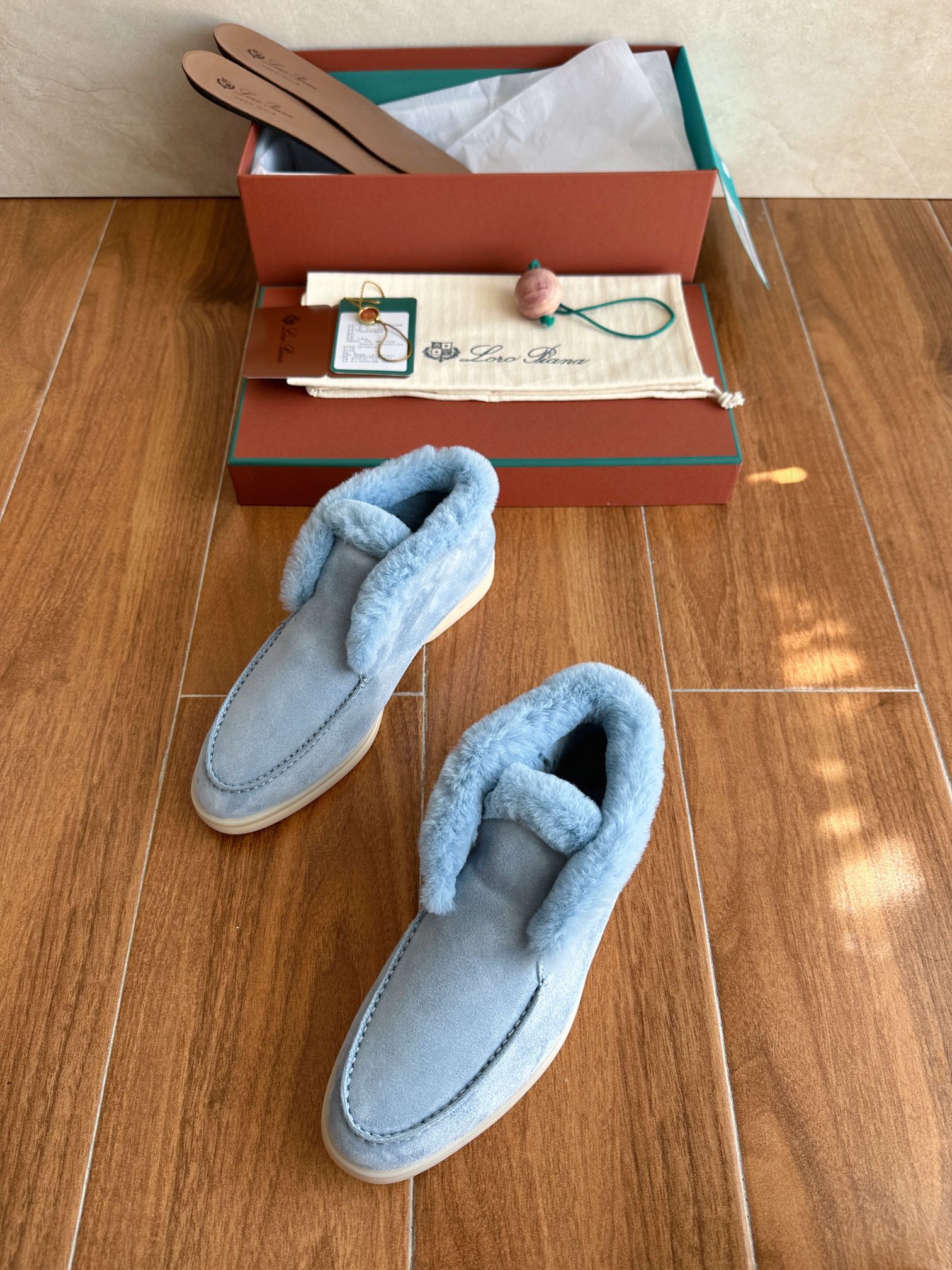 这款鞋子是AAAAA 1:1 质量 (非常棒). 使用了和原版一模一样的材料. 商标部分也保持了和洛罗皮亚纳/Loro Piana一样. 图片拍摄是实物鞋子拍摄, 您所收到的实物保证和我们图片一模一样.