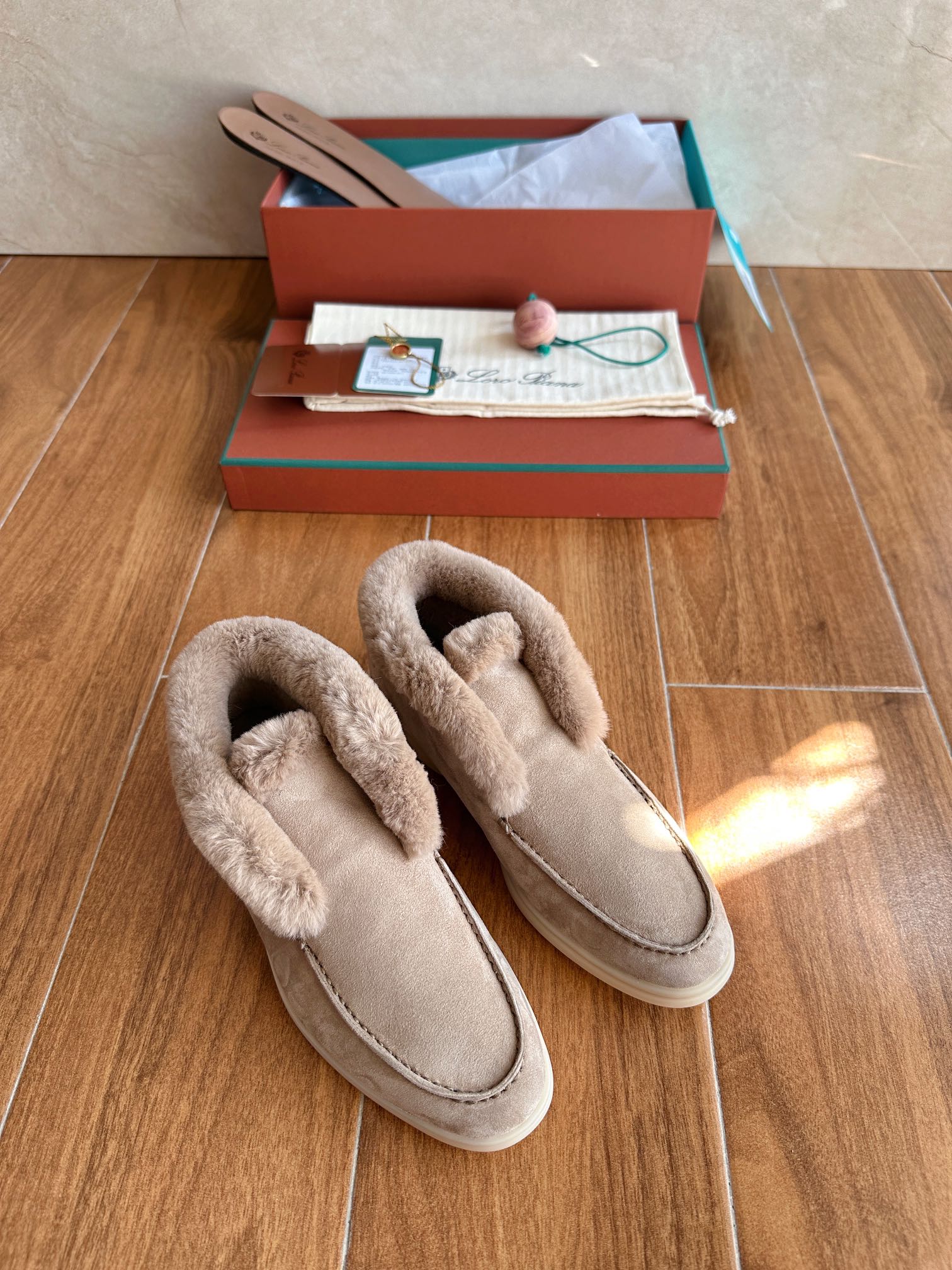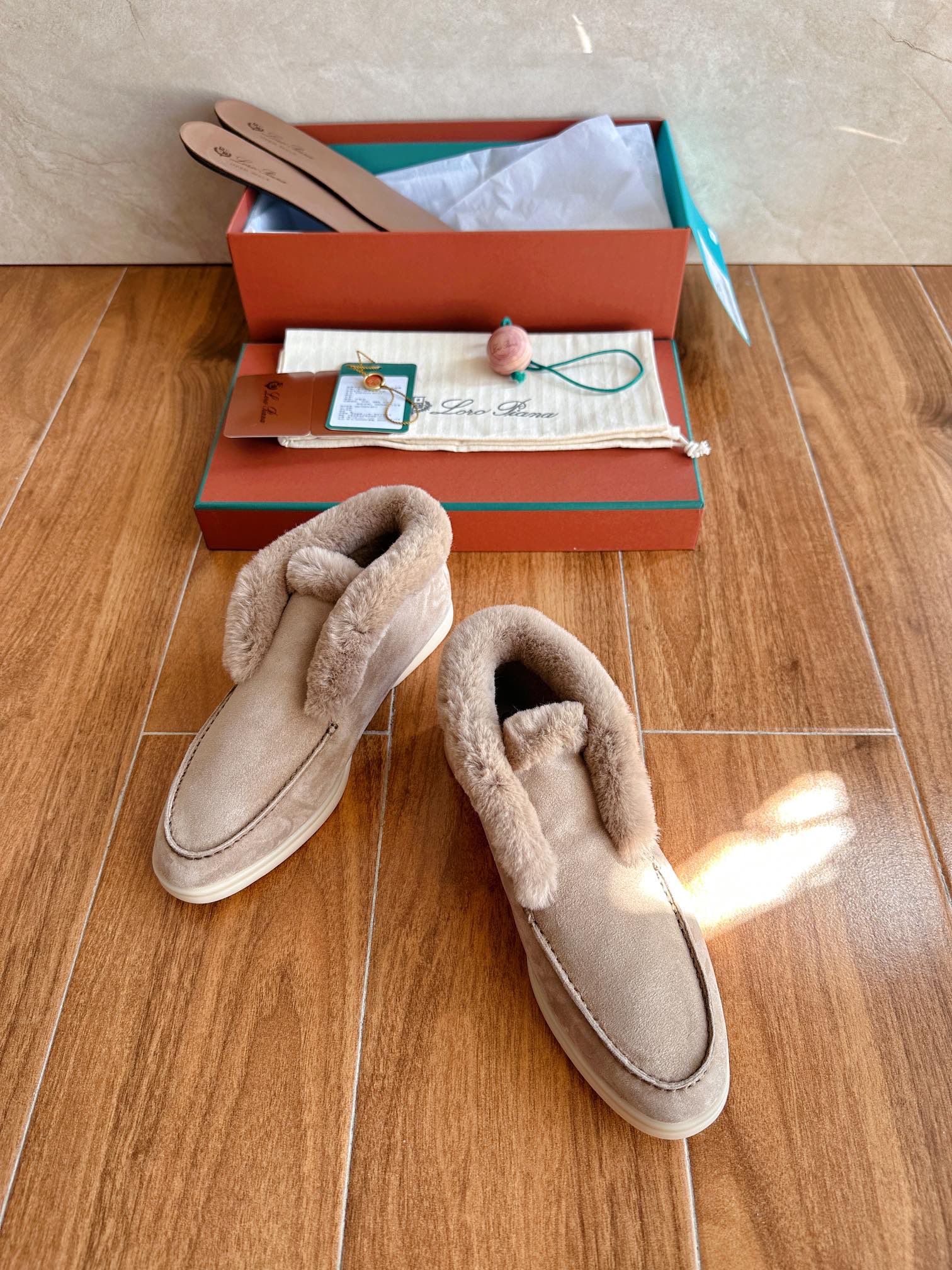 这款鞋子是AAAAA 1:1 质量 (非常棒). 使用了和原版一模一样的材料. 商标部分也保持了和洛罗皮亚纳/Loro Piana一样. 图片拍摄是实物鞋子拍摄, 您所收到的实物保证和我们图片一模一样.