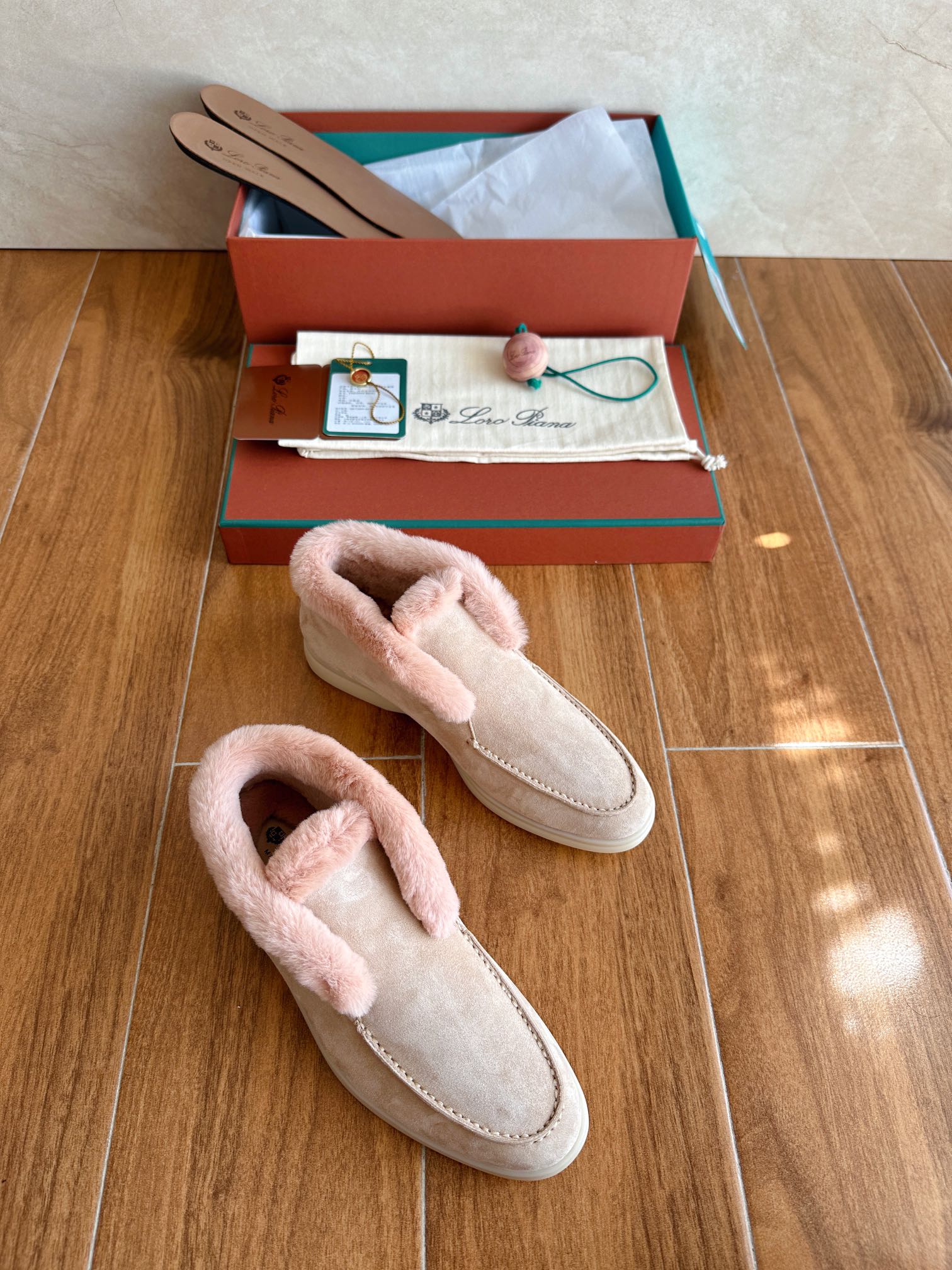 这款鞋子是AAAAA 1:1 质量 (非常棒). 使用了和原版一模一样的材料. 商标部分也保持了和洛罗皮亚纳/Loro Piana一样. 图片拍摄是实物鞋子拍摄, 您所收到的实物保证和我们图片一模一样.
