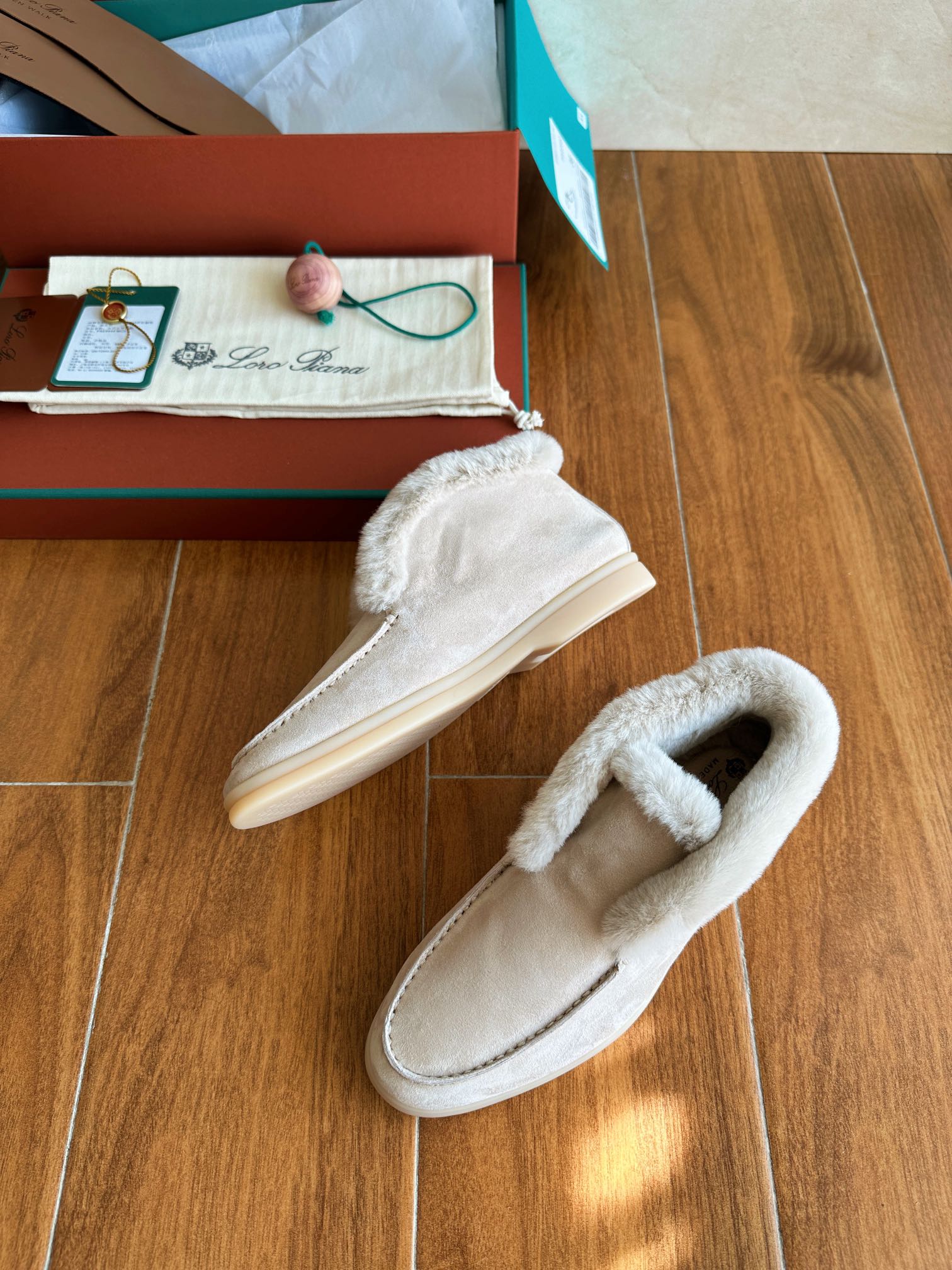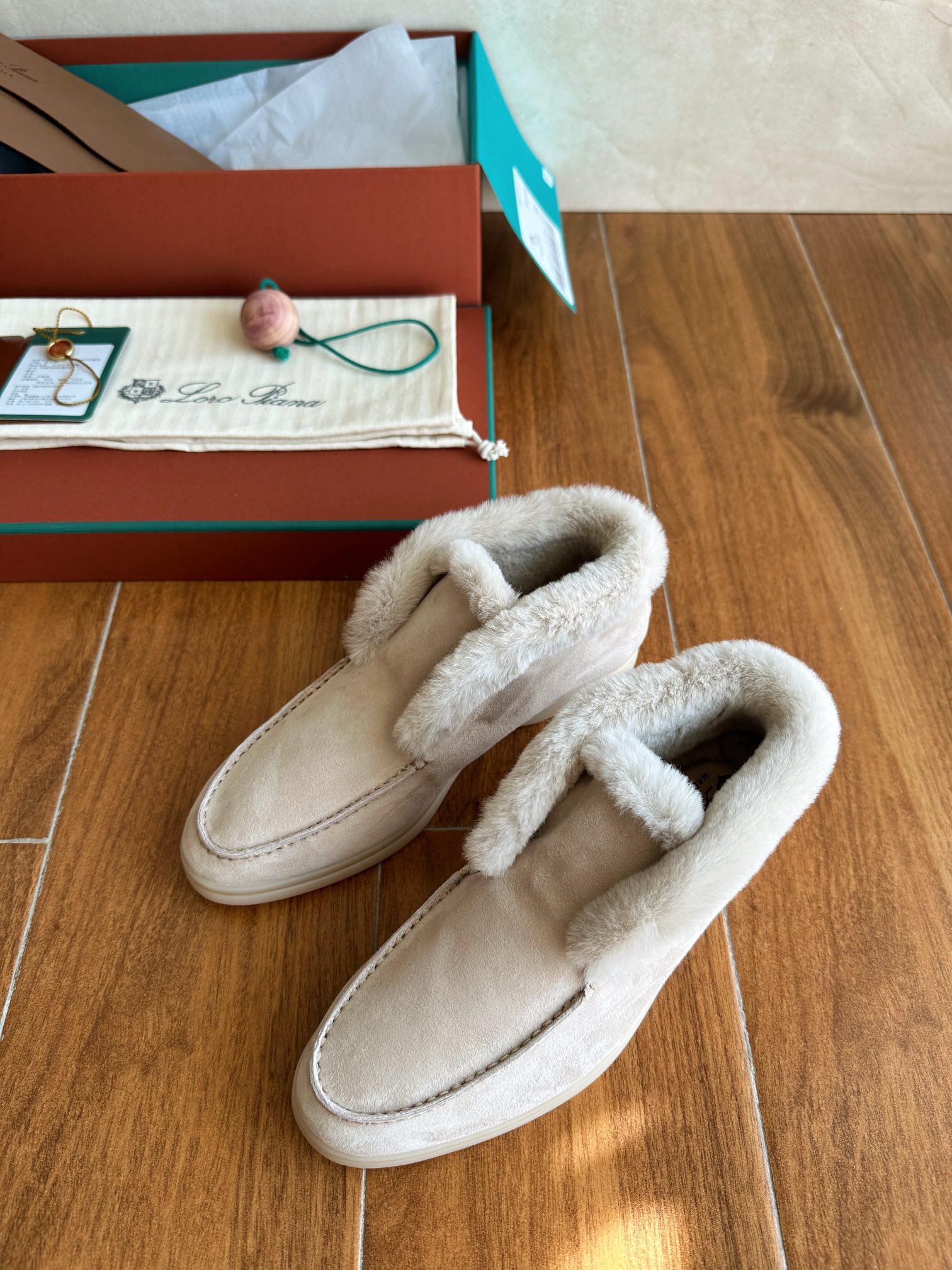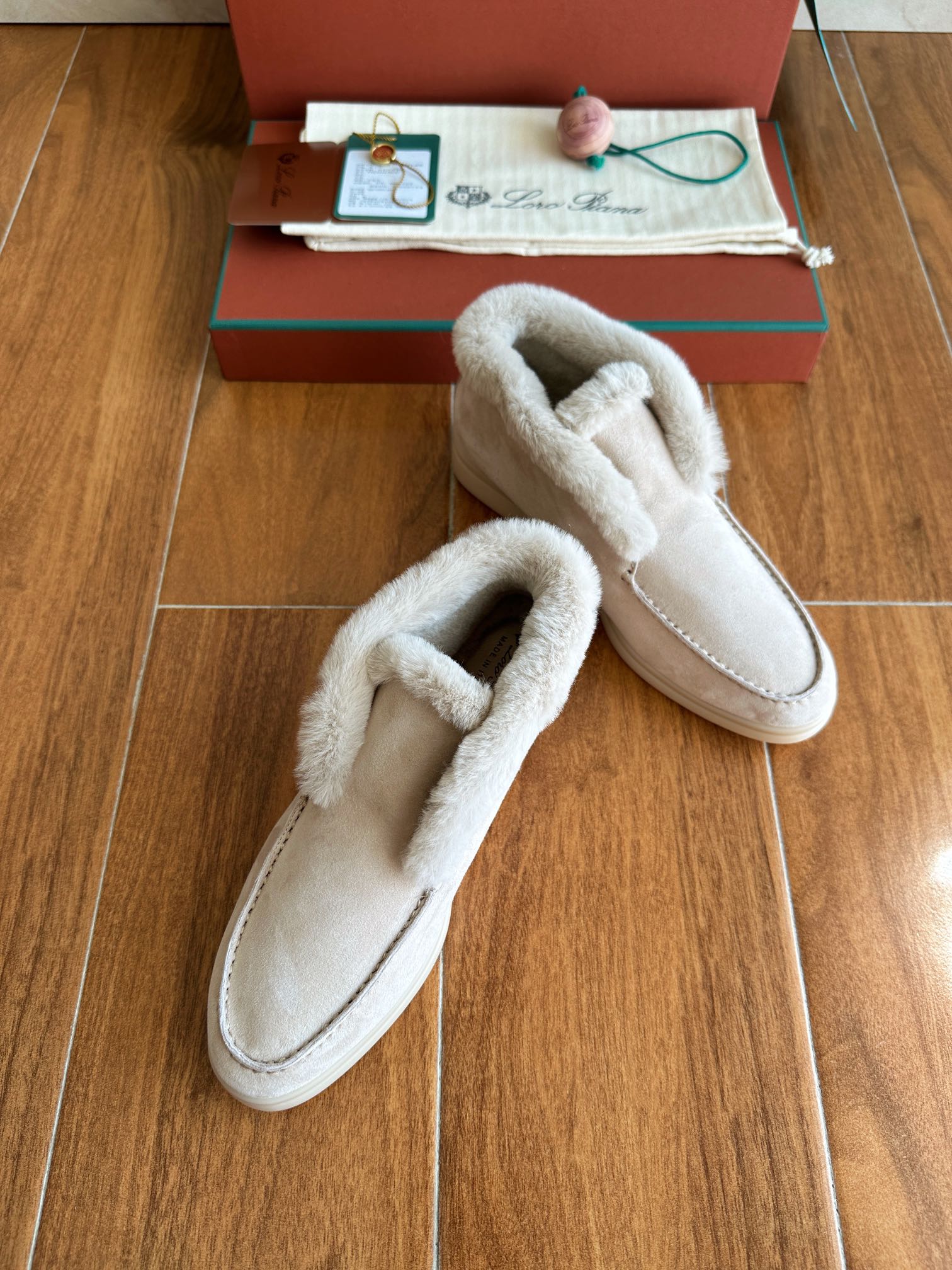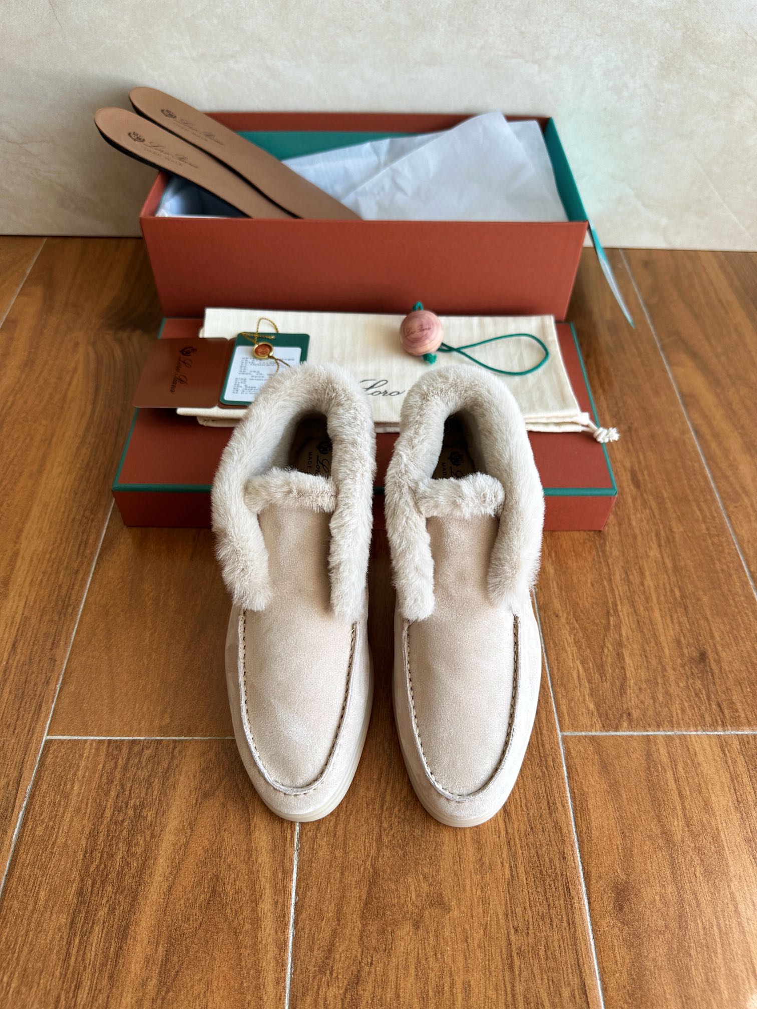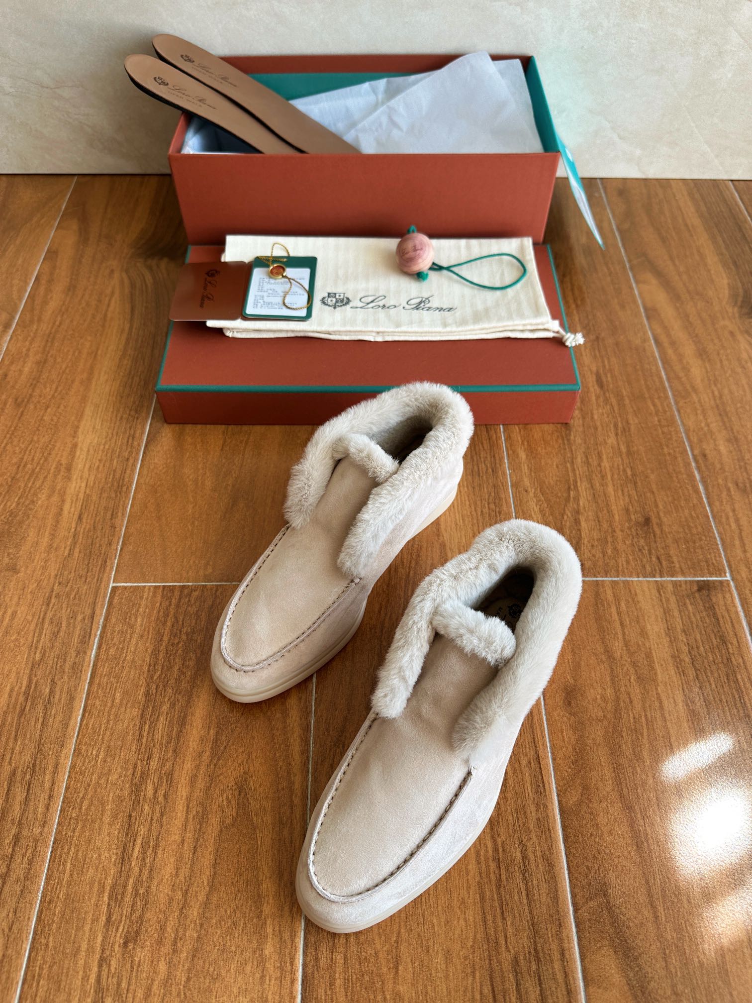 这款鞋子是AAAAA 1:1 质量 (非常棒). 使用了和原版一模一样的材料. 商标部分也保持了和洛罗皮亚纳/Loro Piana一样. 图片拍摄是实物鞋子拍摄, 您所收到的实物保证和我们图片一模一样.