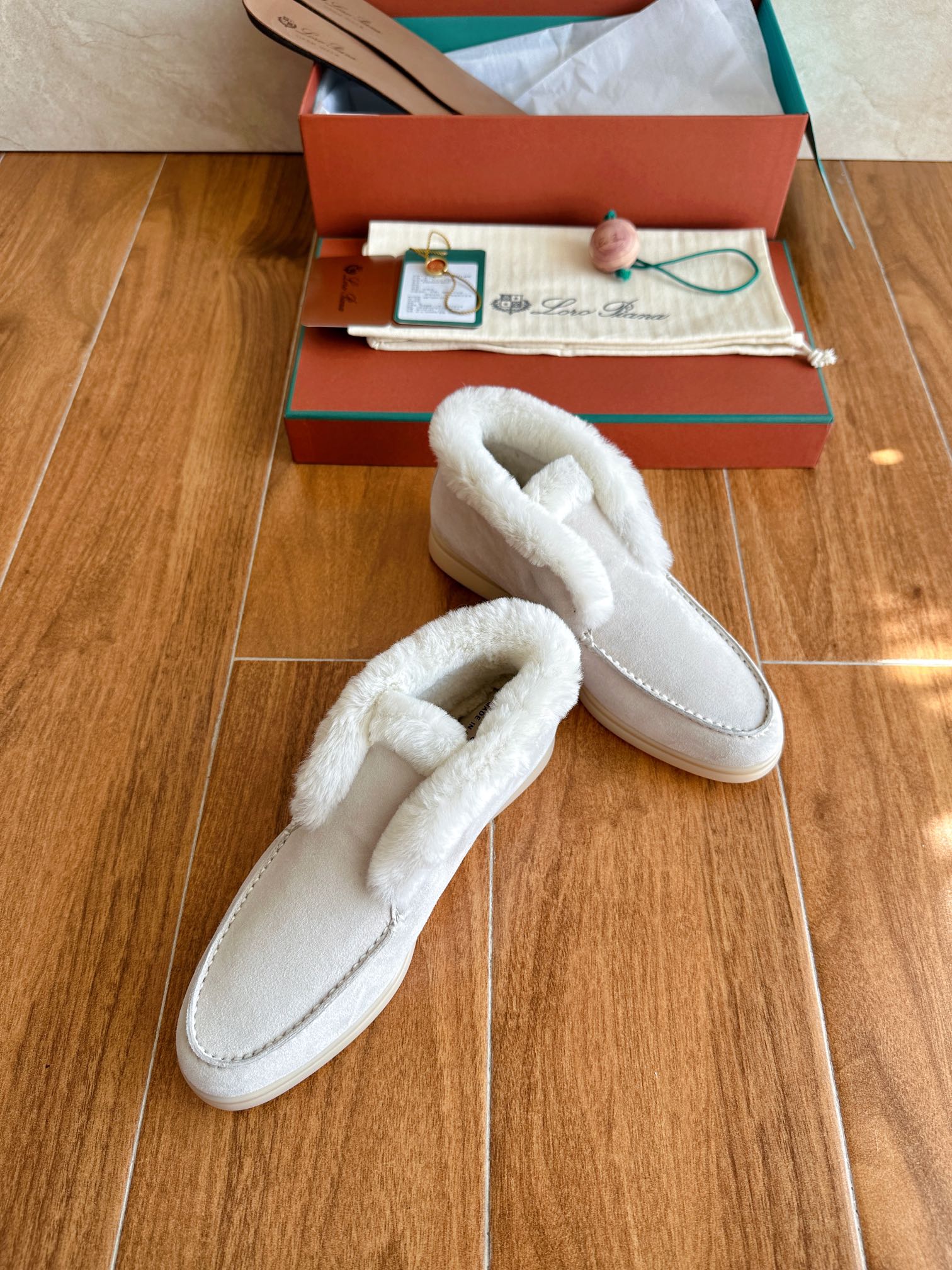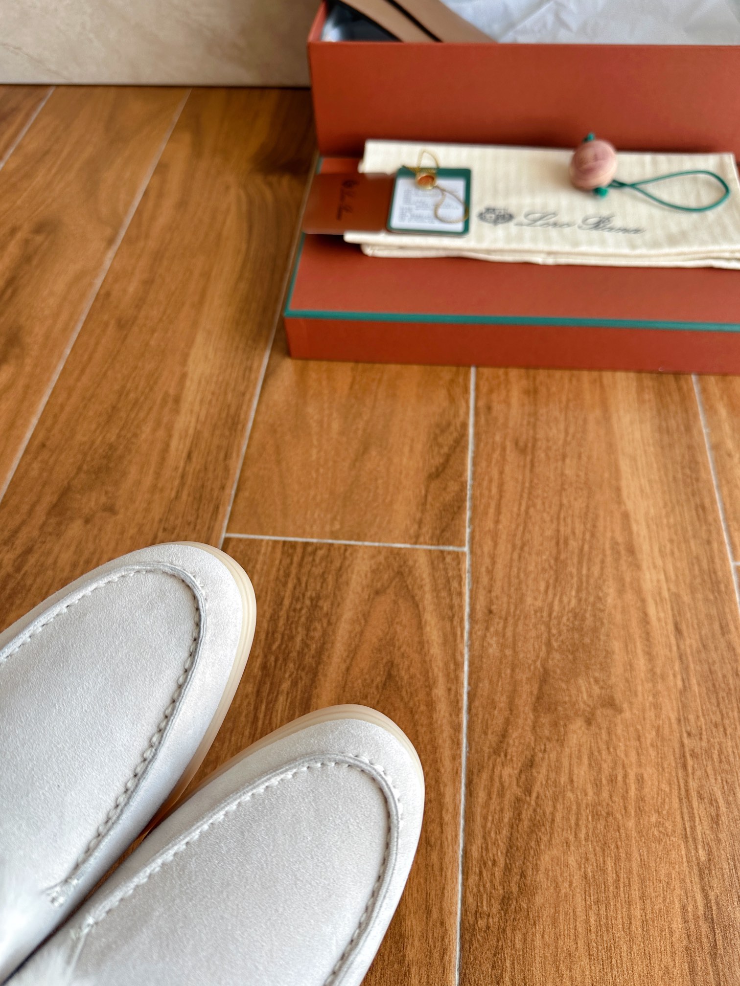 这款鞋子是AAAAA 1:1 质量 (非常棒). 使用了和原版一模一样的材料. 商标部分也保持了和洛罗皮亚纳/Loro Piana一样. 图片拍摄是实物鞋子拍摄, 您所收到的实物保证和我们图片一模一样.