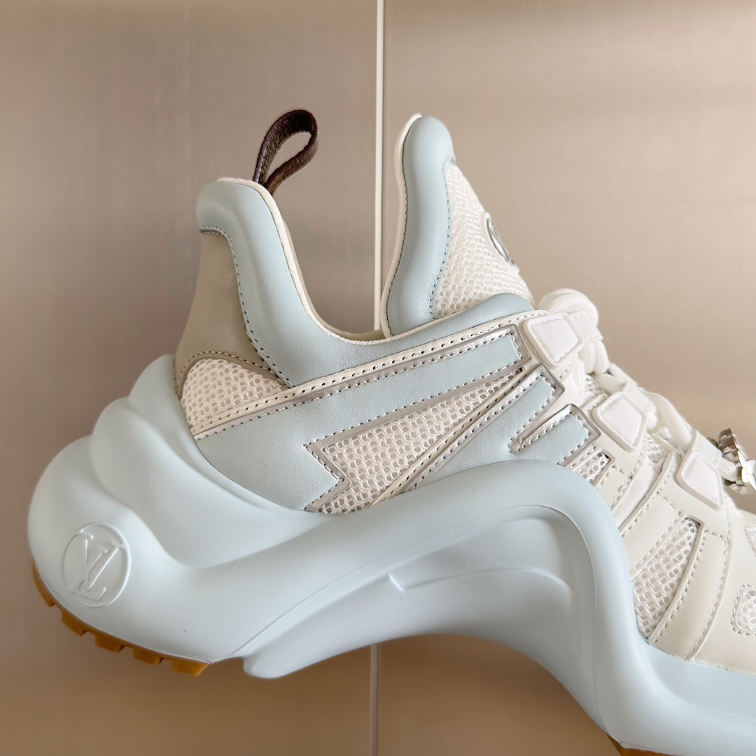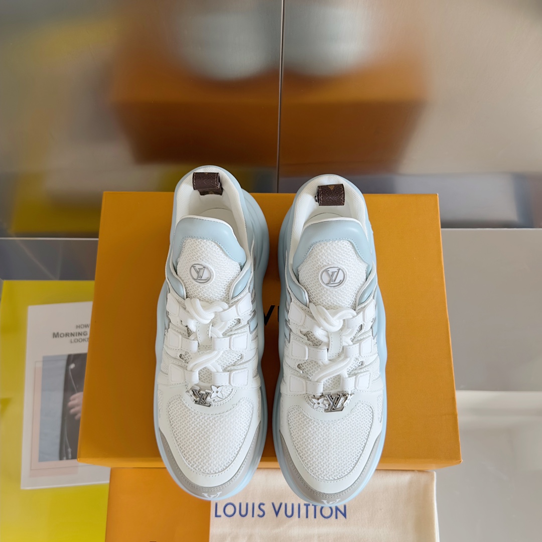这款鞋子是AAAAA 1:1 质量 (非常棒). 使用了和原版一模一样的材料. 商标部分也保持了和路易威登/Louis Vuitton一样. 图片拍摄是实物鞋子拍摄, 您所收到的实物保证和我们图片一模一样.