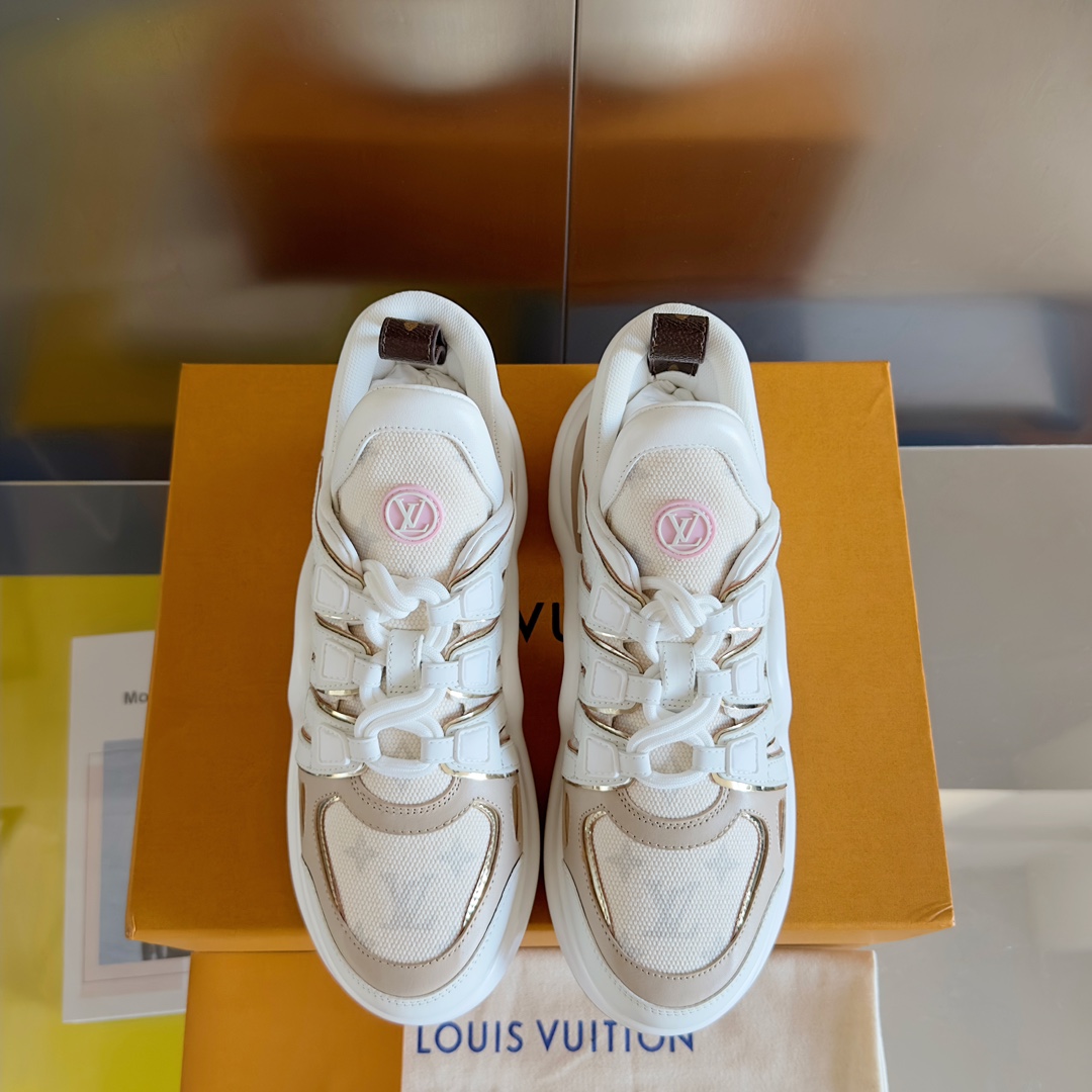 这款鞋子是AAAAA 1:1 质量 (非常棒). 使用了和原版一模一样的材料. 商标部分也保持了和路易威登/Louis Vuitton一样. 图片拍摄是实物鞋子拍摄, 您所收到的实物保证和我们图片一模一样.