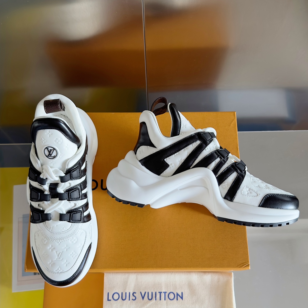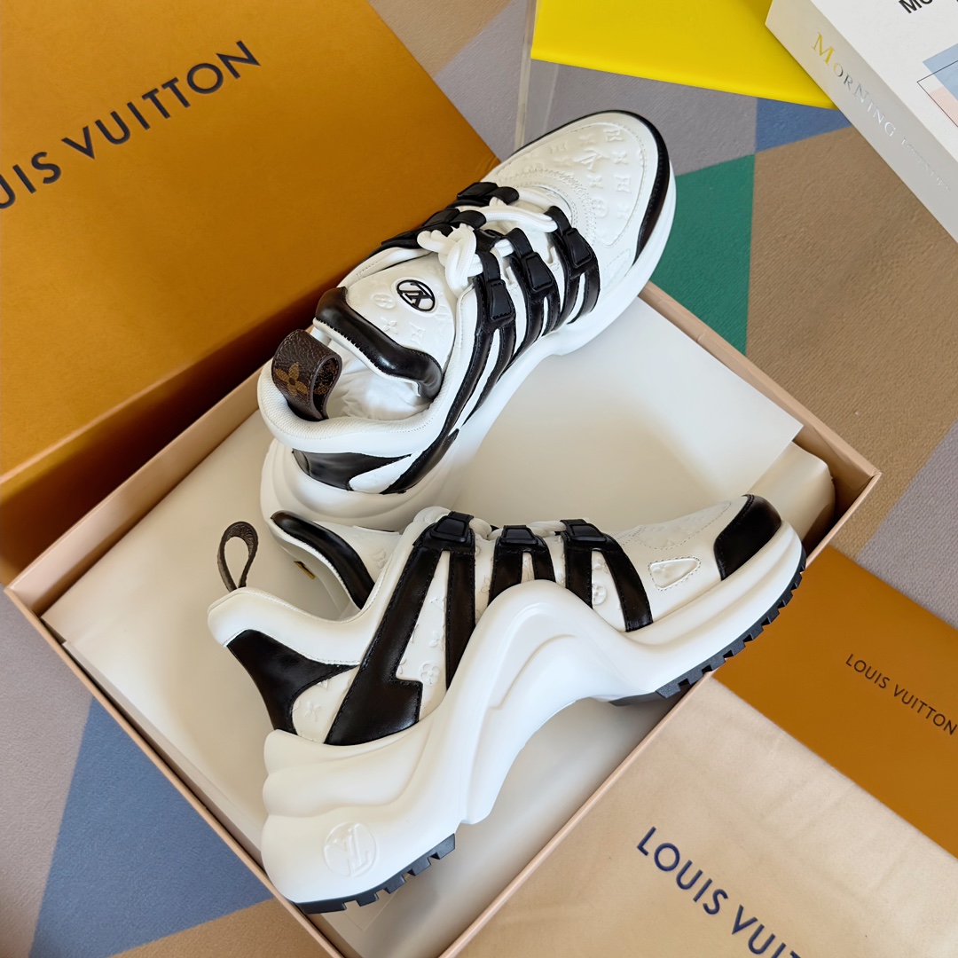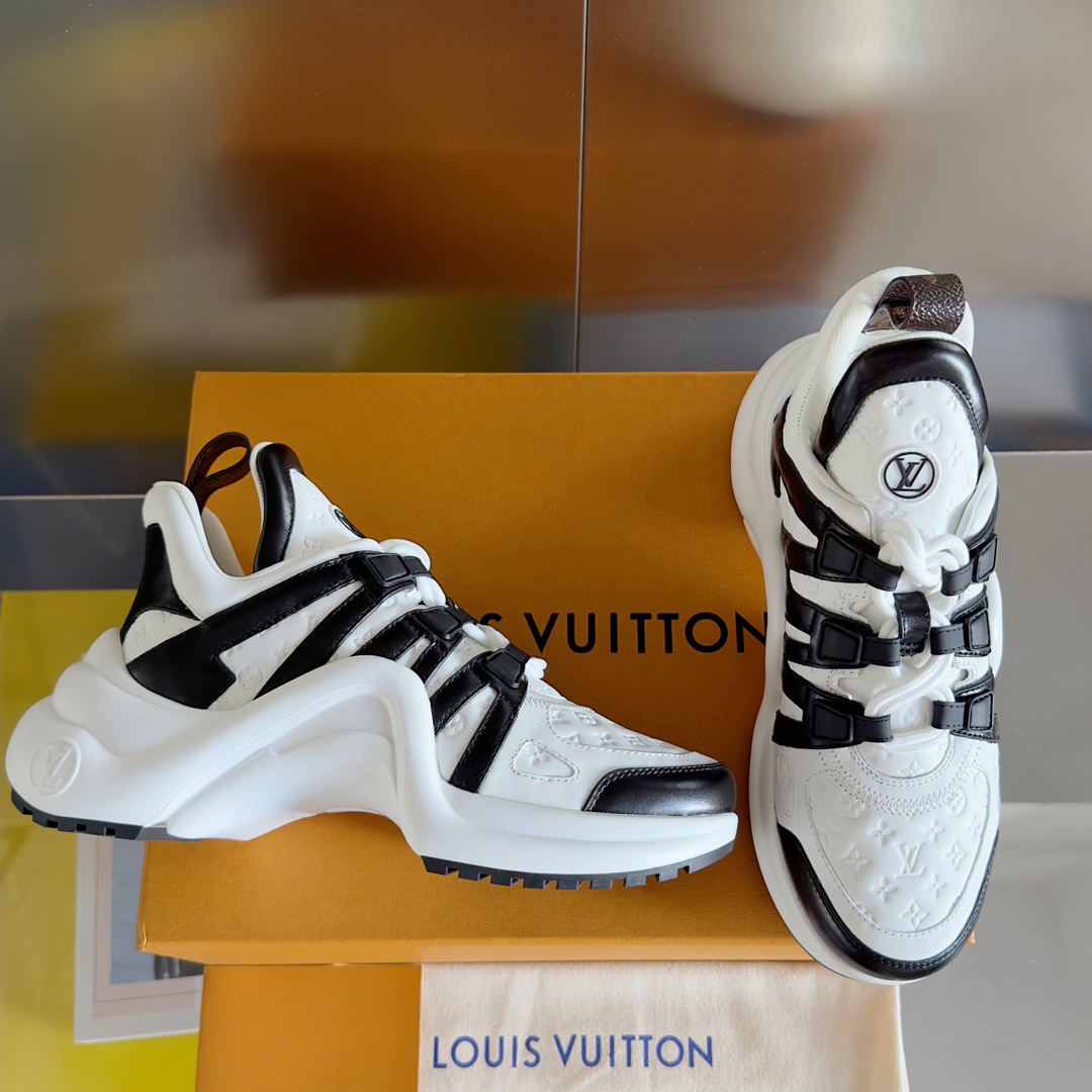 这款鞋子是AAAAA 1:1 质量 (非常棒). 使用了和原版一模一样的材料. 商标部分也保持了和路易威登/Louis Vuitton一样. 图片拍摄是实物鞋子拍摄, 您所收到的实物保证和我们图片一模一样.