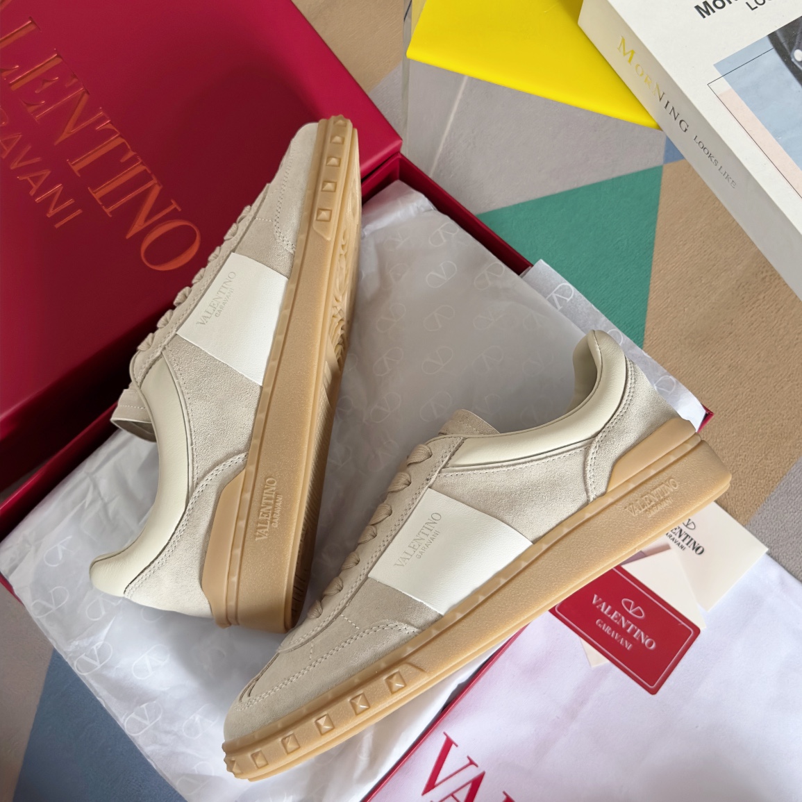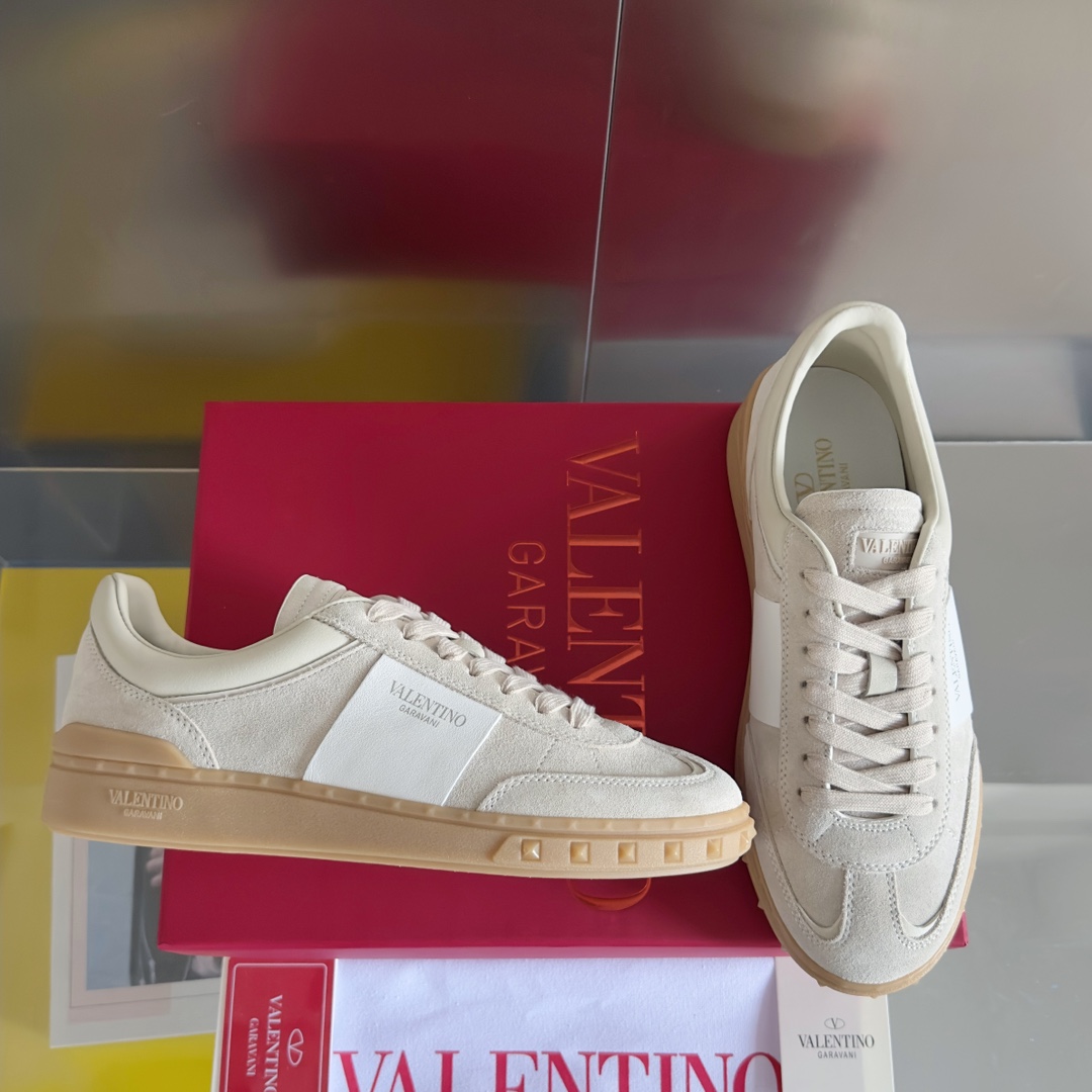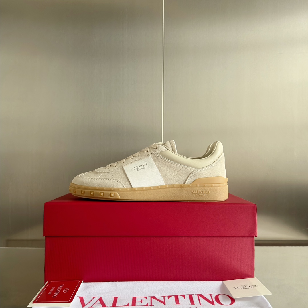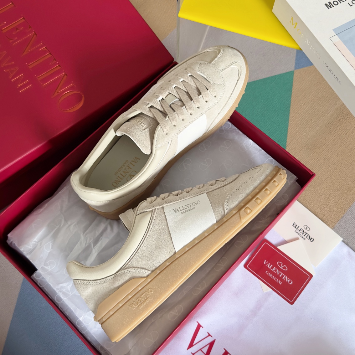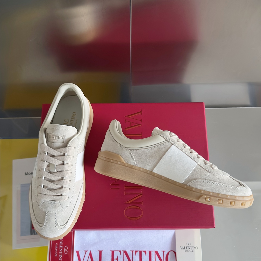 这款鞋子是AAAAA 1:1 质量 (非常棒). 使用了和原版一模一样的材料. 商标部分也保持了和华伦天奴/Valentino一样. 图片拍摄是实物鞋子拍摄, 您所收到的实物保证和我们图片一模一样.