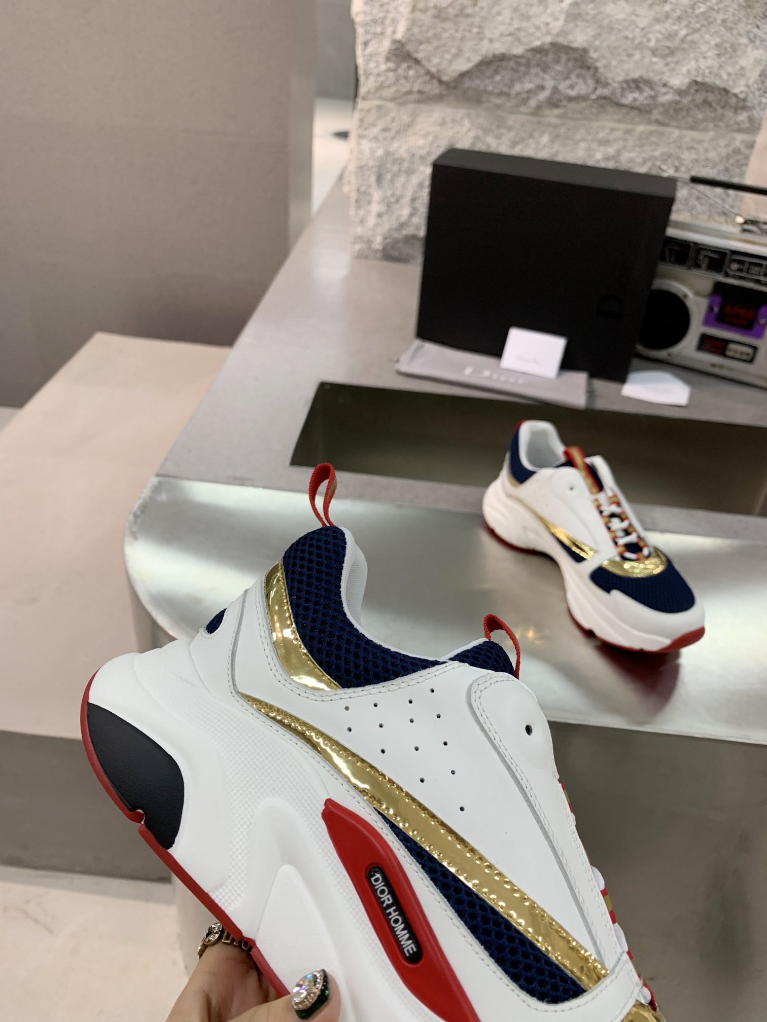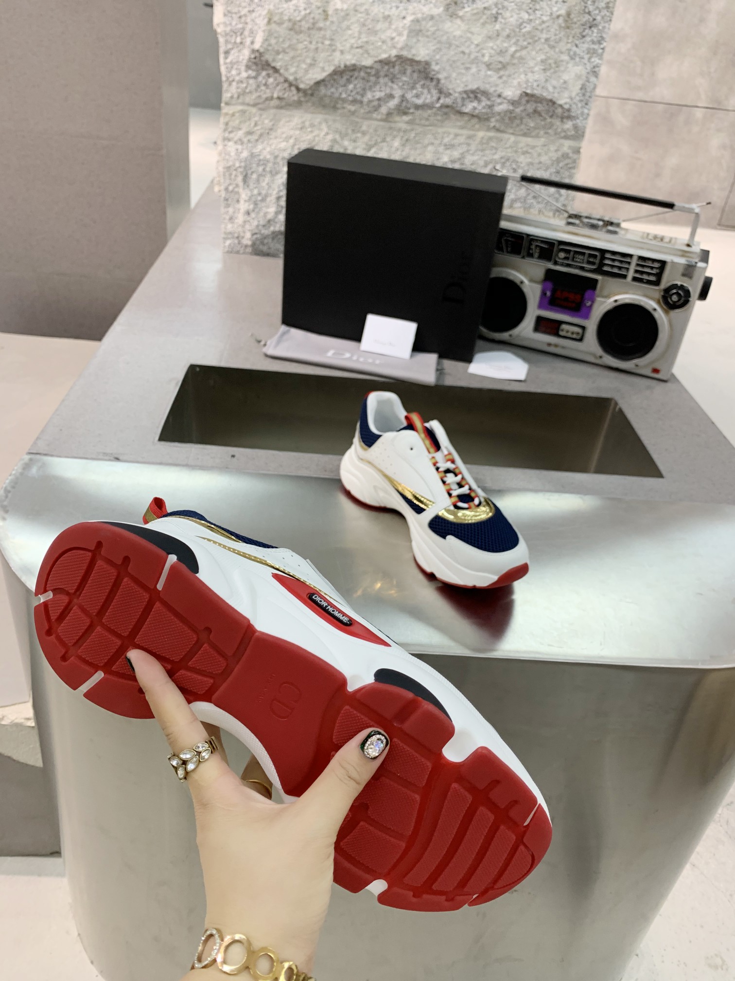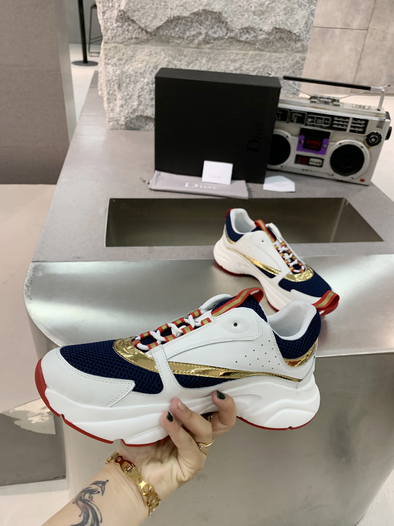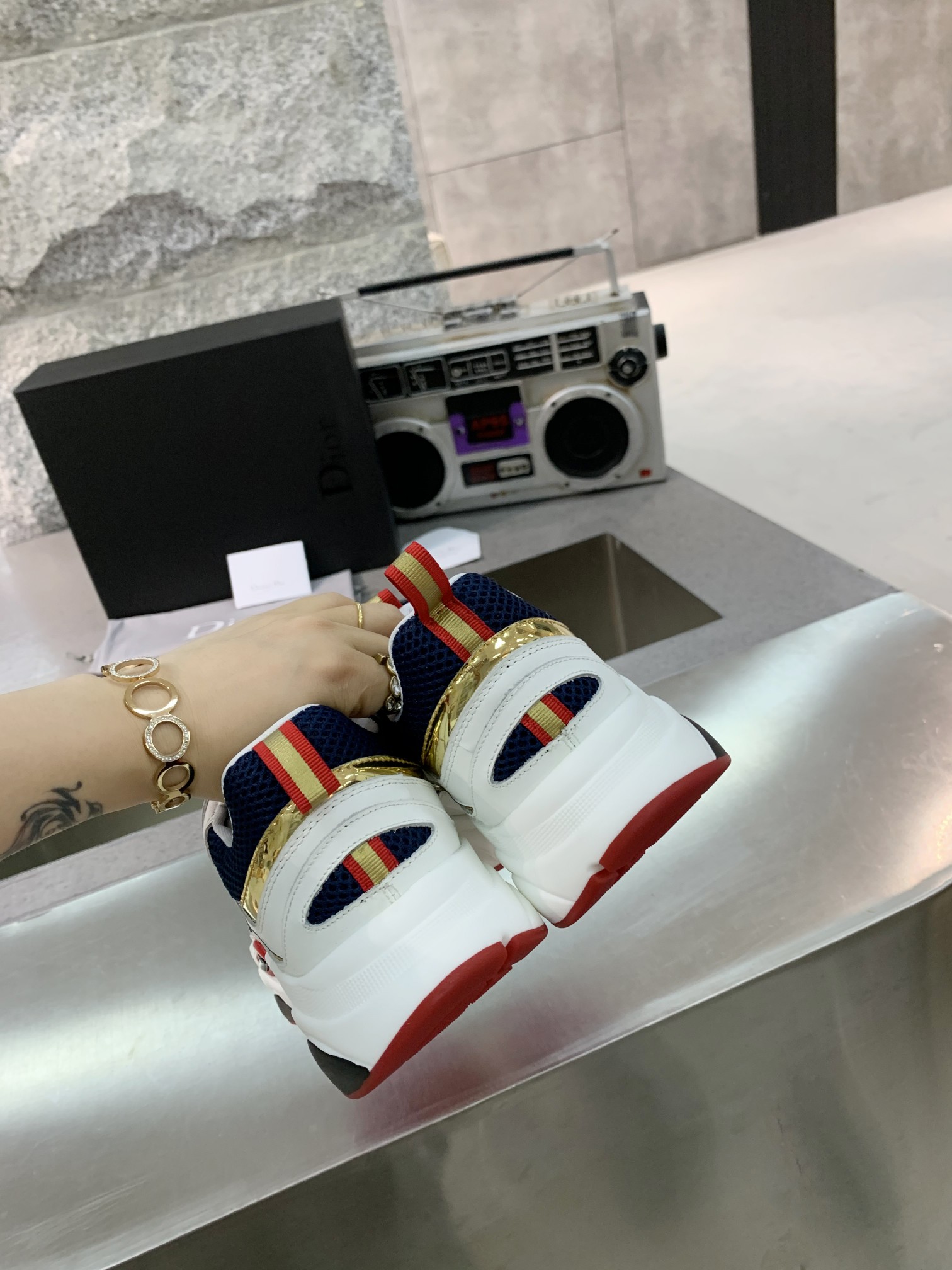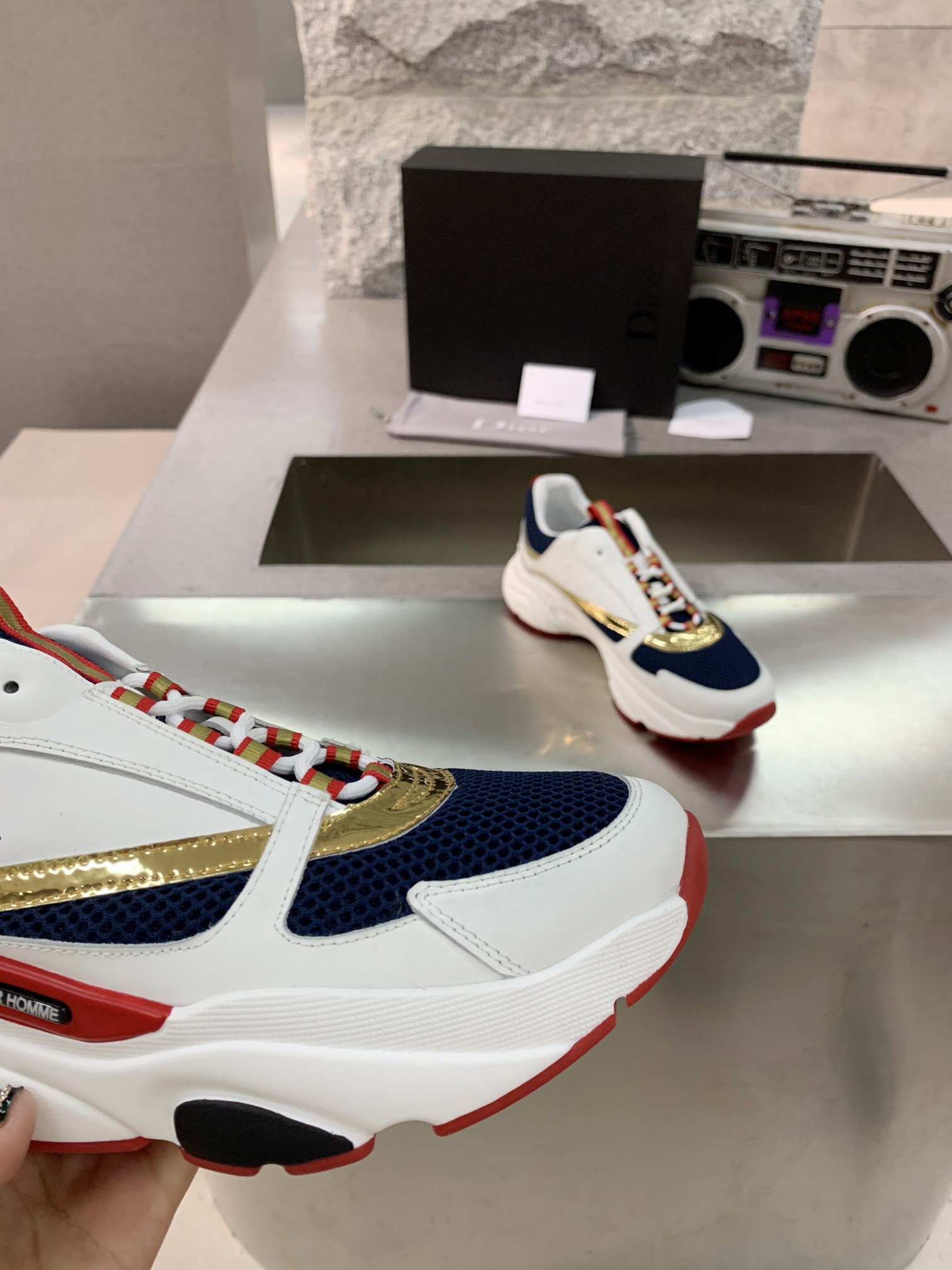 这款鞋子是AAAAA 1:1 质量 (非常棒). 使用了和原版一模一样的材料. 商标部分也保持了和迪奥/Dior一样. 图片拍摄是实物鞋子拍摄, 您所收到的实物保证和我们图片一模一样.
