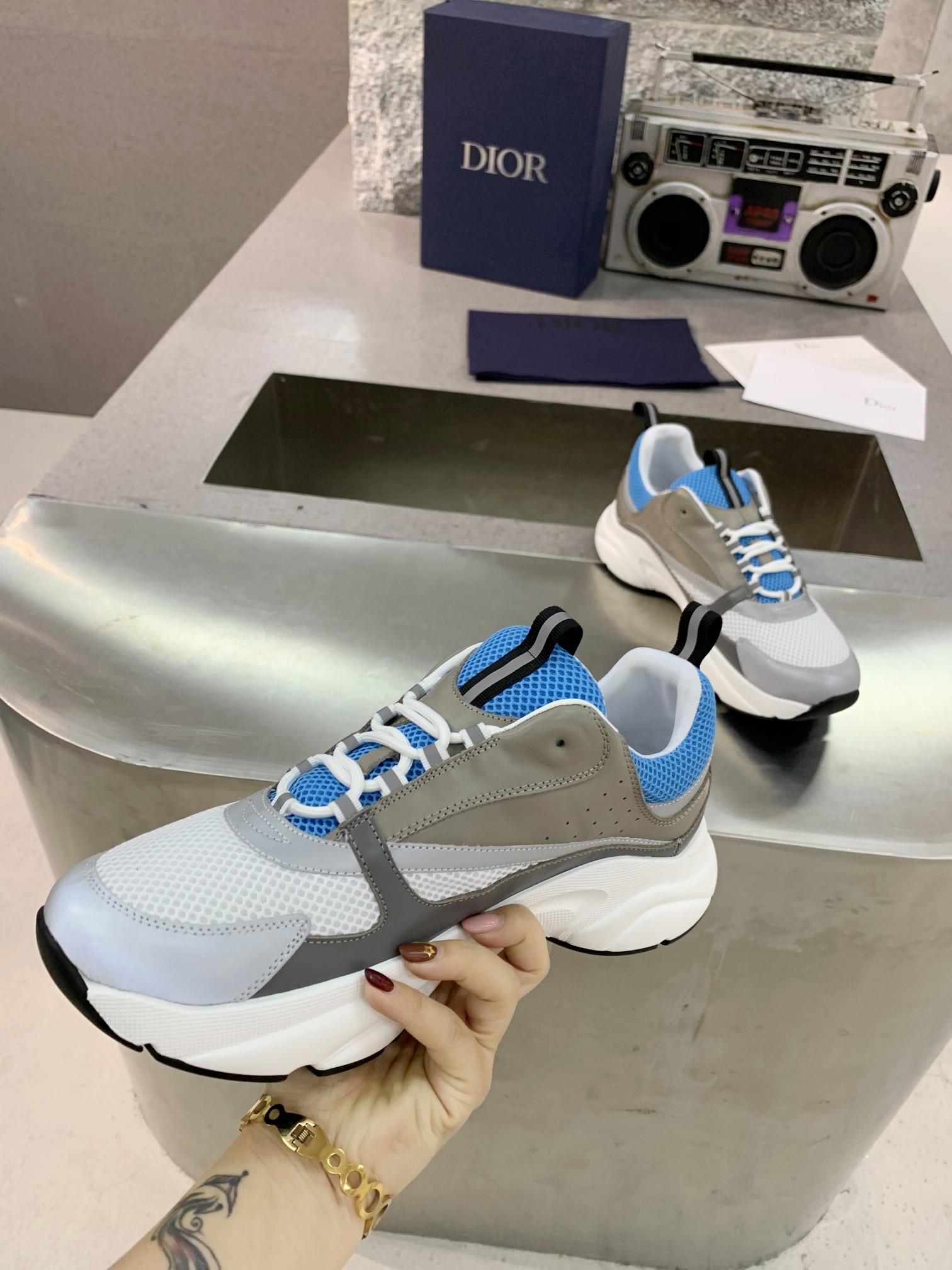 这款鞋子是AAAAA 1:1 质量 (非常棒). 使用了和原版一模一样的材料. 商标部分也保持了和迪奥/Dior一样. 图片拍摄是实物鞋子拍摄, 您所收到的实物保证和我们图片一模一样.