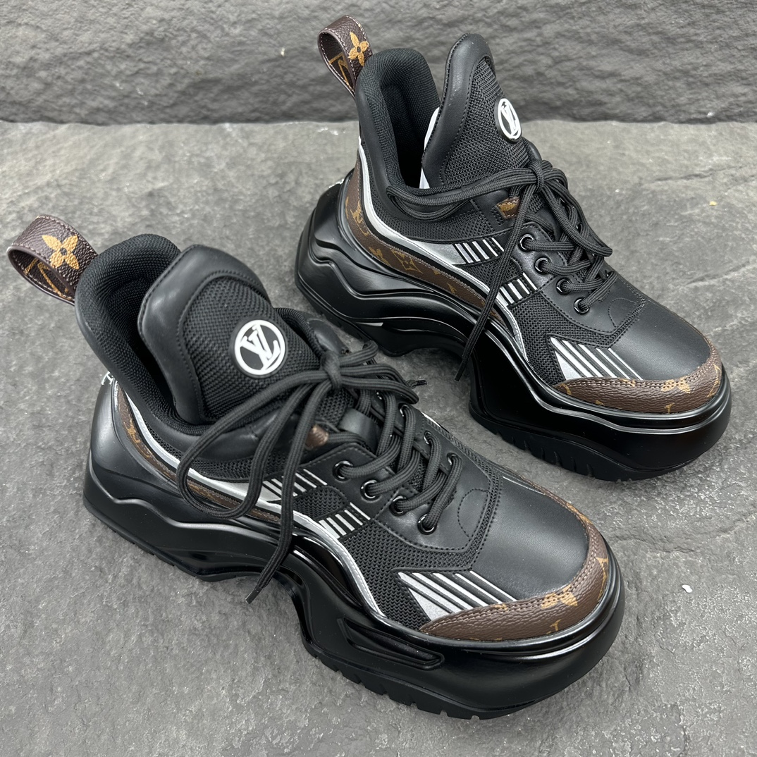 这款鞋子是AAAAA 1:1 质量 (非常棒). 使用了和原版一模一样的材料. 商标部分也保持了和路易威登/Louis Vuitton一样. 图片拍摄是实物鞋子拍摄, 您所收到的实物保证和我们图片一模一样.