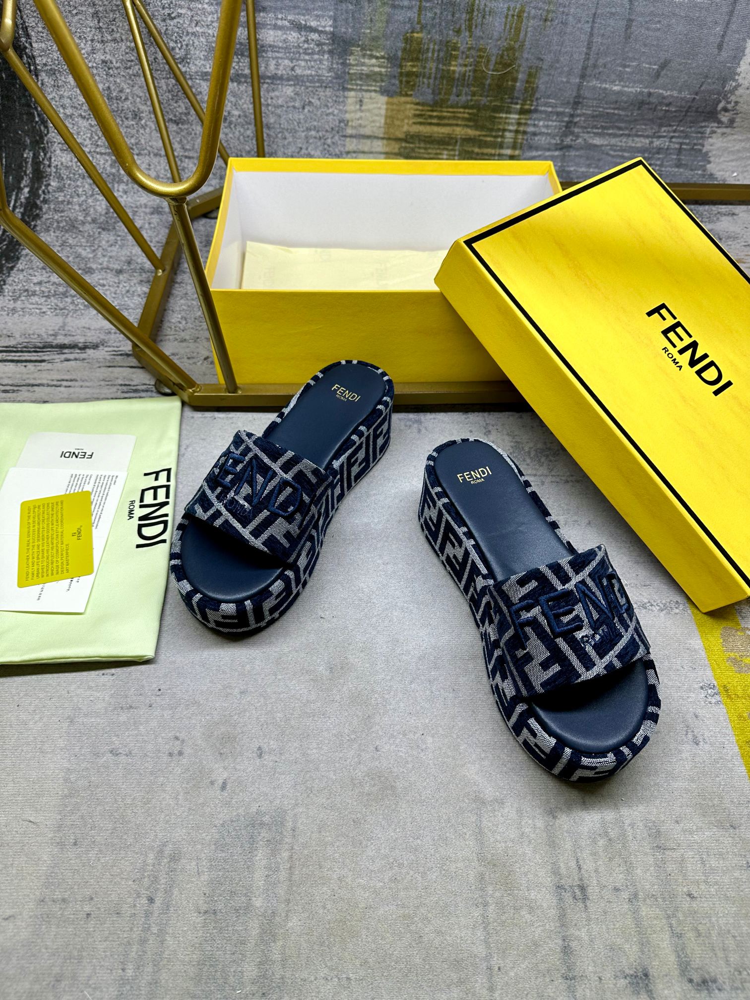 这款鞋子是AAAAA 1:1 质量 (非常棒). 使用了和原版一模一样的材料. 商标部分也保持了和芬迪/Fendi一样. 图片拍摄是实物鞋子拍摄, 您所收到的实物保证和我们图片一模一样.