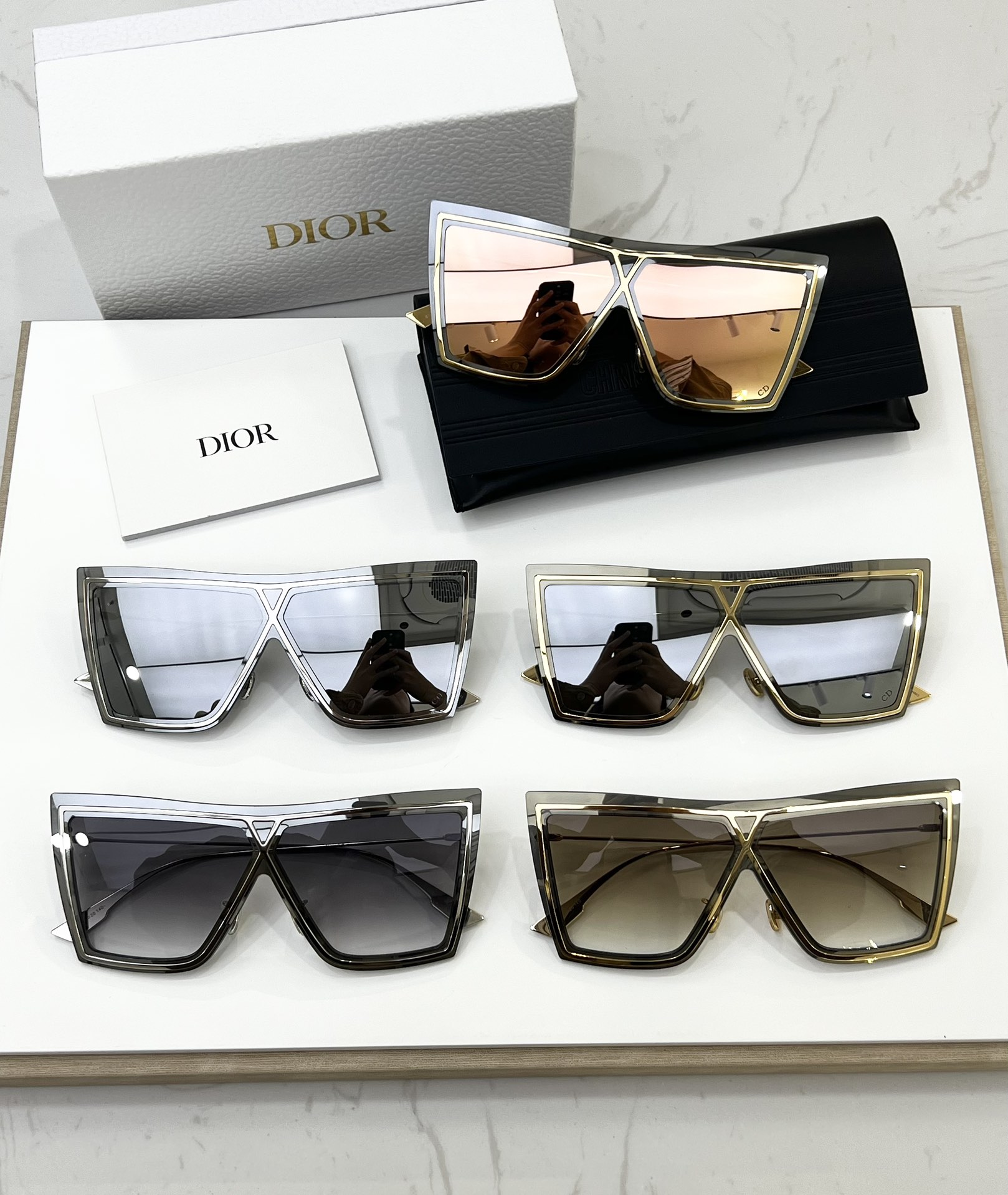 这款太阳眼镜是AAAAA 1:1 质量 (非常棒). 使用了和原版一模一样的材料. 商标部分也保持了和迪奥/Dior一样. 图片拍摄是实物太阳眼镜拍摄, 您所收到的实物保证和我们图片一模一样.