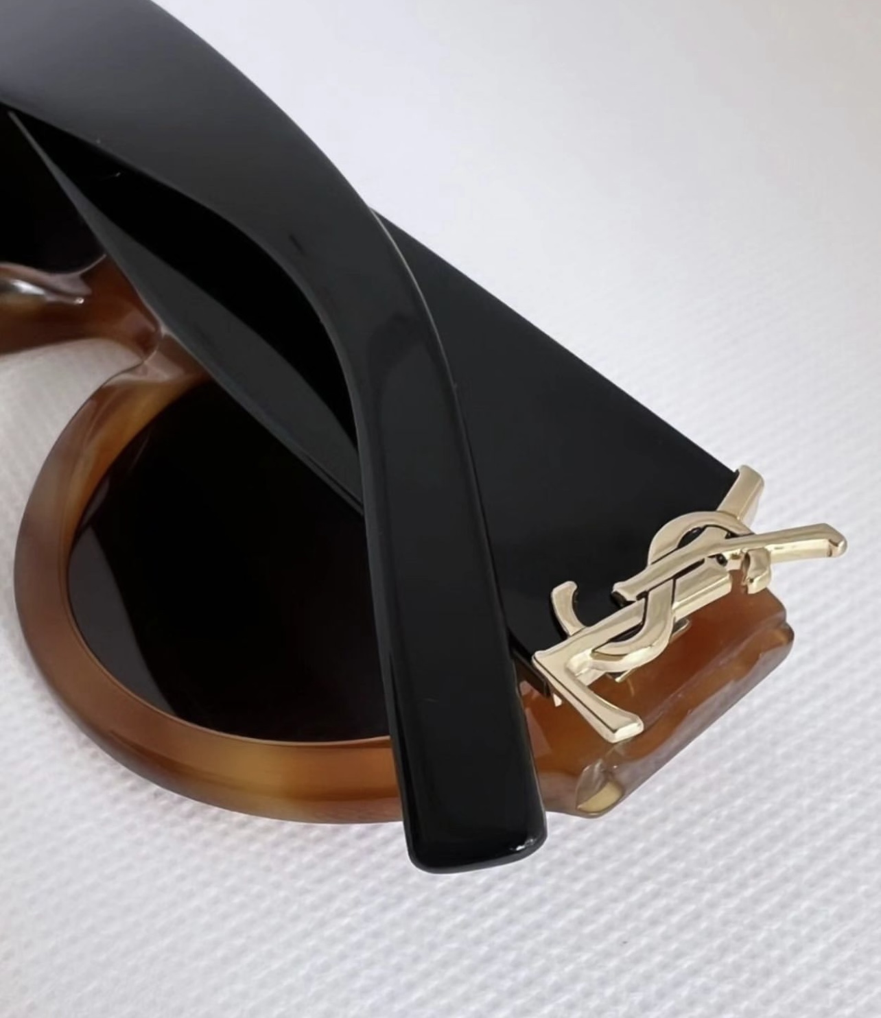 这款太阳眼镜是AAAAA 1:1 质量 (非常棒). 使用了和原版一模一样的材料. 商标部分也保持了和圣罗兰/Saint Laurent一样. 图片拍摄是实物太阳眼镜拍摄, 您所收到的实物保证和我们图片一模一样.