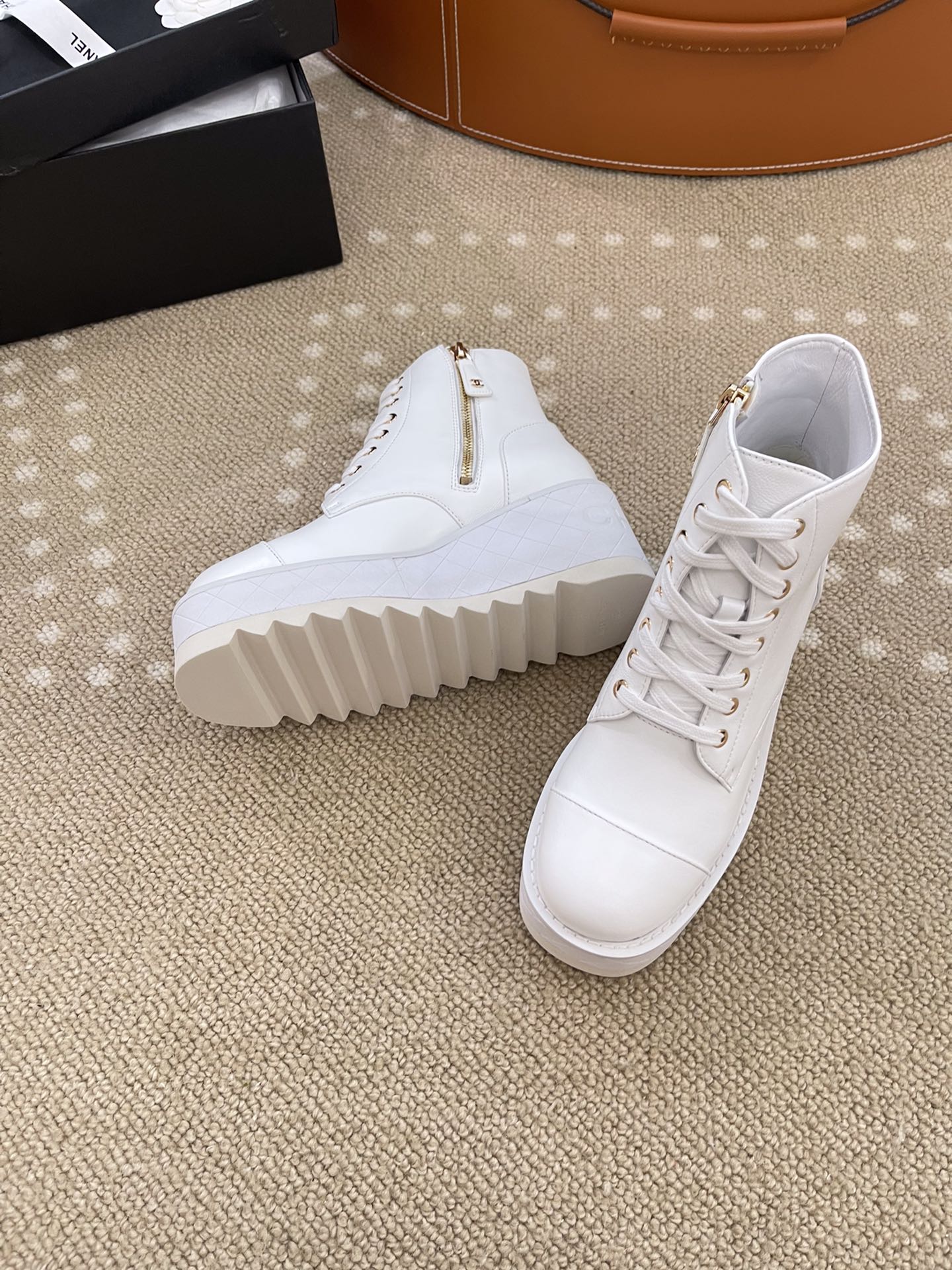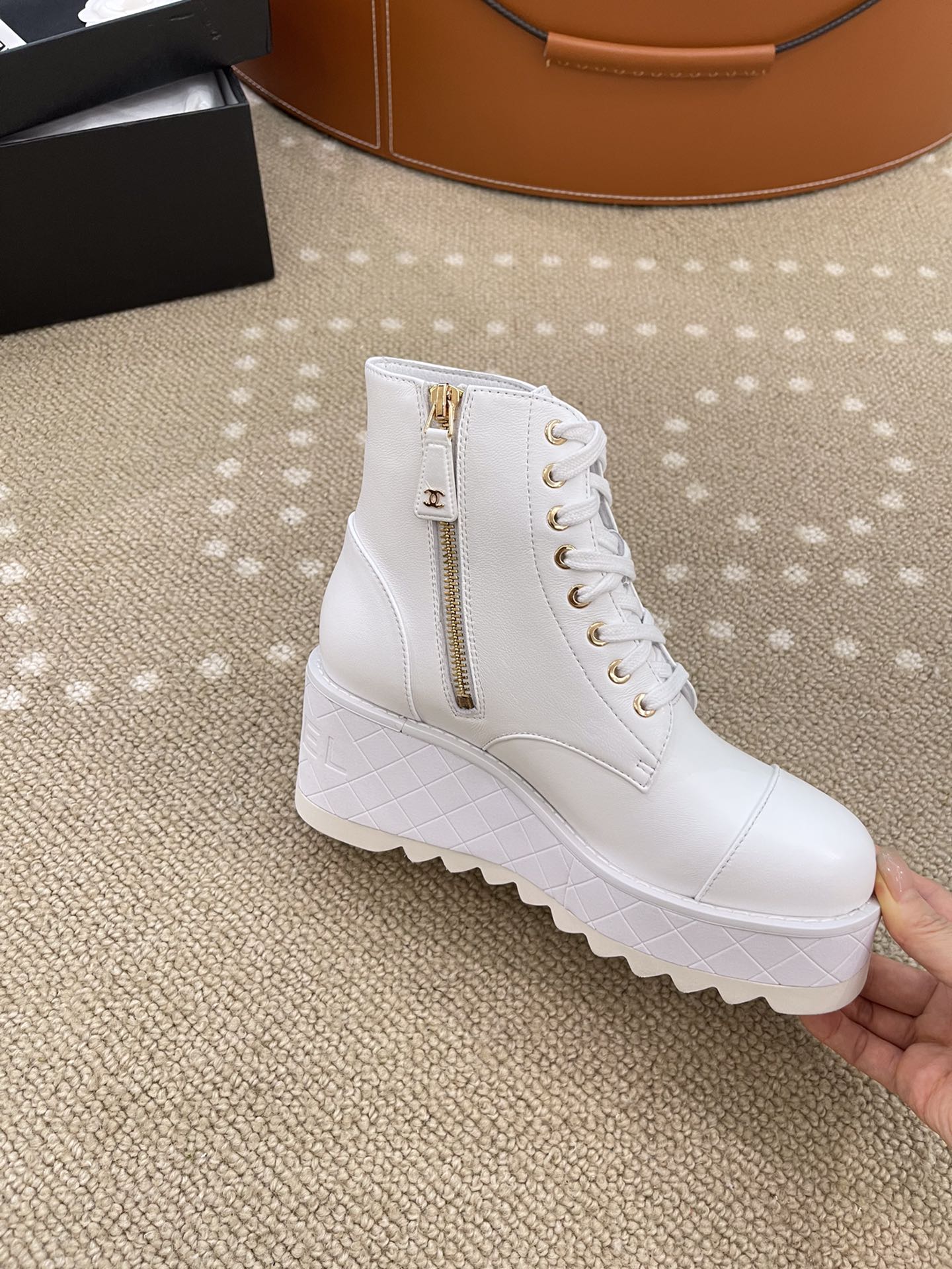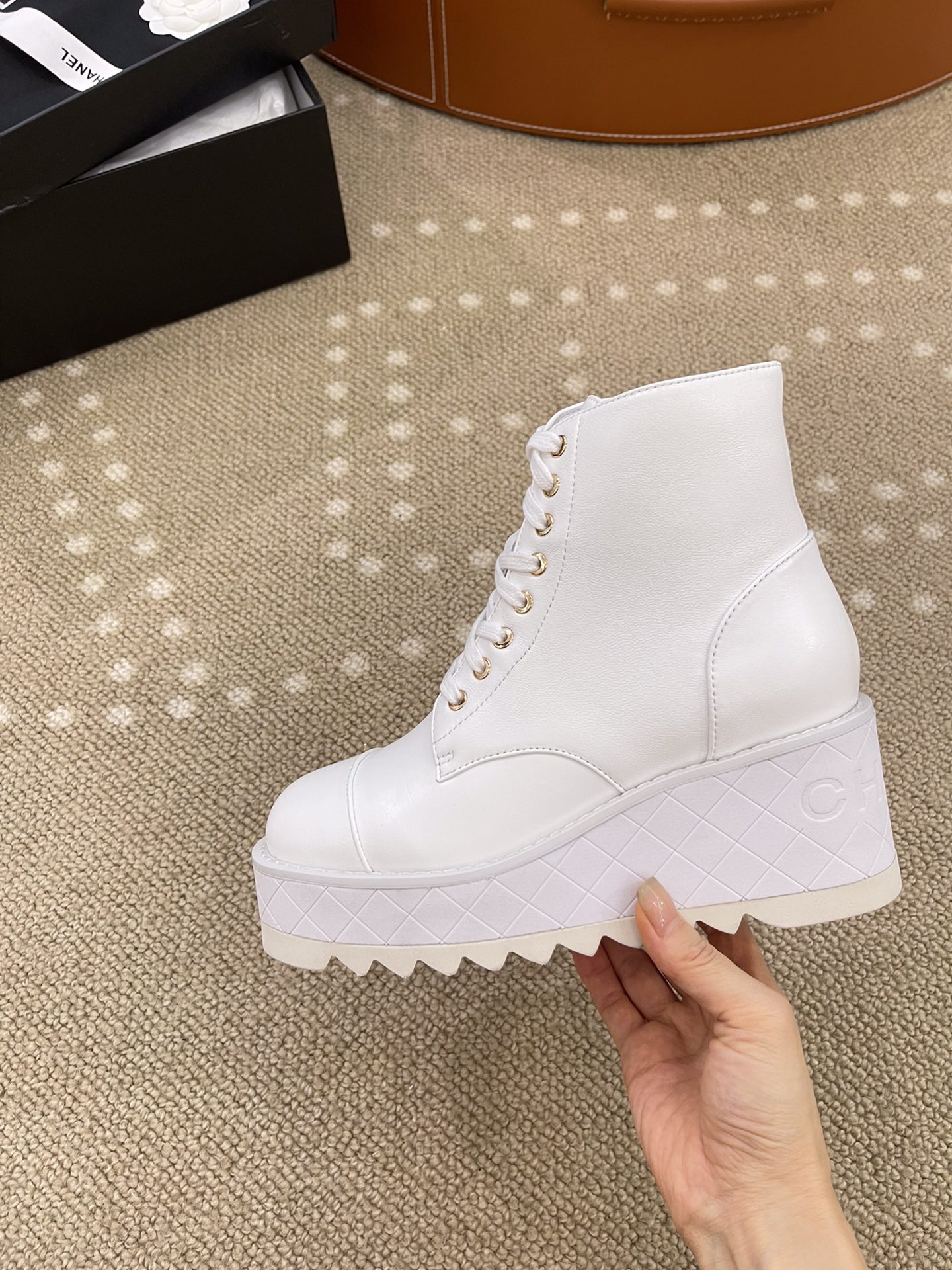 这款鞋子是AAAAA 1:1 质量 (非常棒). 使用了和原版一模一样的材料. 商标部分也保持了和香奈儿/Chanel一样. 图片拍摄是实物鞋子拍摄, 您所收到的实物保证和我们图片一模一样.