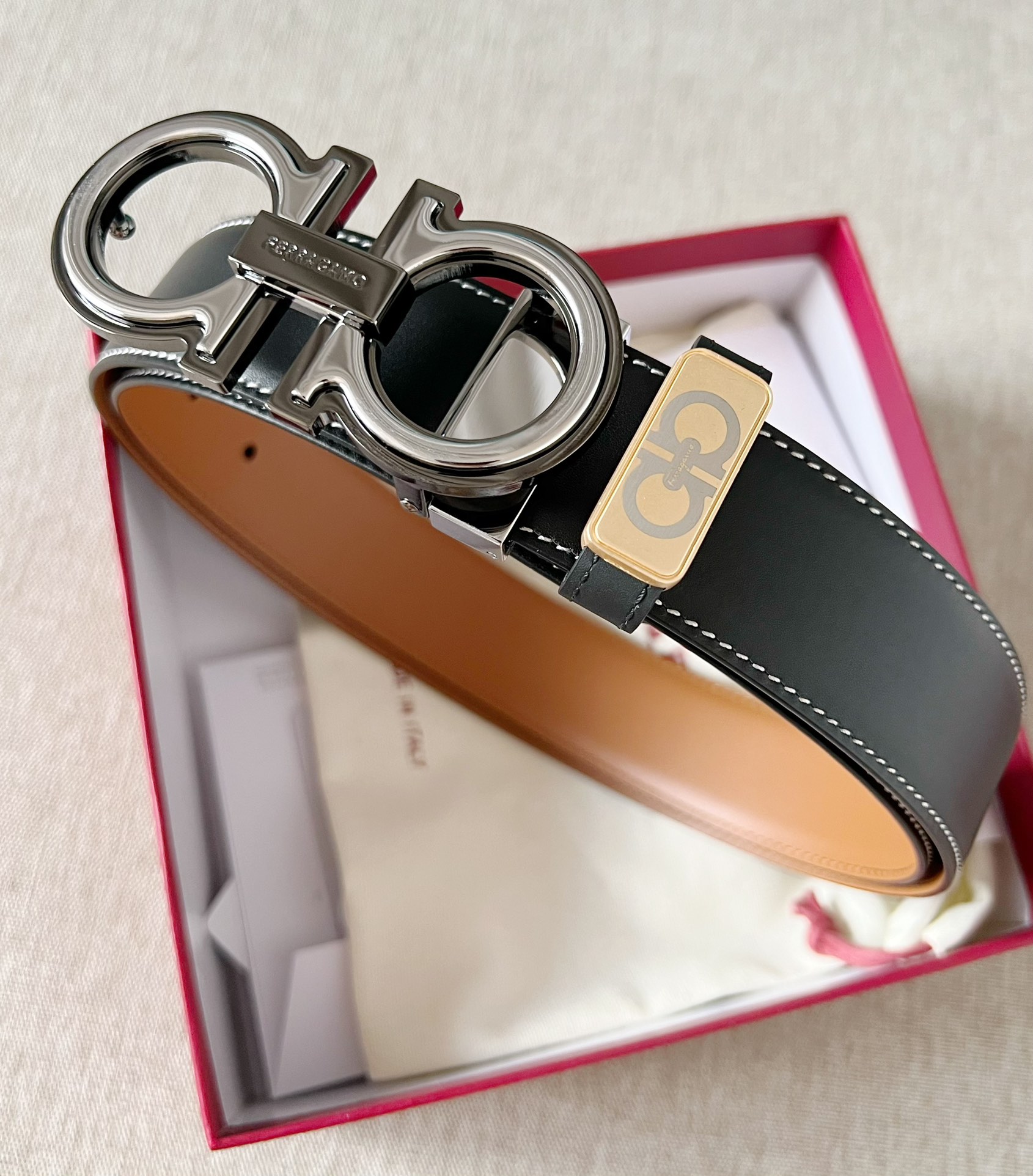 这款皮带是AAAAA 1:1 质量 (非常棒). 使用了和原版一模一样的材料. 商标部分也保持了和菲拉格慕/Salvatore Ferragamo一样. 图片拍摄是实物皮带拍摄, 您所收到的实物保证和我们图片一模一样.