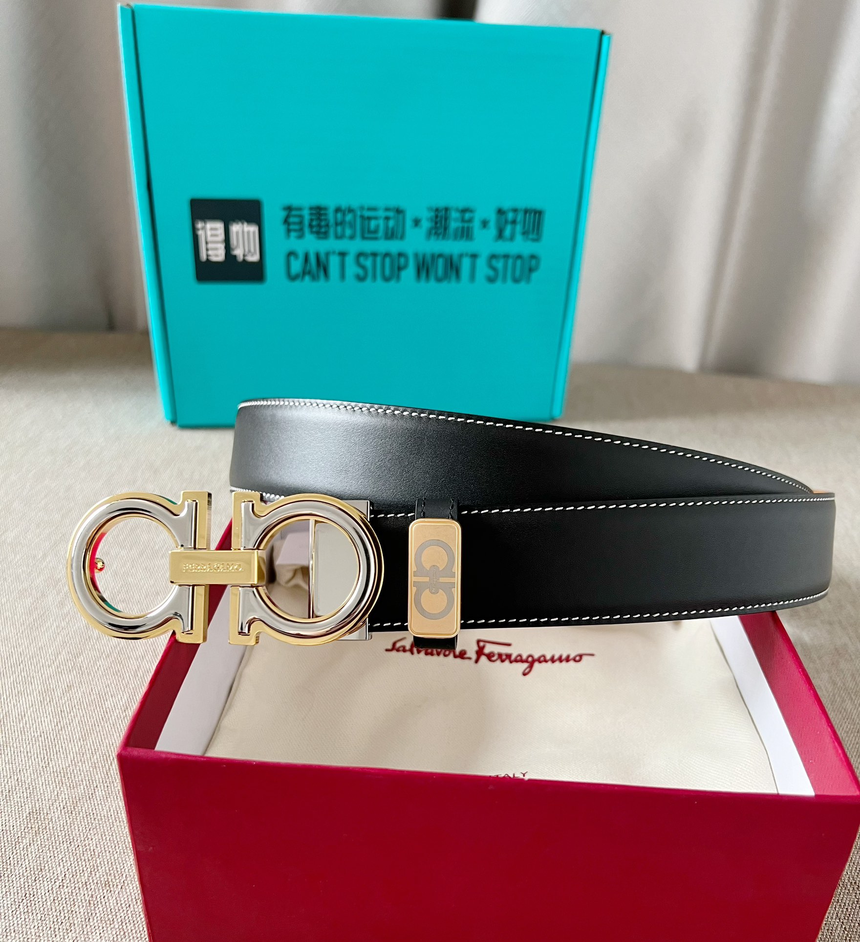 这款皮带是AAAAA 1:1 质量 (非常棒). 使用了和原版一模一样的材料. 商标部分也保持了和菲拉格慕/Salvatore Ferragamo一样. 图片拍摄是实物皮带拍摄, 您所收到的实物保证和我们图片一模一样.