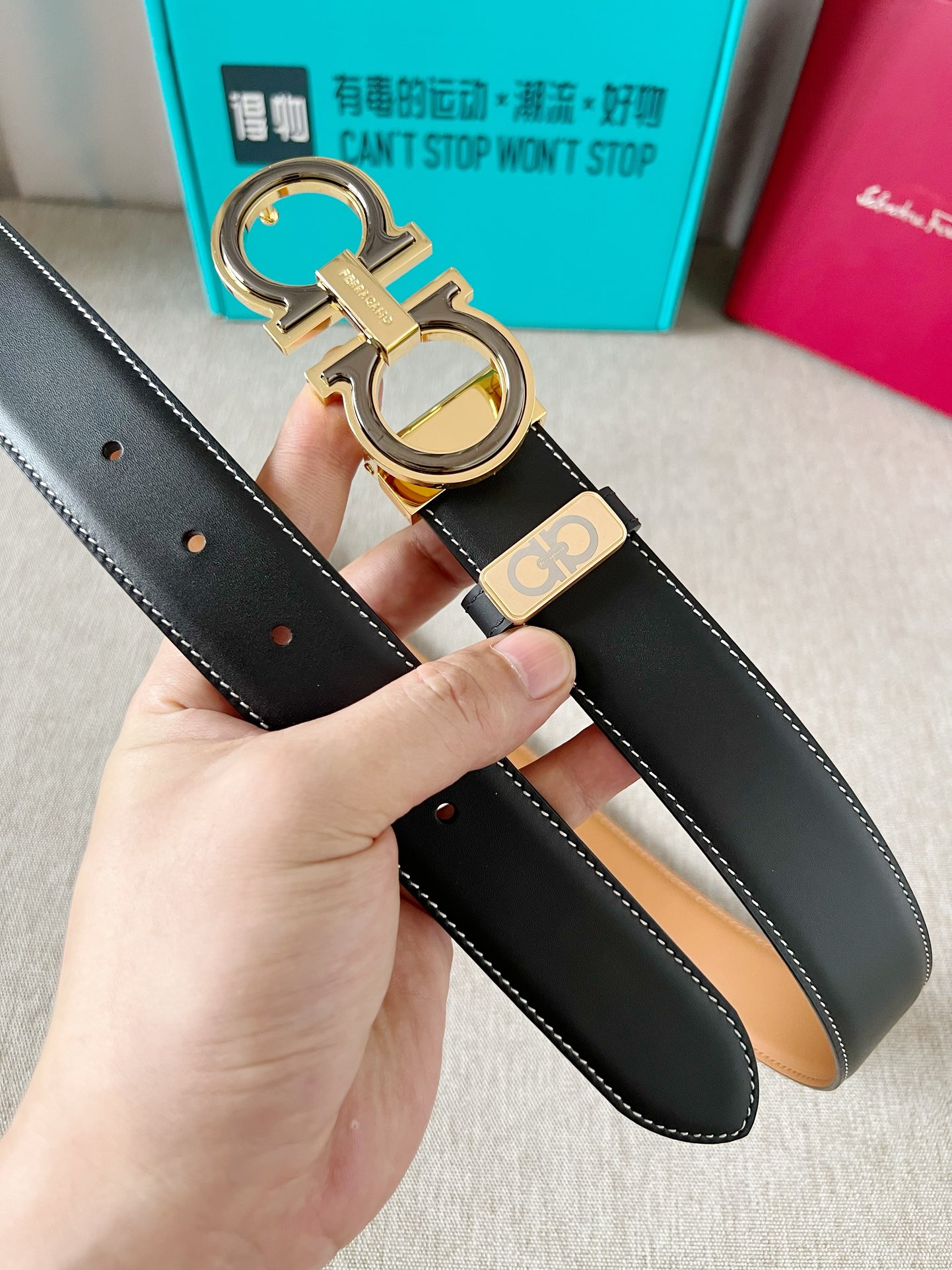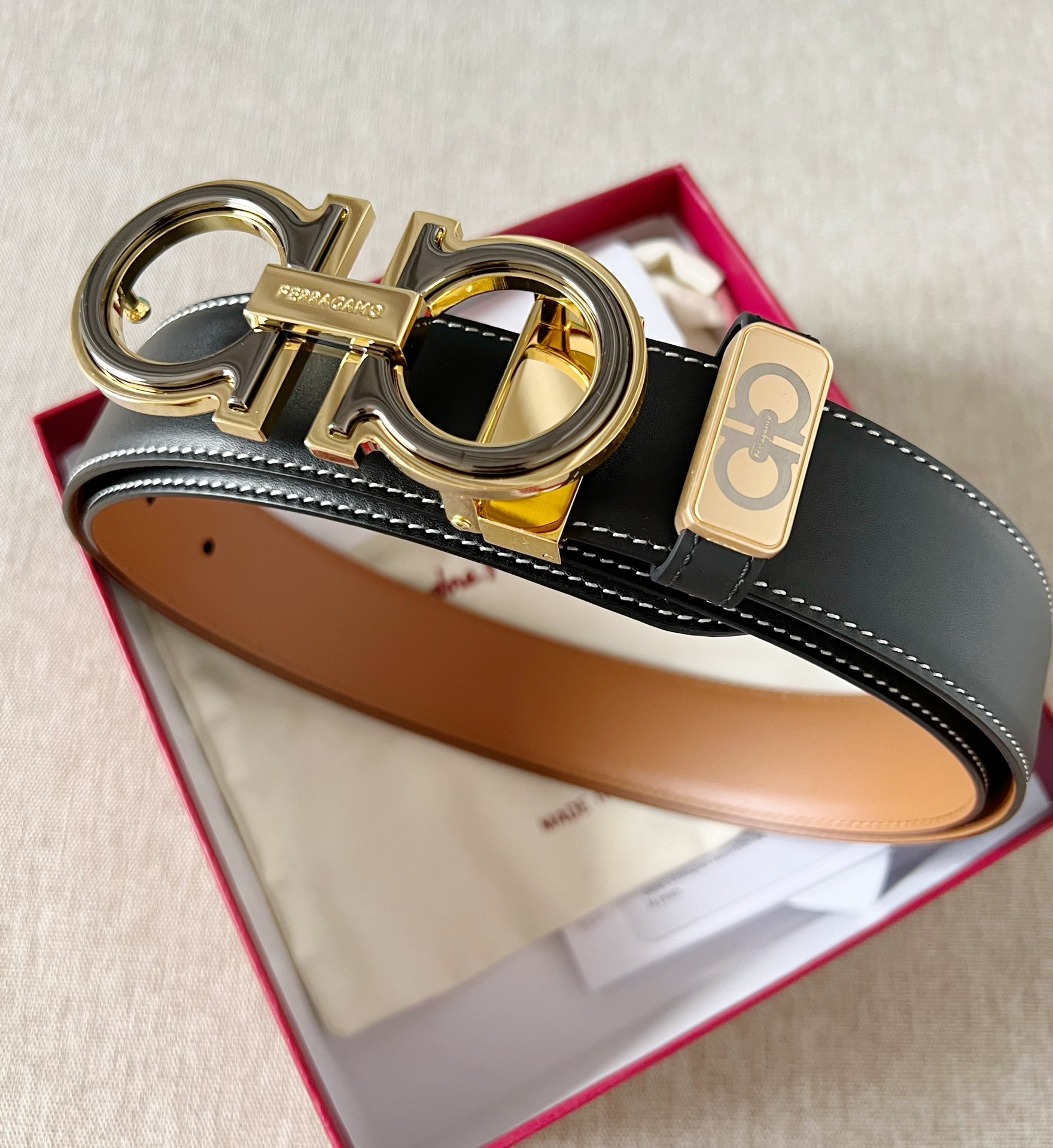 这款皮带是AAAAA 1:1 质量 (非常棒). 使用了和原版一模一样的材料. 商标部分也保持了和菲拉格慕/Salvatore Ferragamo一样. 图片拍摄是实物皮带拍摄, 您所收到的实物保证和我们图片一模一样.