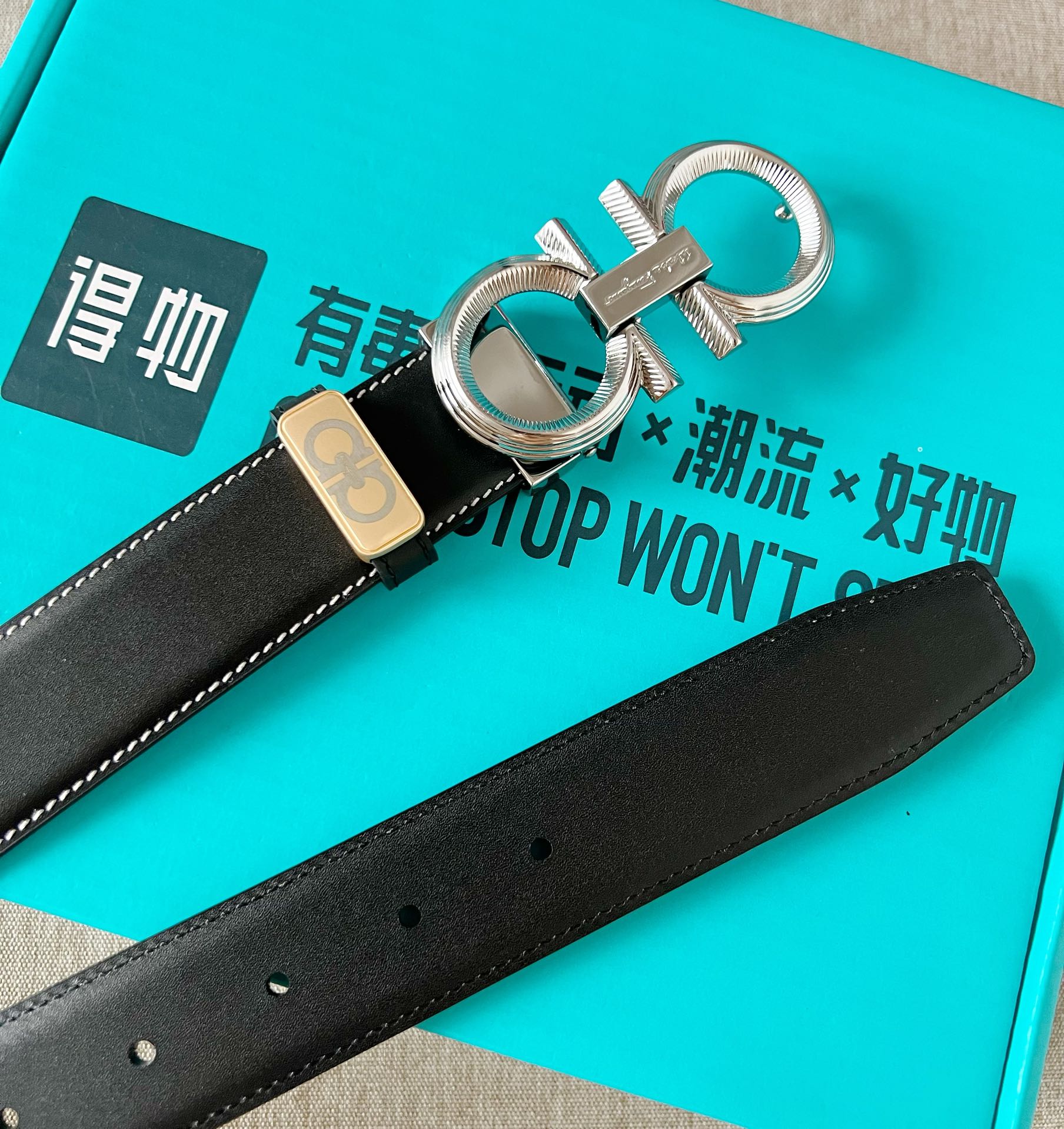这款皮带是AAAAA 1:1 质量 (非常棒). 使用了和原版一模一样的材料. 商标部分也保持了和菲拉格慕/Salvatore Ferragamo一样. 图片拍摄是实物皮带拍摄, 您所收到的实物保证和我们图片一模一样.