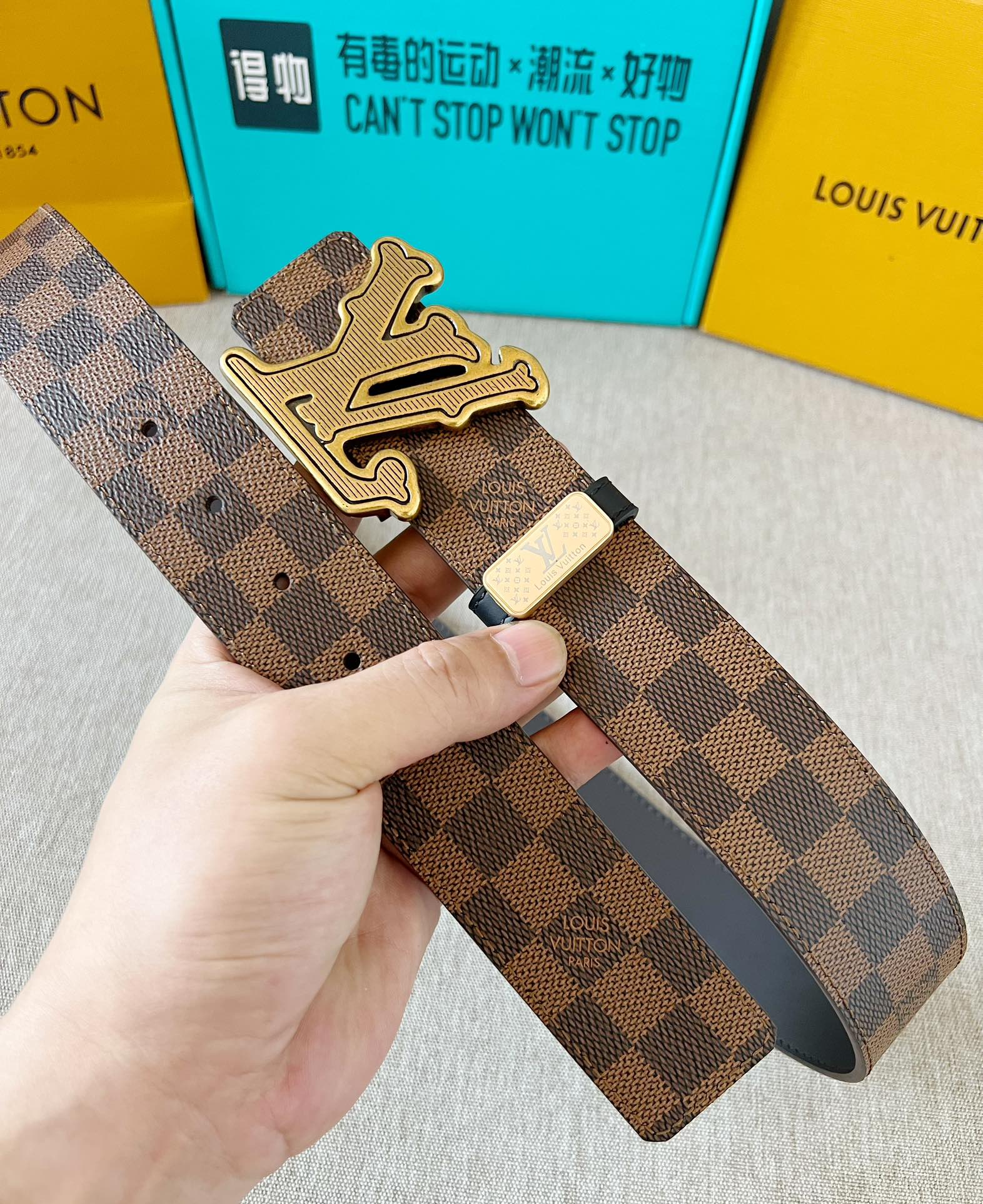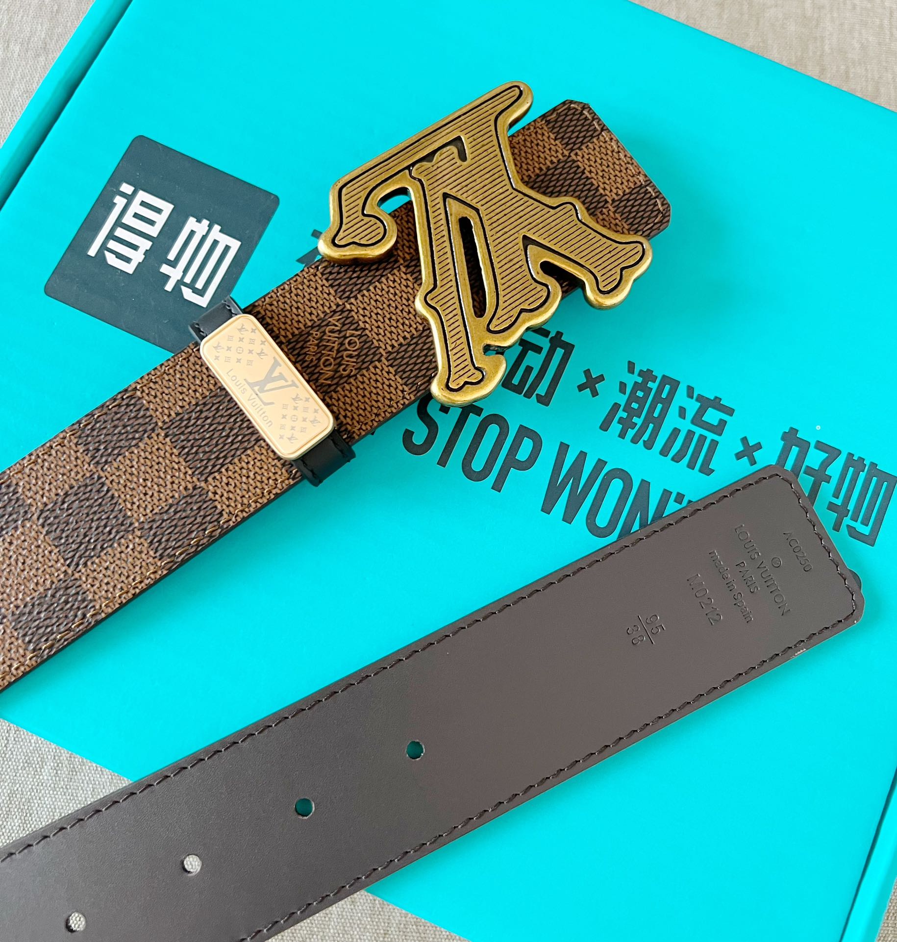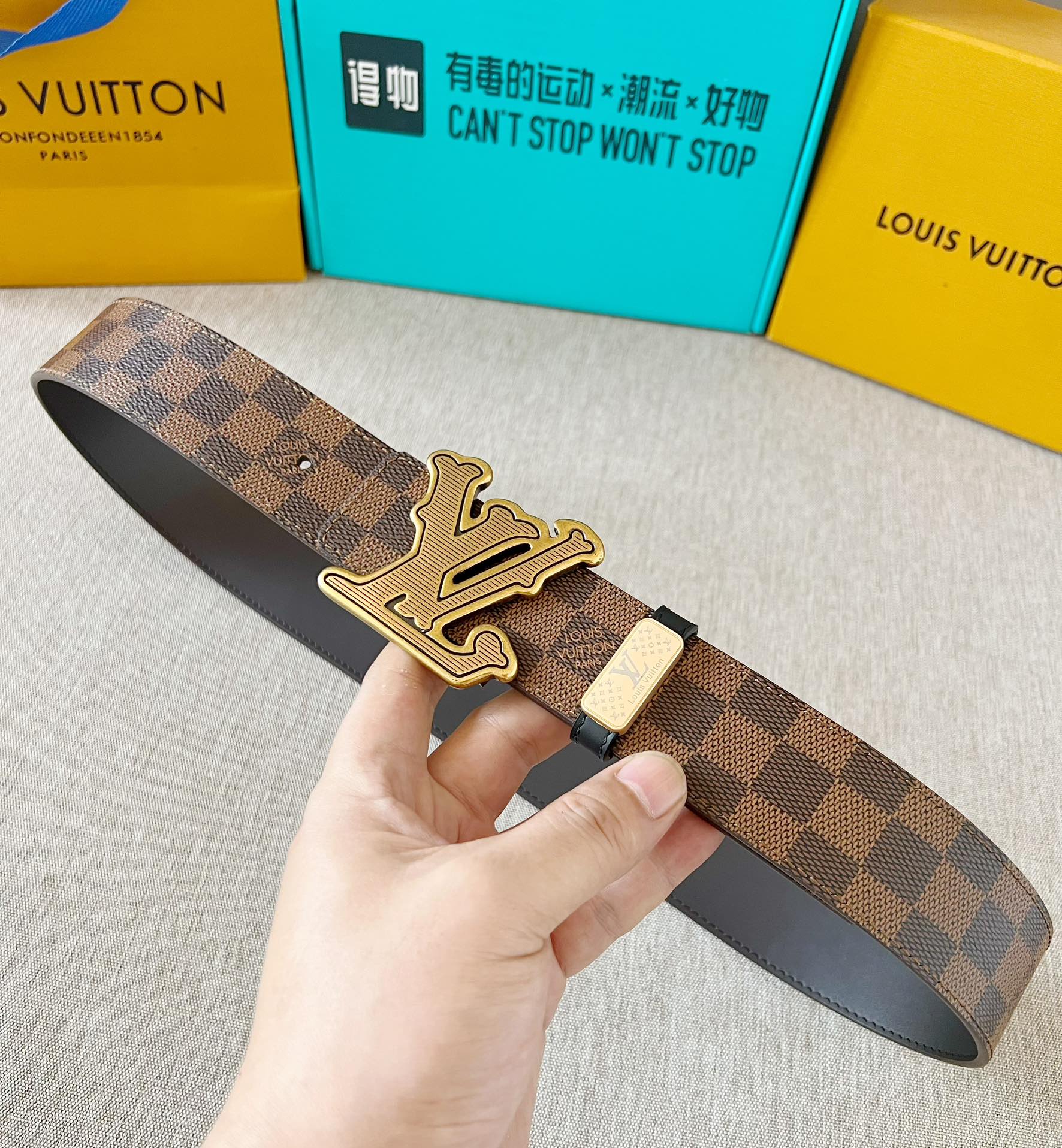 这款皮带是AAAAA 1:1 质量 (非常棒). 使用了和原版一模一样的材料. 商标部分也保持了和路易威登/Louis Vuitton一样. 图片拍摄是实物皮带拍摄, 您所收到的实物保证和我们图片一模一样.