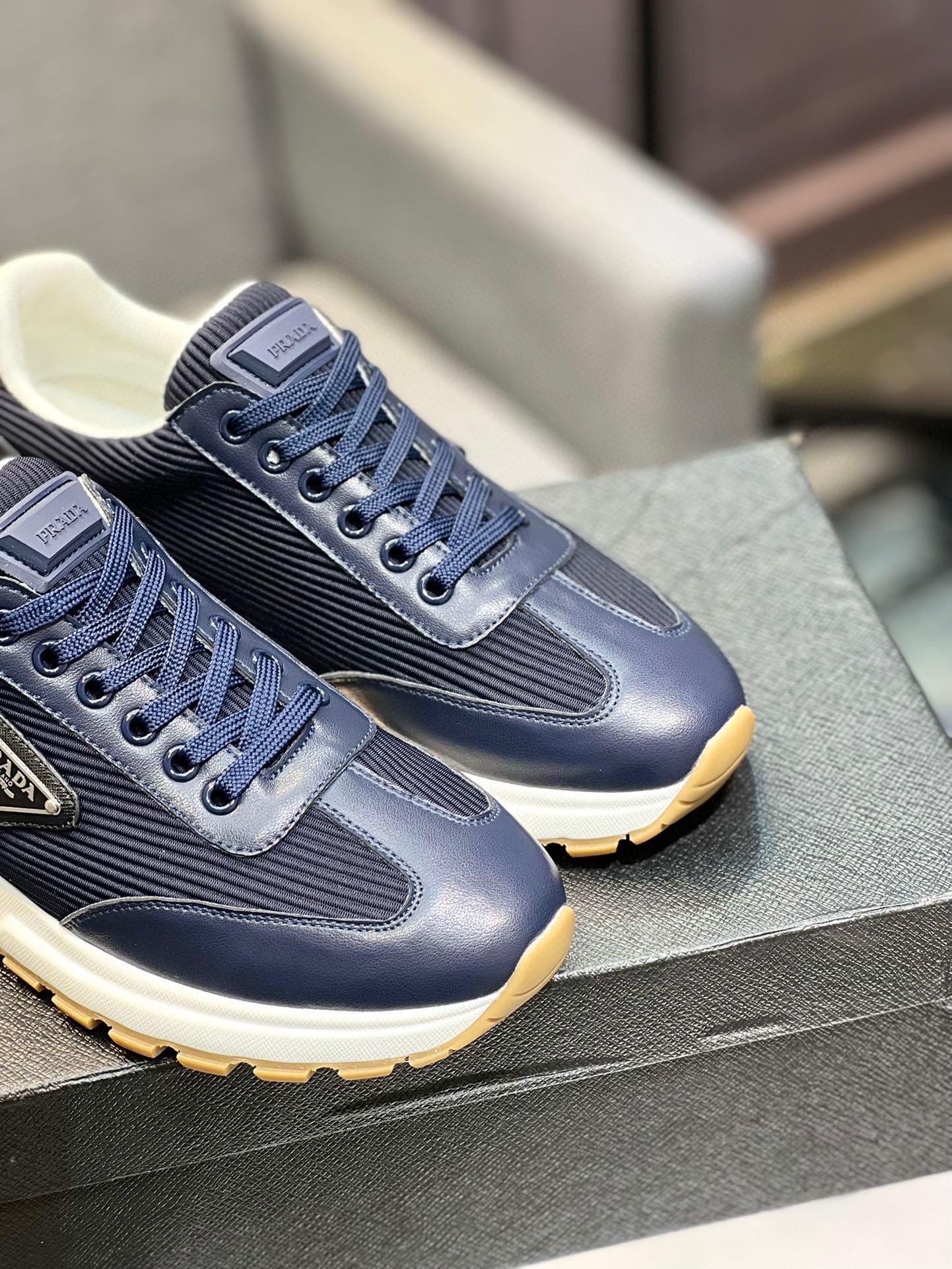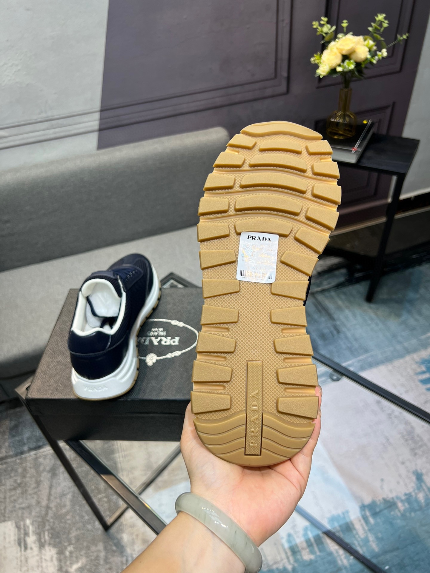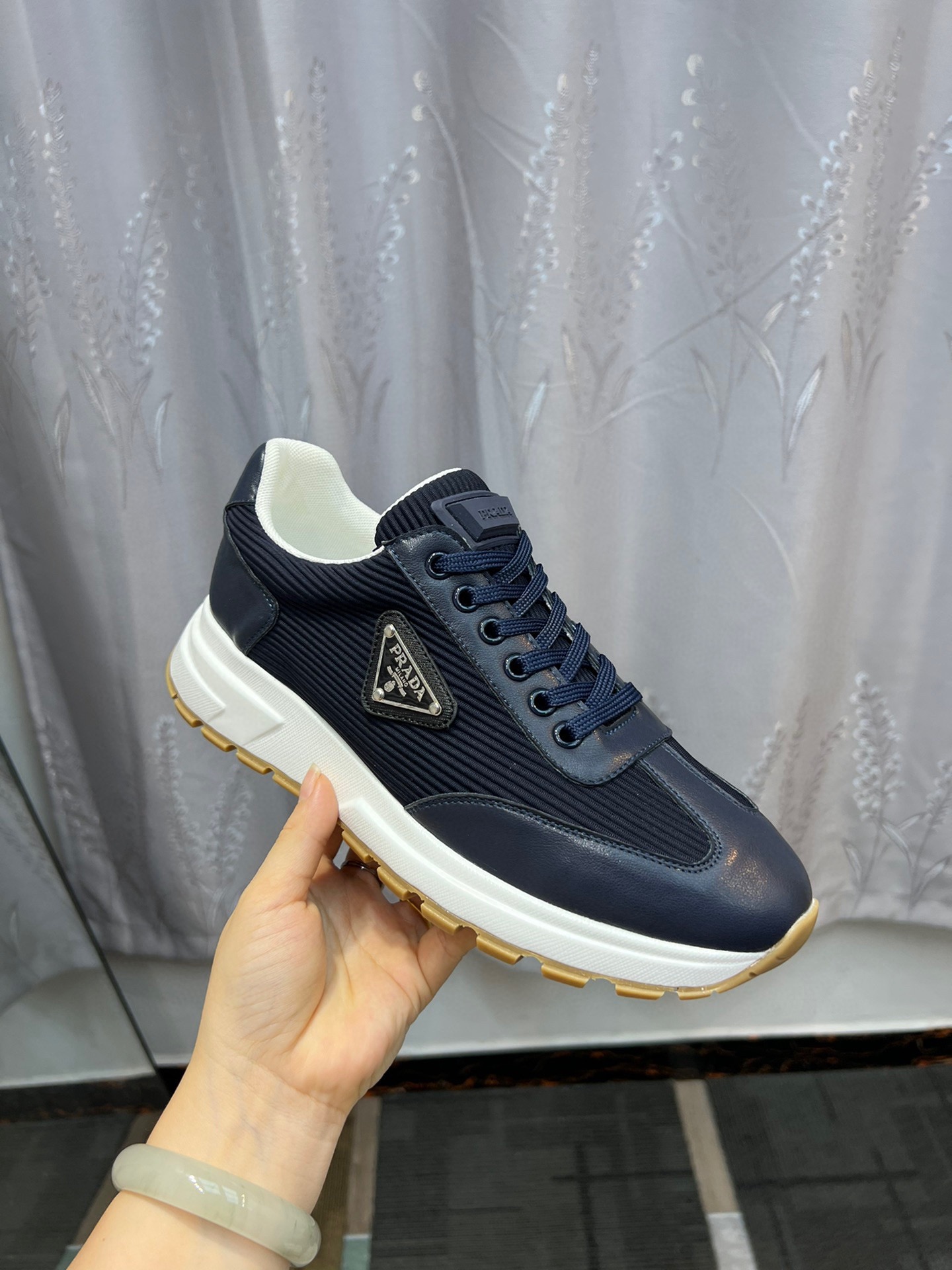 这款鞋子是AAAAA 1:1 质量 (非常棒). 使用了和原版一模一样的材料. 商标部分也保持了和普拉达/Prada一样. 图片拍摄是实物鞋子拍摄, 您所收到的实物保证和我们图片一模一样.