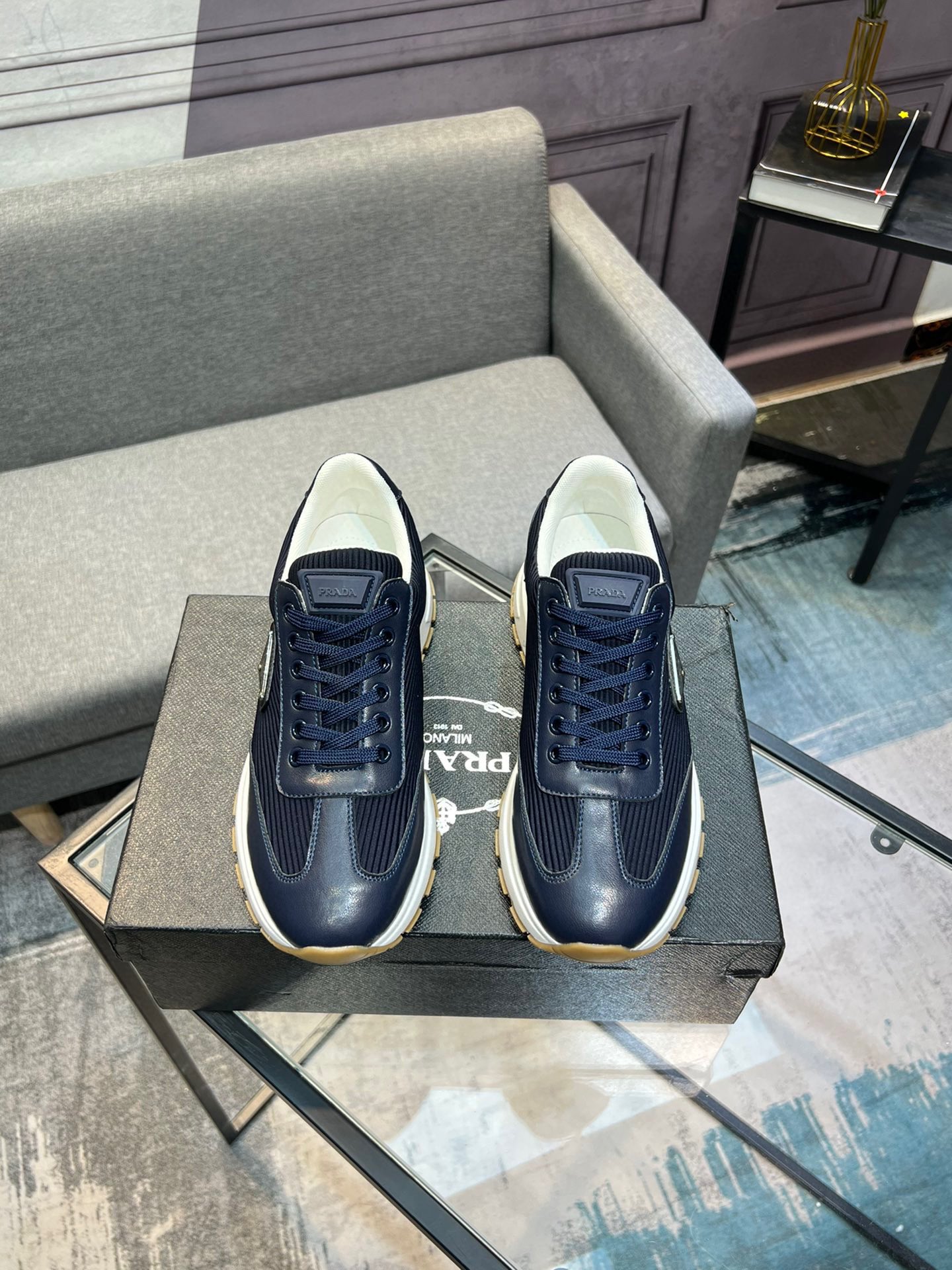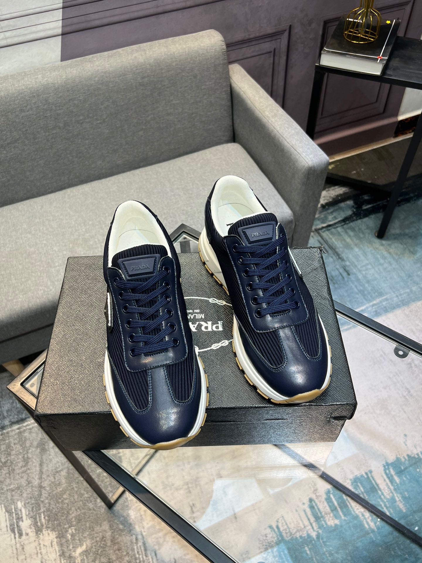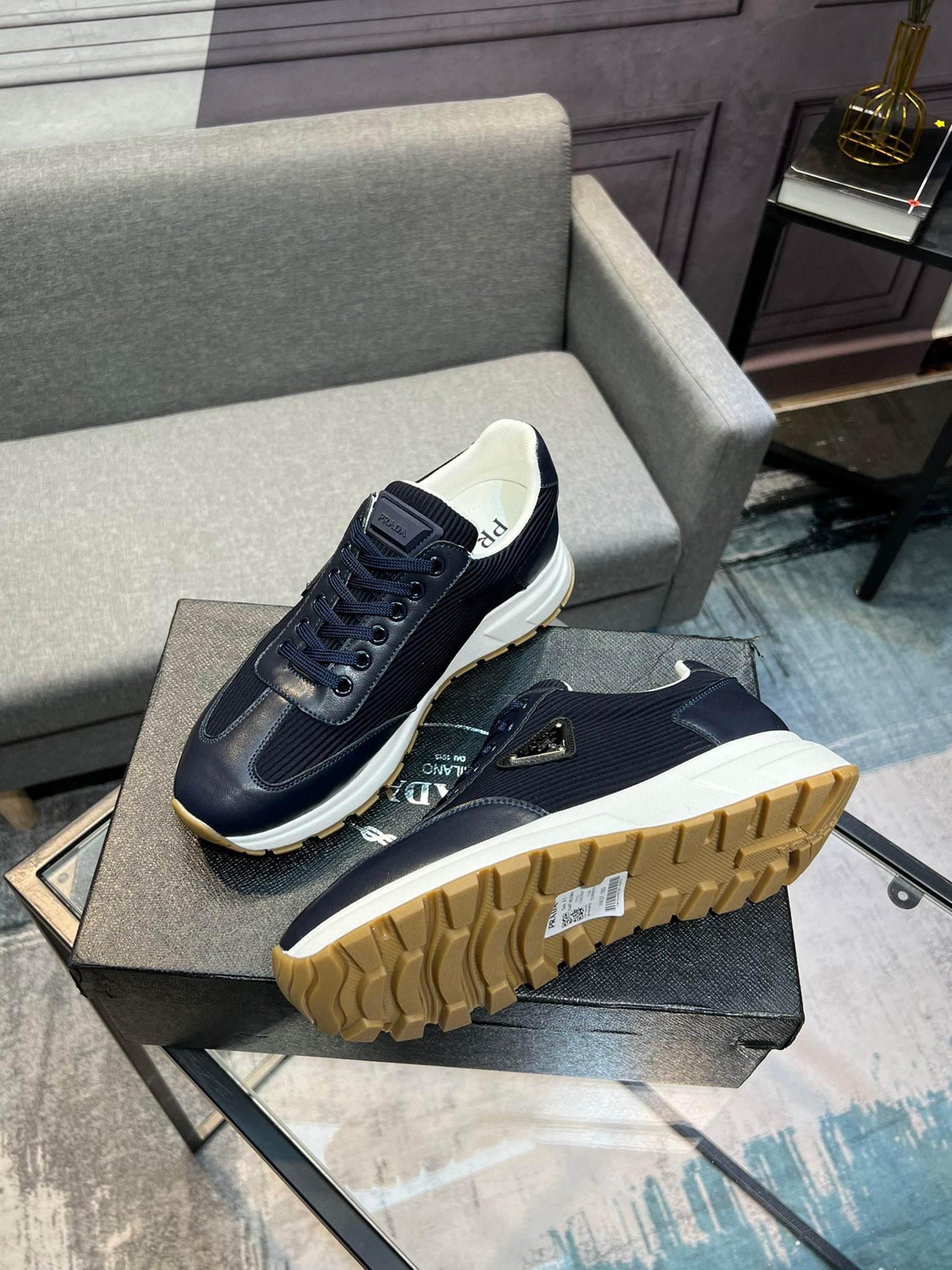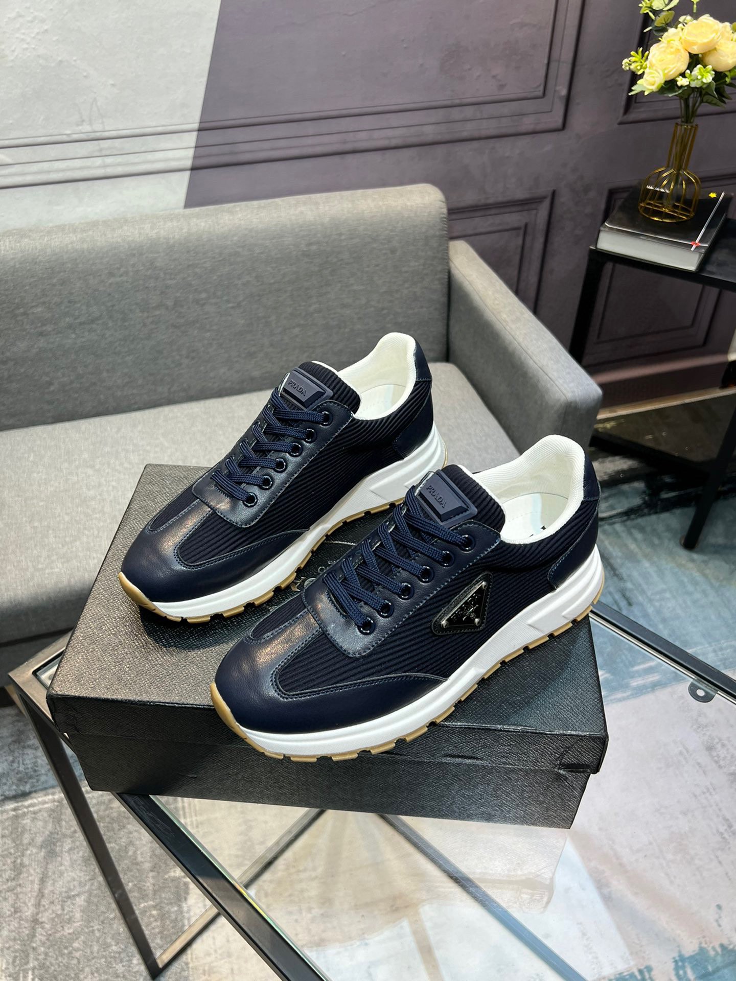 这款鞋子是AAAAA 1:1 质量 (非常棒). 使用了和原版一模一样的材料. 商标部分也保持了和普拉达/Prada一样. 图片拍摄是实物鞋子拍摄, 您所收到的实物保证和我们图片一模一样.