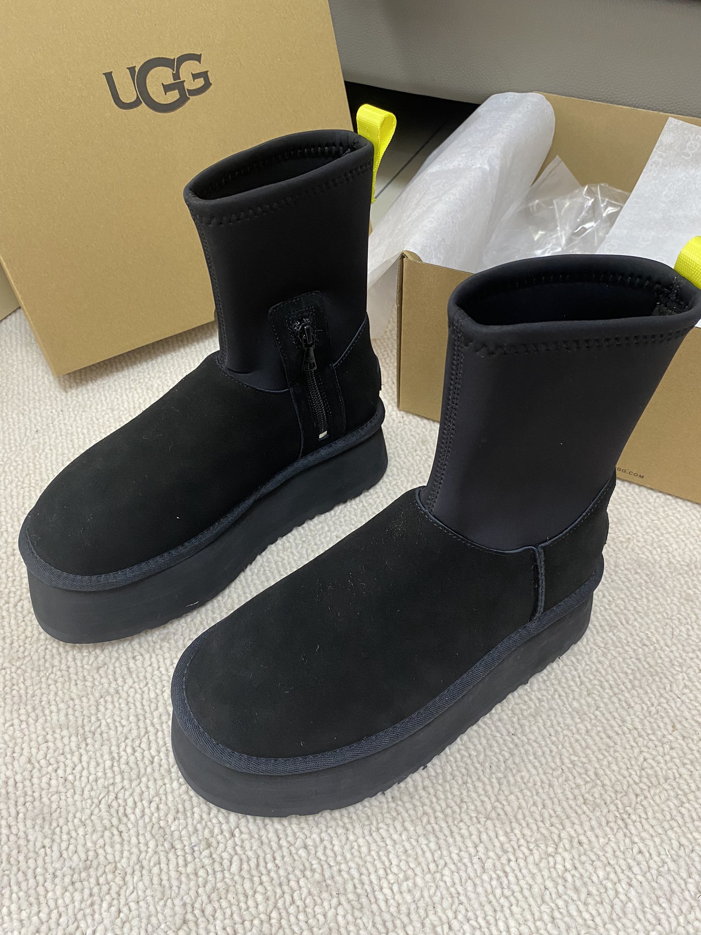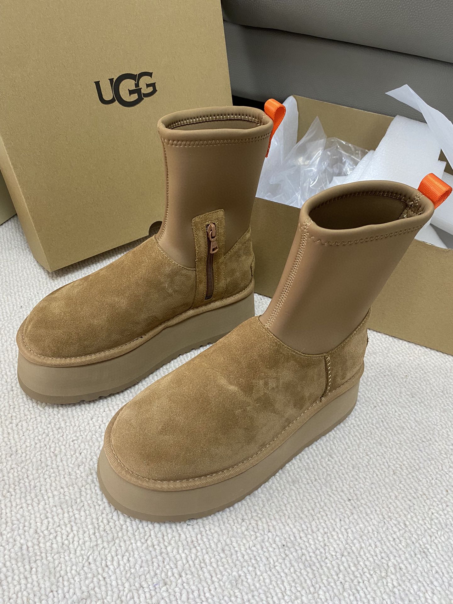 这款鞋子是AAAAA 1:1 质量 (非常棒). 使用了和原版一模一样的材料. 商标部分也保持了和UGG雪地靴一样. 图片拍摄是实物鞋子拍摄, 您所收到的实物保证和我们图片一模一样.