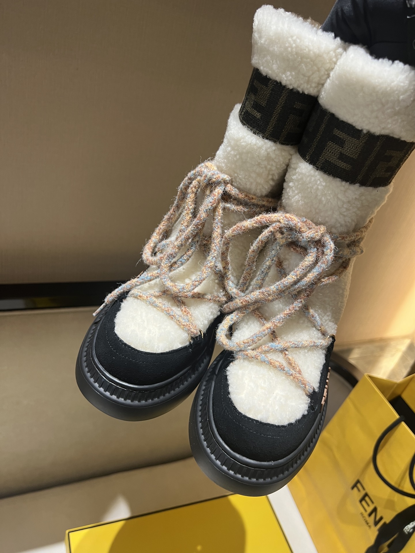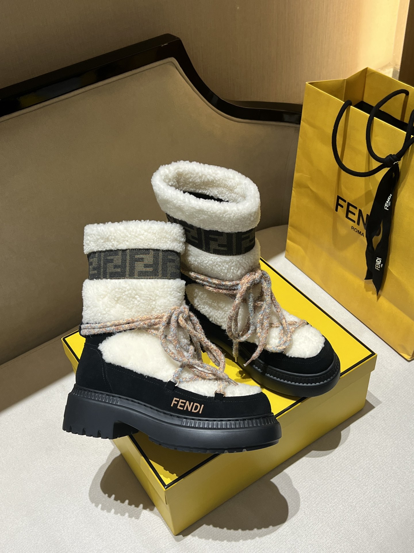 这款鞋子是AAAAA 1:1 质量 (非常棒). 使用了和原版一模一样的材料. 商标部分也保持了和芬迪/Fendi一样. 图片拍摄是实物鞋子拍摄, 您所收到的实物保证和我们图片一模一样.