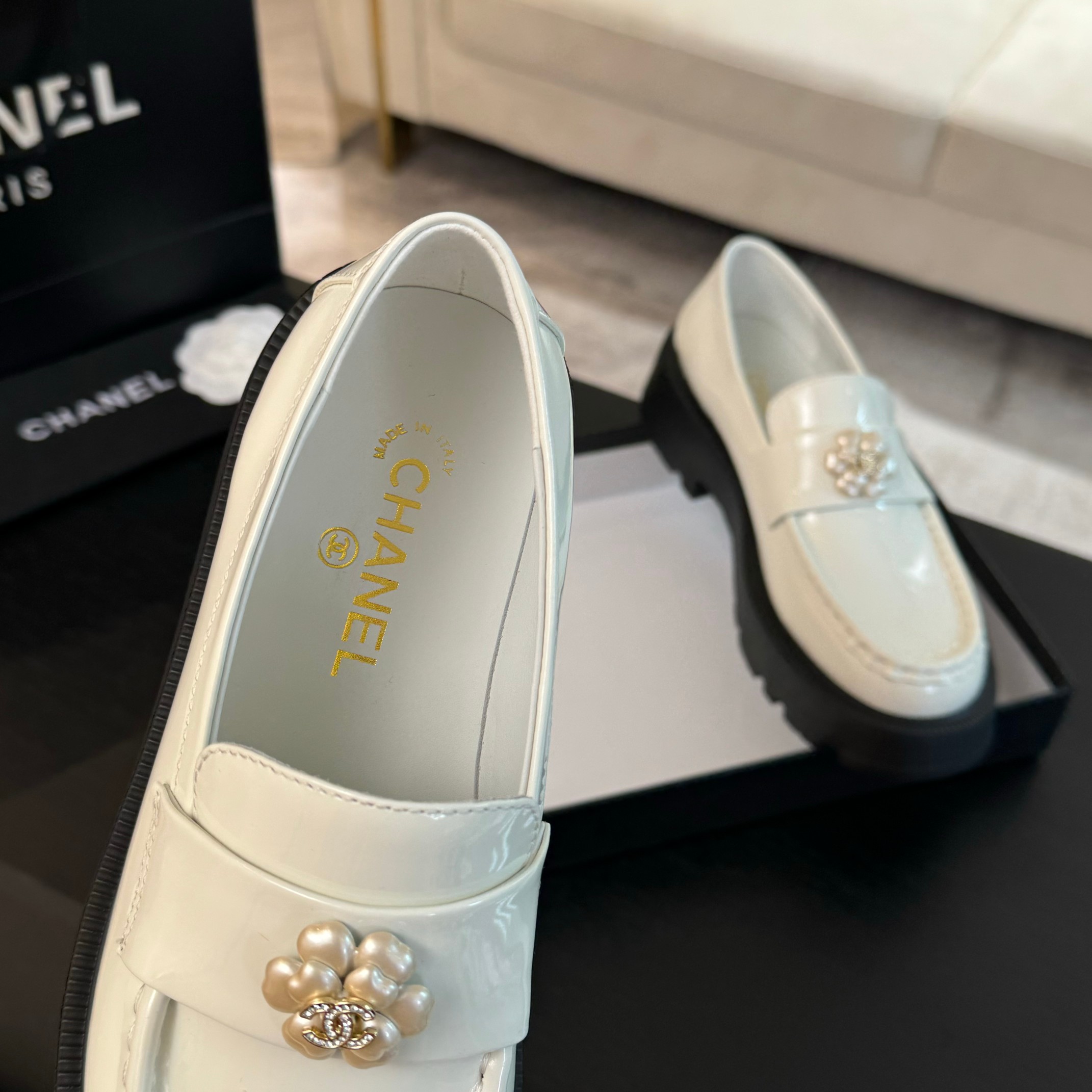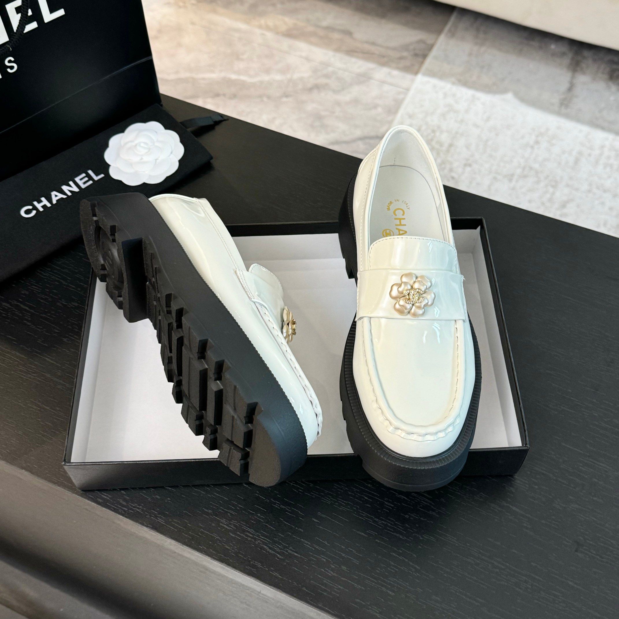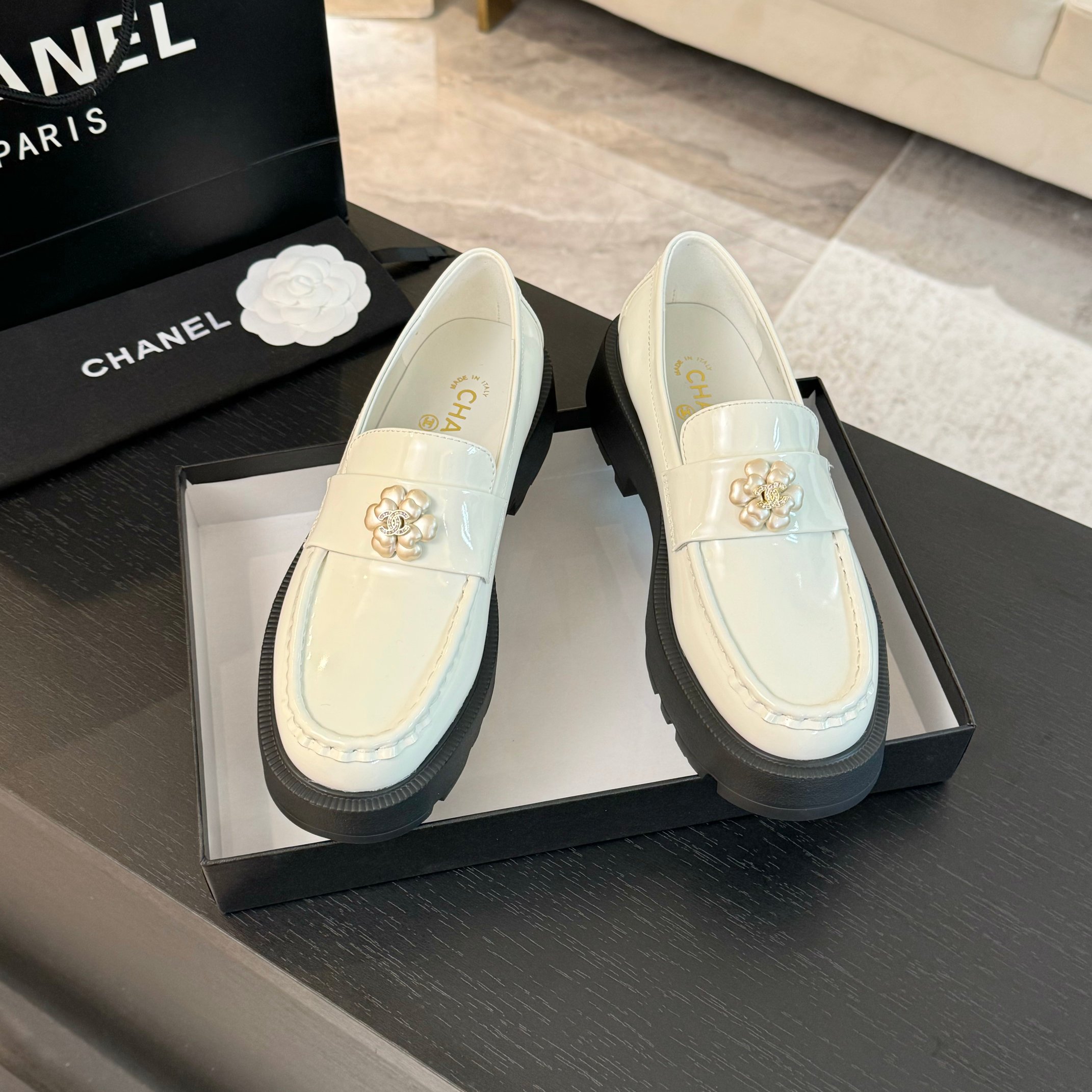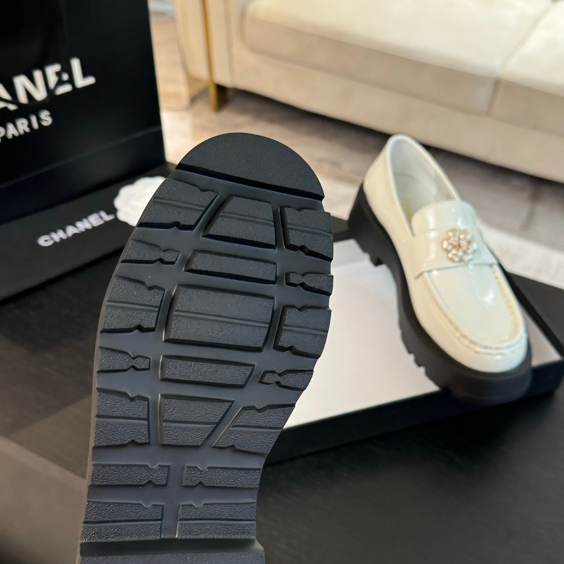 这款鞋子是AAAAA 1:1 质量 (非常棒). 使用了和原版一模一样的材料. 商标部分也保持了和香奈儿/Chanel一样. 图片拍摄是实物鞋子拍摄, 您所收到的实物保证和我们图片一模一样.