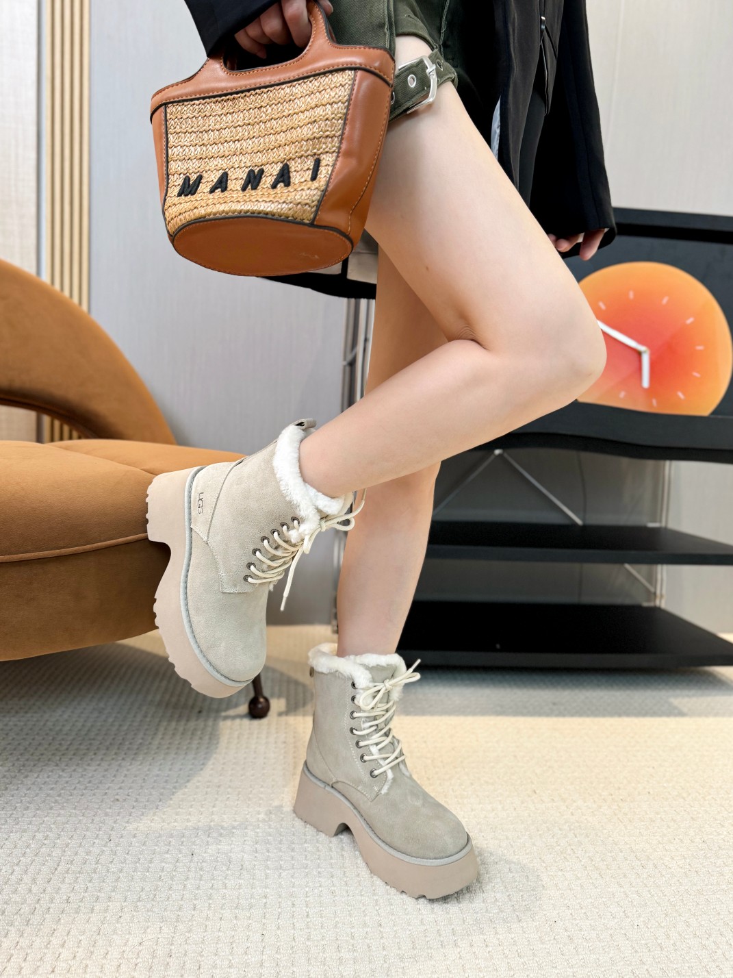 这款鞋子是AAAAA 1:1 质量 (非常棒). 使用了和原版一模一样的材料. 商标部分也保持了和UGG雪地靴一样. 图片拍摄是实物鞋子拍摄, 您所收到的实物保证和我们图片一模一样.