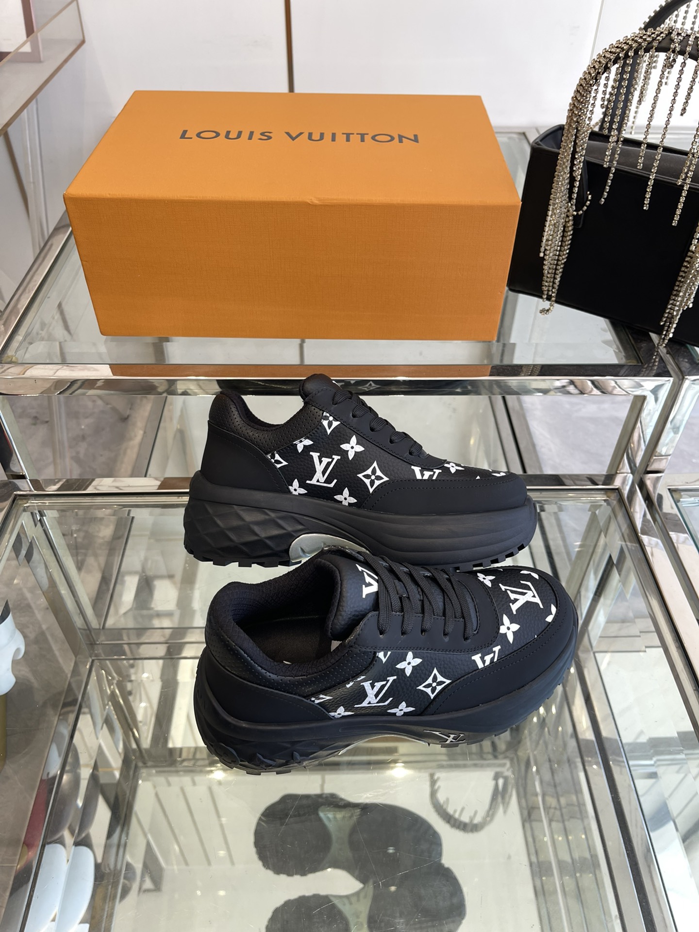 这款鞋子是AAAAA 1:1 质量 (非常棒). 使用了和原版一模一样的材料. 商标部分也保持了和路易威登/Louis Vuitton一样. 图片拍摄是实物鞋子拍摄, 您所收到的实物保证和我们图片一模一样.