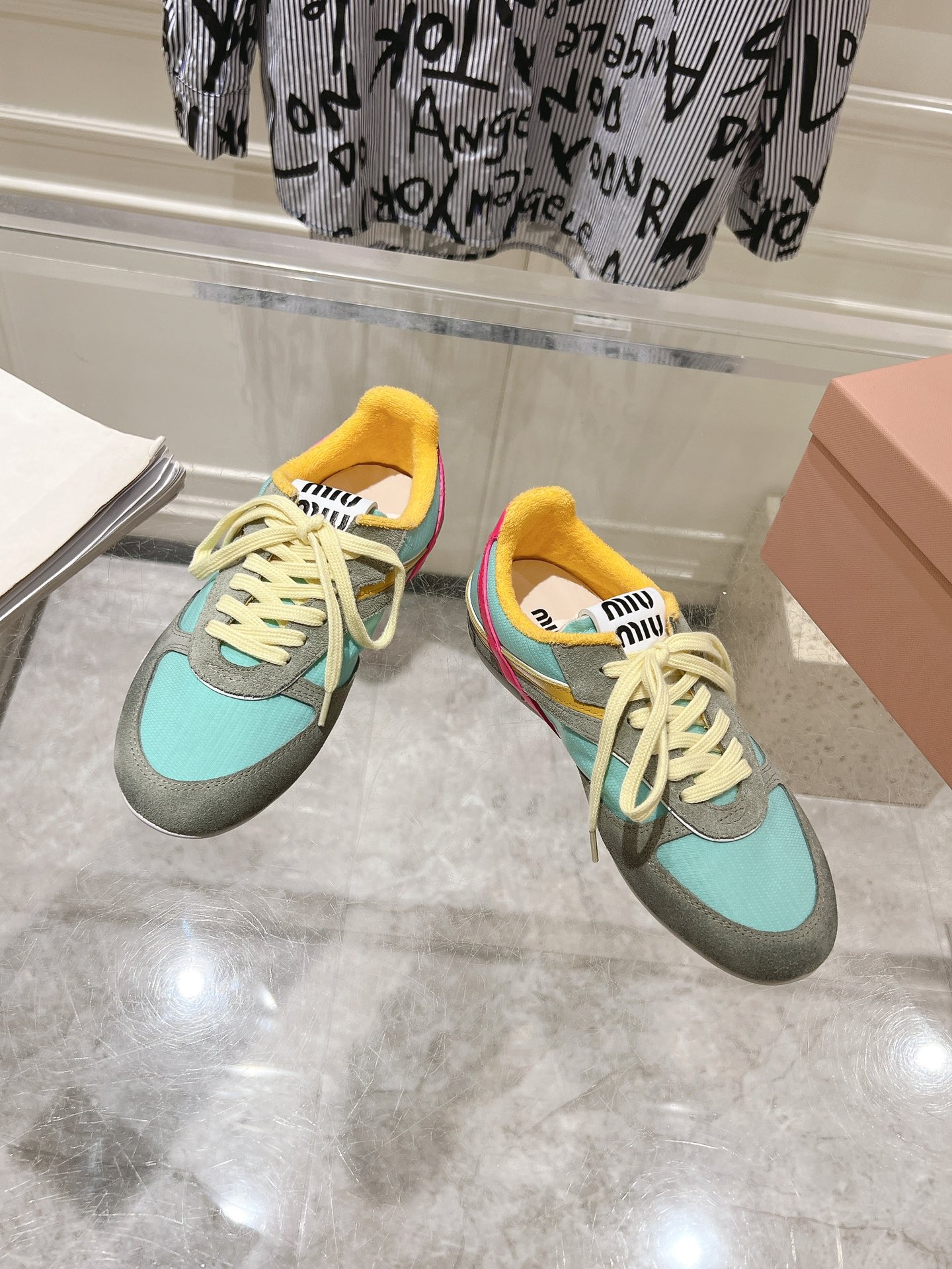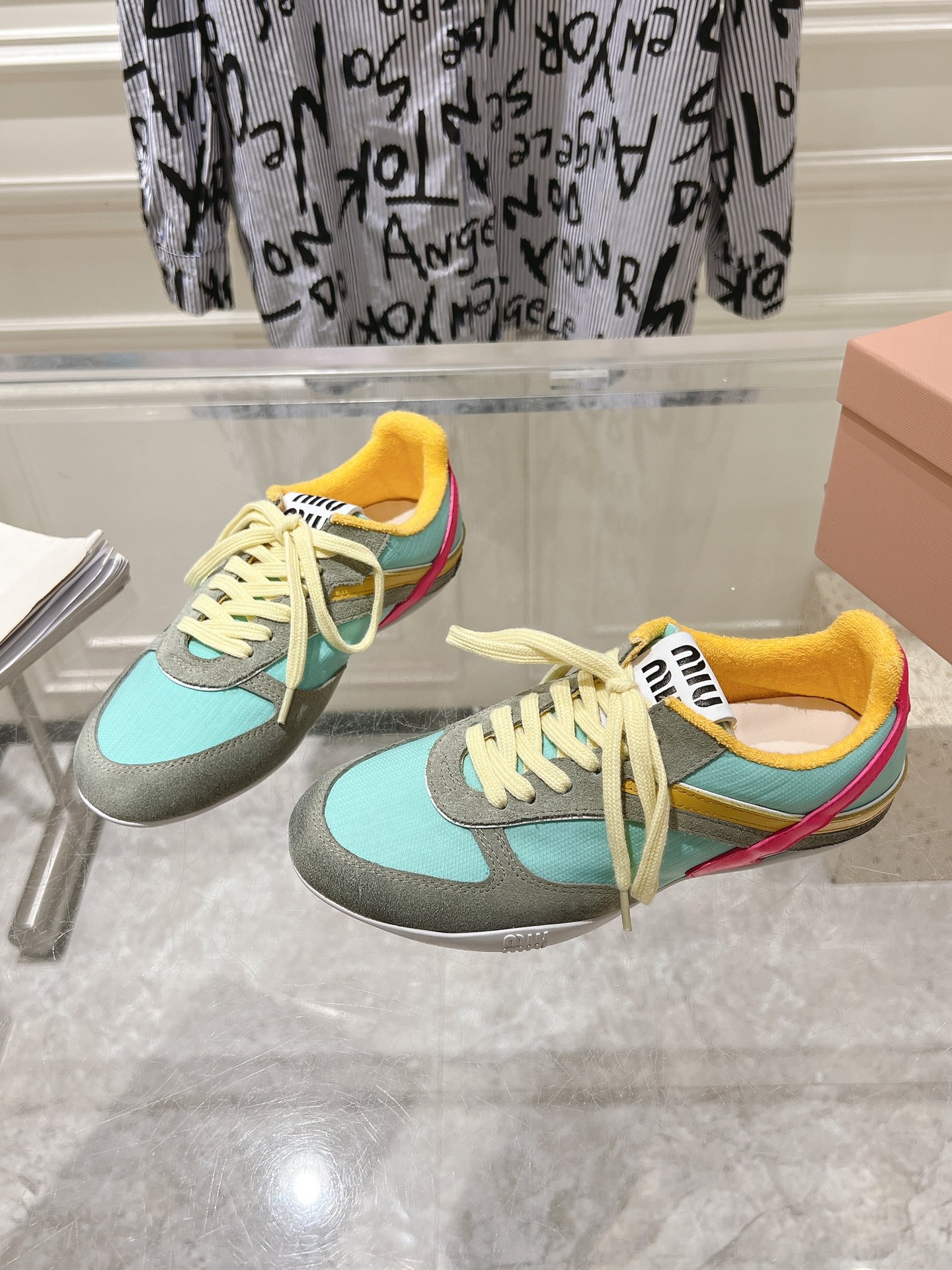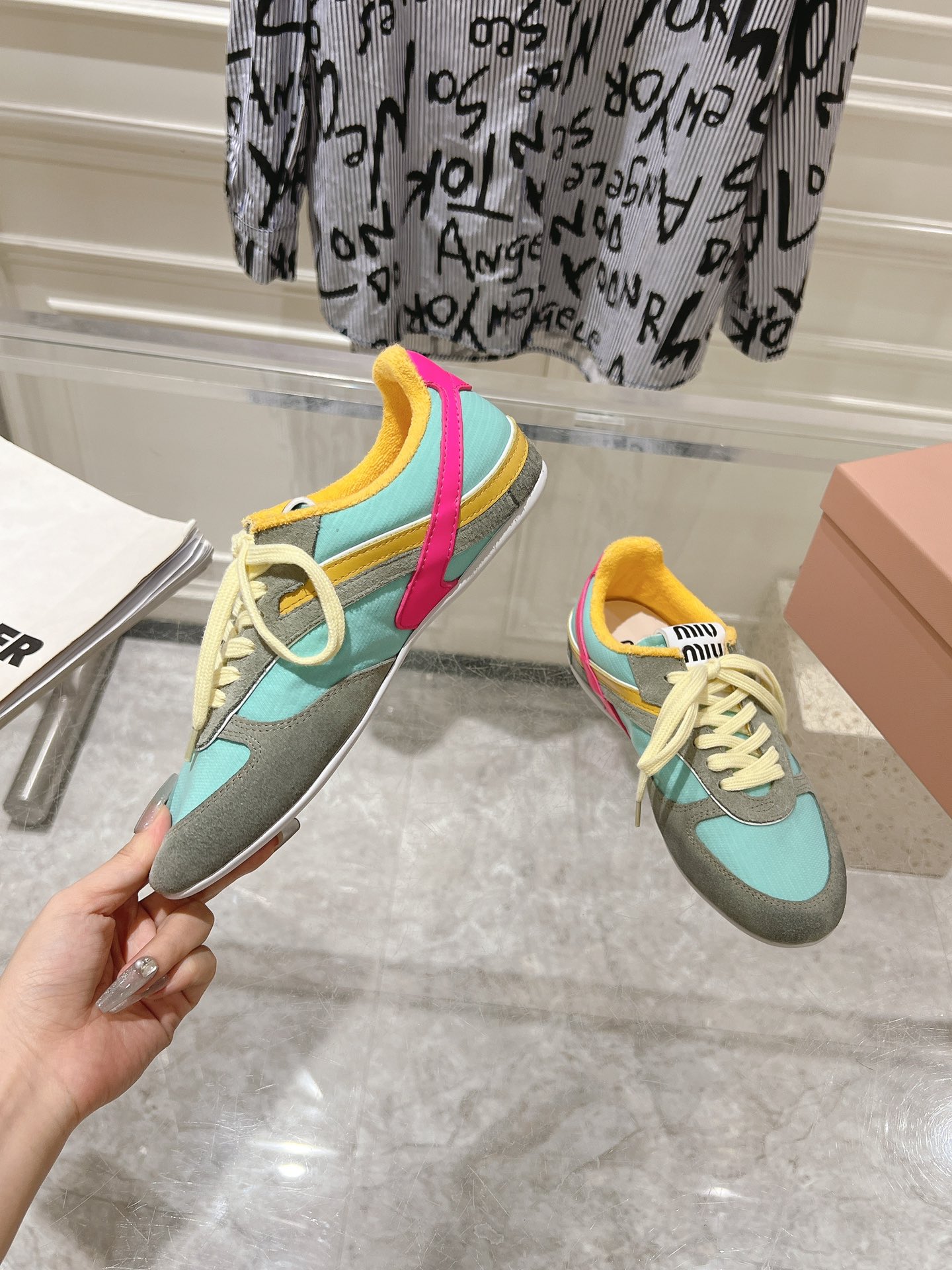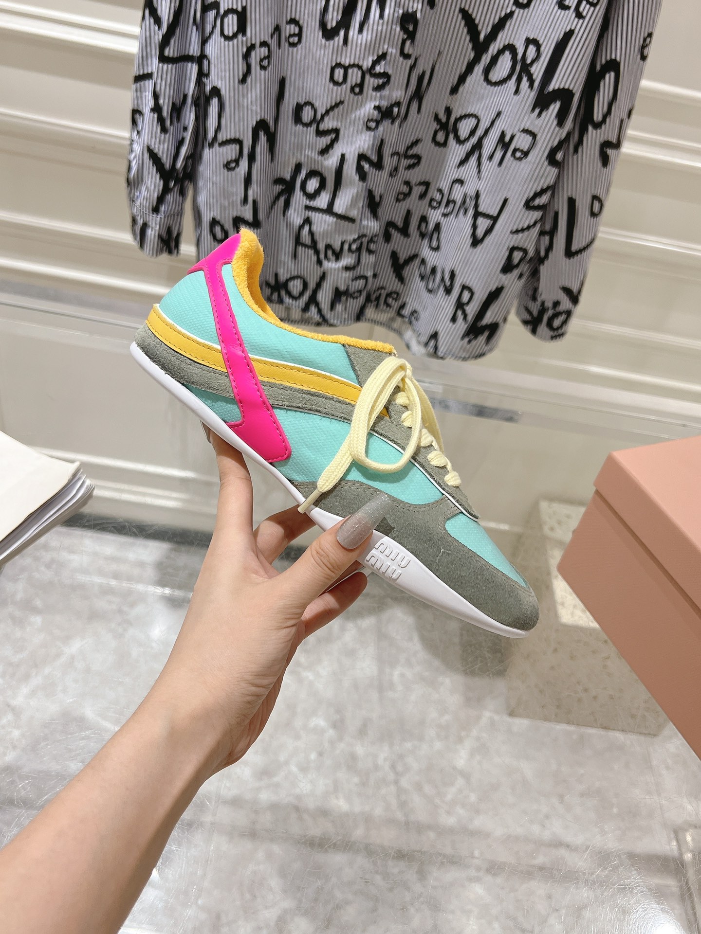 这款鞋子是AAAAA 1:1 质量 (非常棒). 使用了和原版一模一样的材料. 商标部分也保持了和缪缪/Miu Miu一样. 图片拍摄是实物鞋子拍摄, 您所收到的实物保证和我们图片一模一样.
