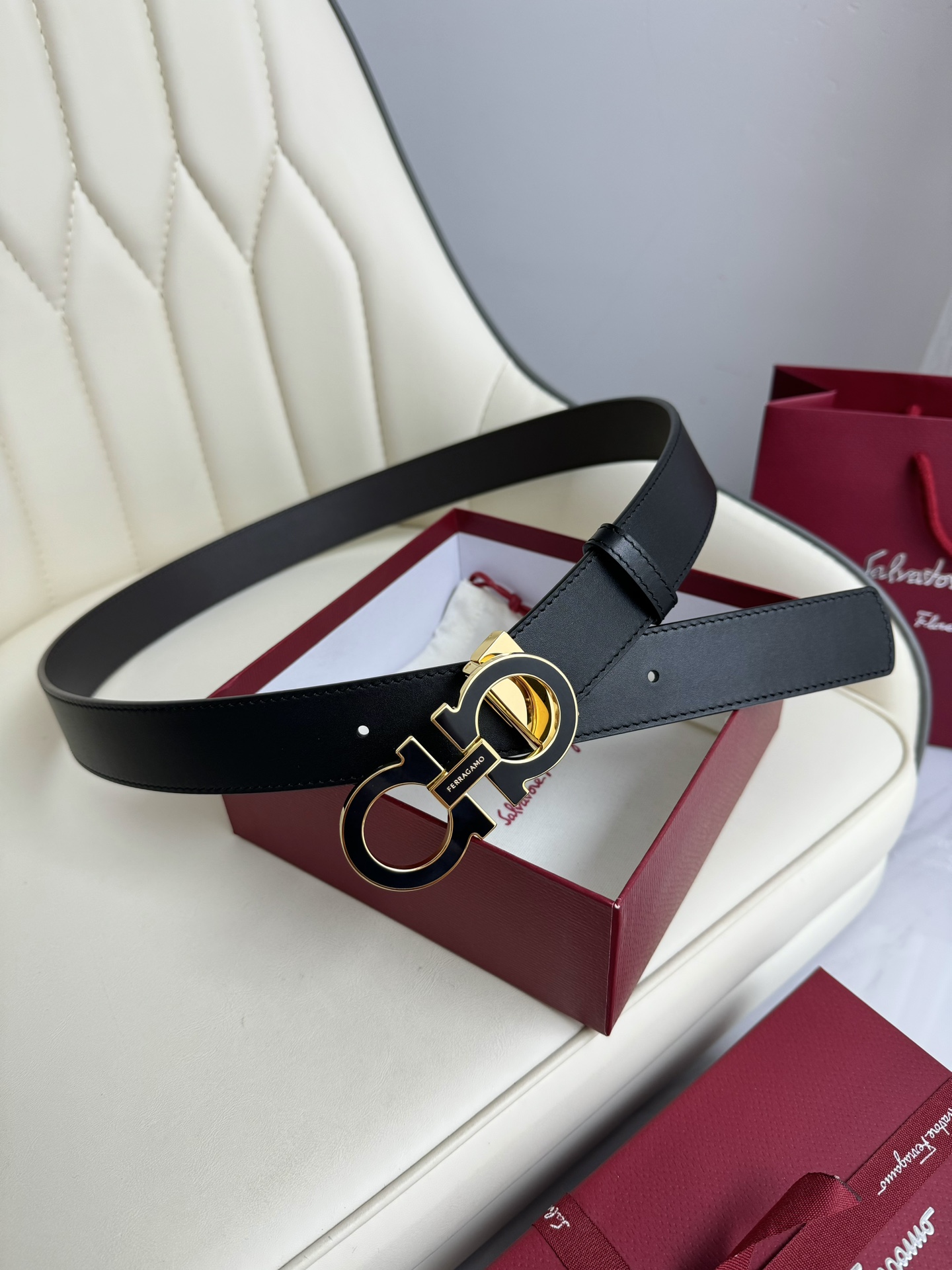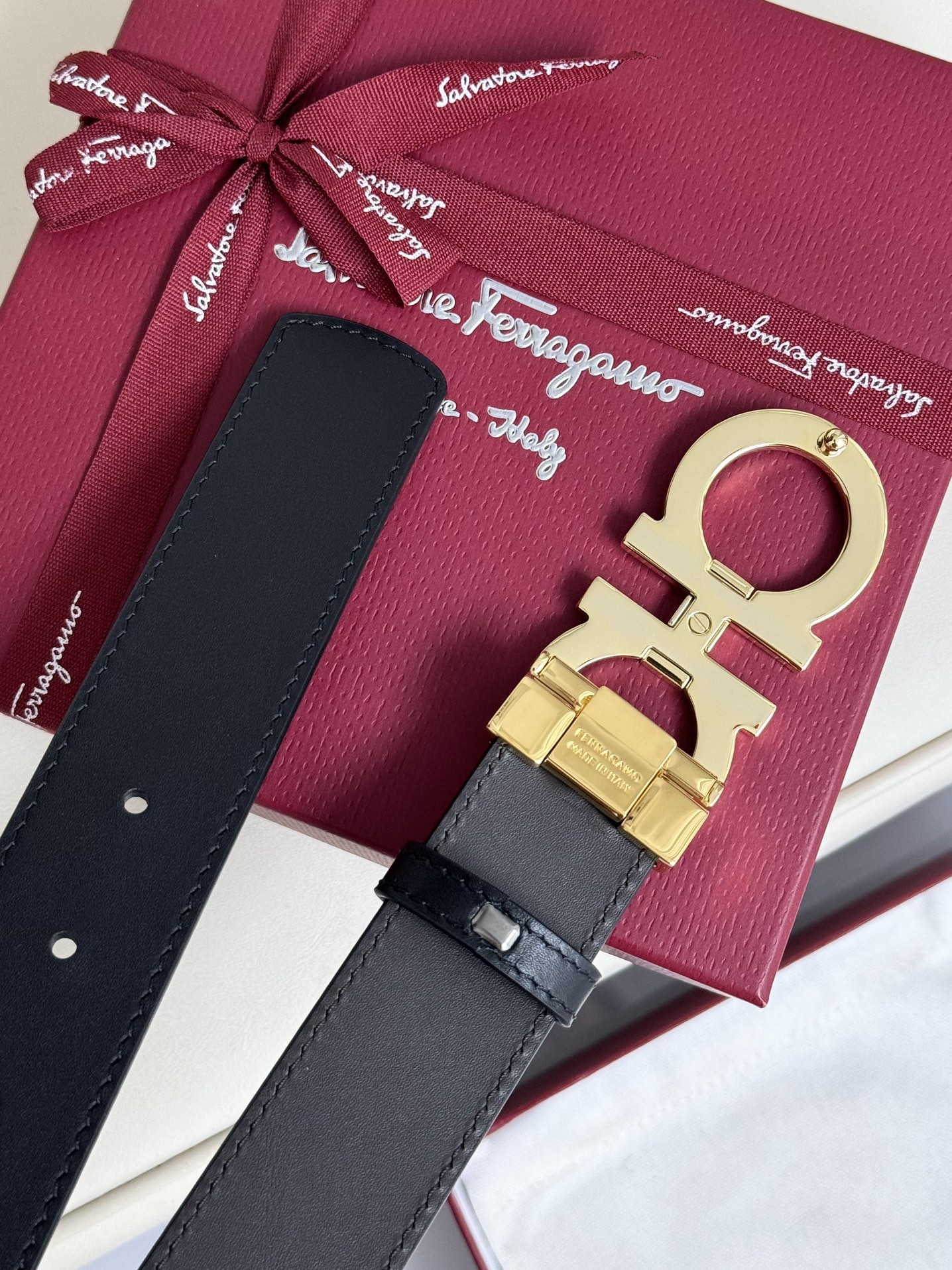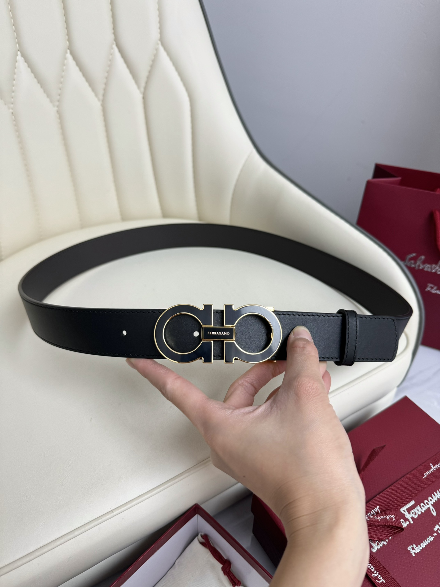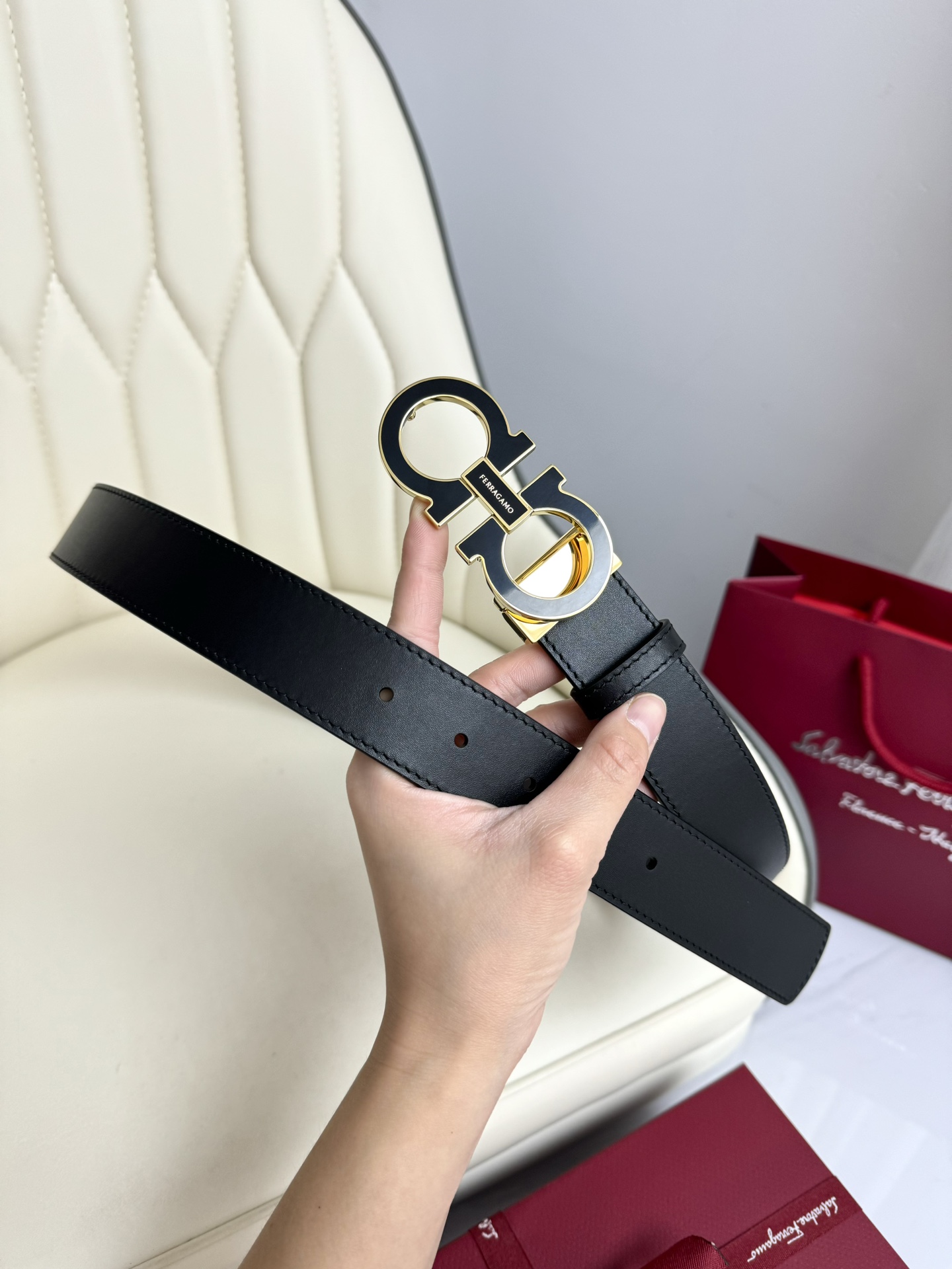 这款皮带是AAAAA 1:1 质量 (非常棒). 使用了和原版一模一样的材料. 商标部分也保持了和菲拉格慕/Salvatore Ferragamo一样. 图片拍摄是实物皮带拍摄, 您所收到的实物保证和我们图片一模一样.