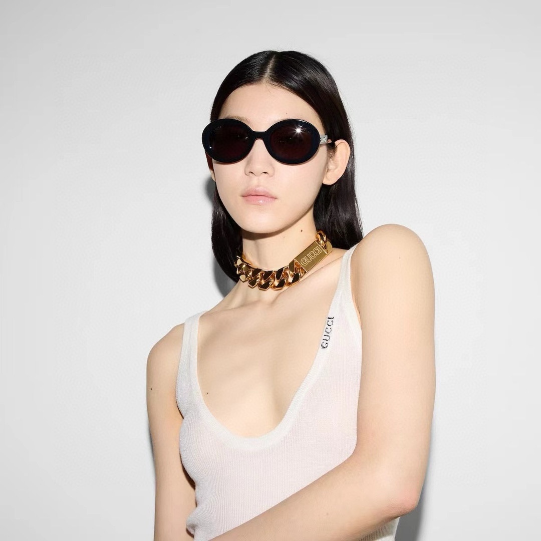 这款太阳眼镜是AAAAA 1:1 质量 (非常棒). 使用了和原版一模一样的材料. 商标部分也保持了和古奇/Gucci一样. 图片拍摄是实物太阳眼镜拍摄, 您所收到的实物保证和我们图片一模一样.
