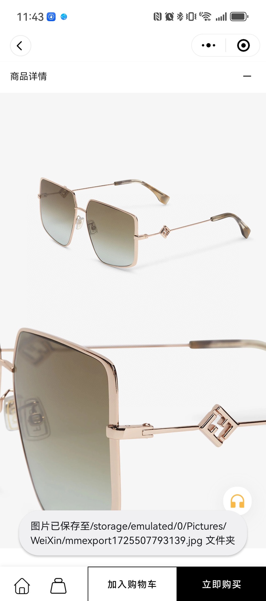 这款太阳眼镜是AAAAA 1:1 质量 (非常棒). 使用了和原版一模一样的材料. 商标部分也保持了和芬迪/Fendi一样. 图片拍摄是实物太阳眼镜拍摄, 您所收到的实物保证和我们图片一模一样.