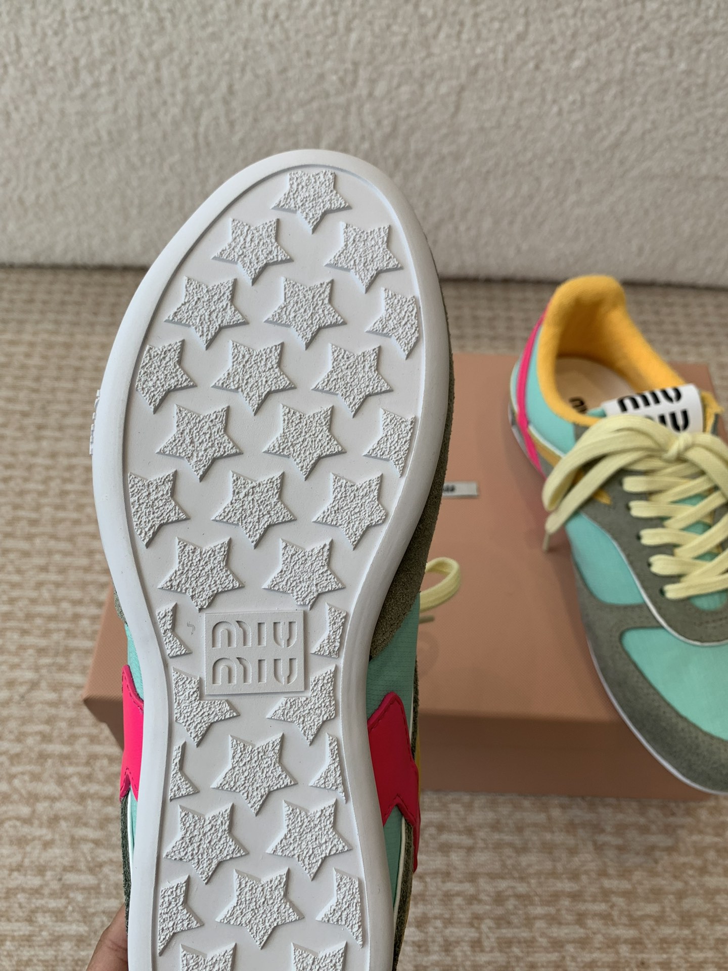 这款鞋子是AAAAA 1:1 质量 (非常棒). 使用了和原版一模一样的材料. 商标部分也保持了和缪缪/Miu Miu一样. 图片拍摄是实物鞋子拍摄, 您所收到的实物保证和我们图片一模一样.