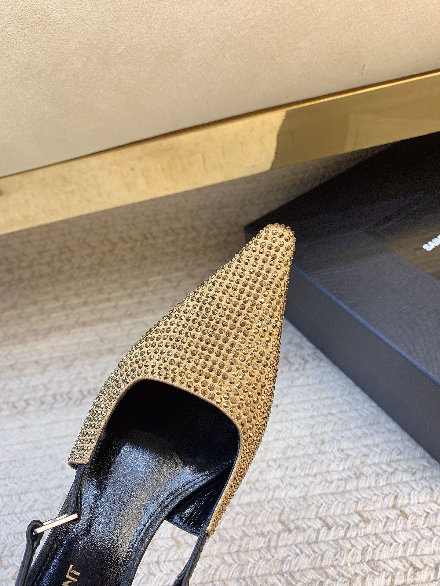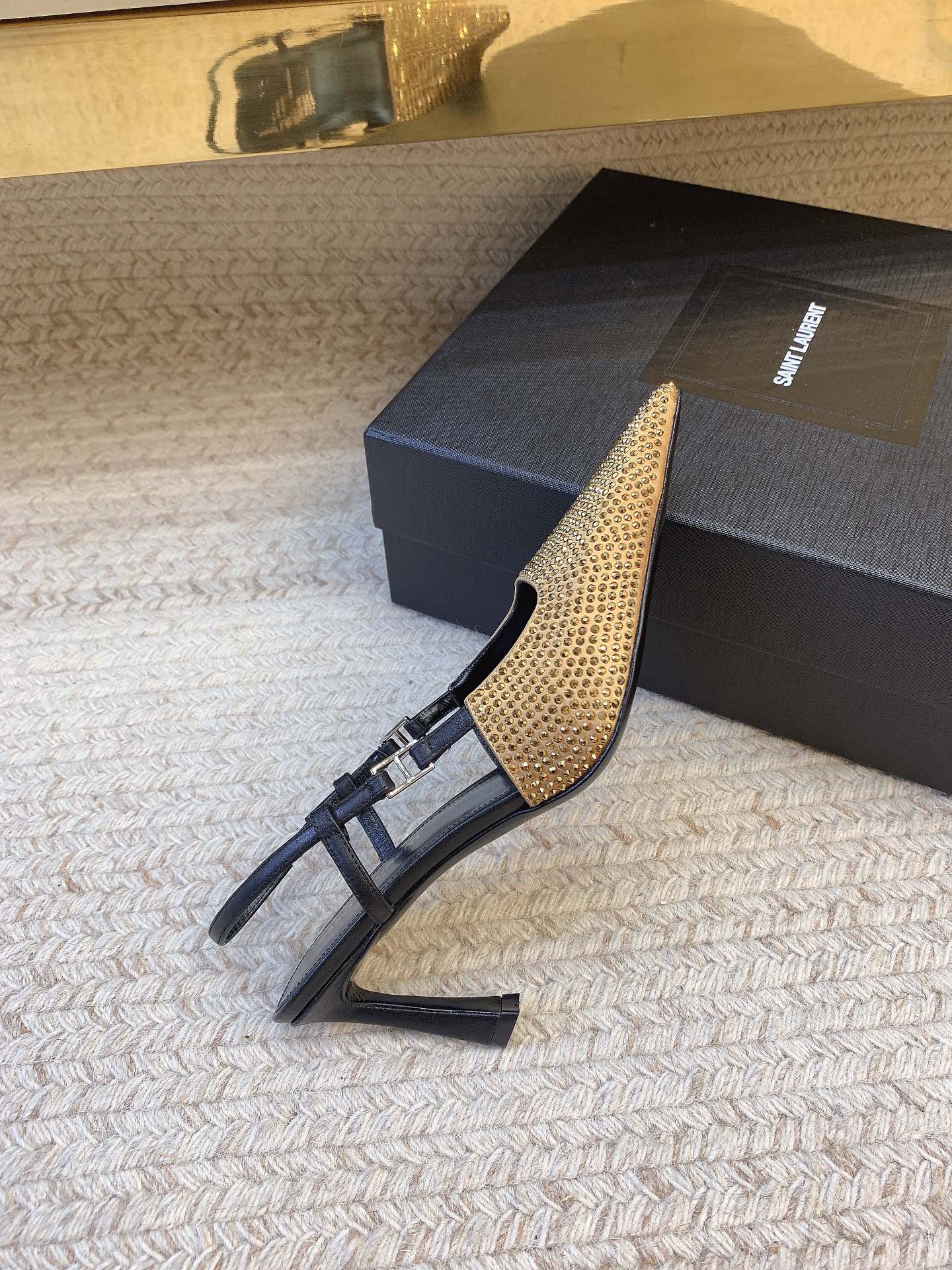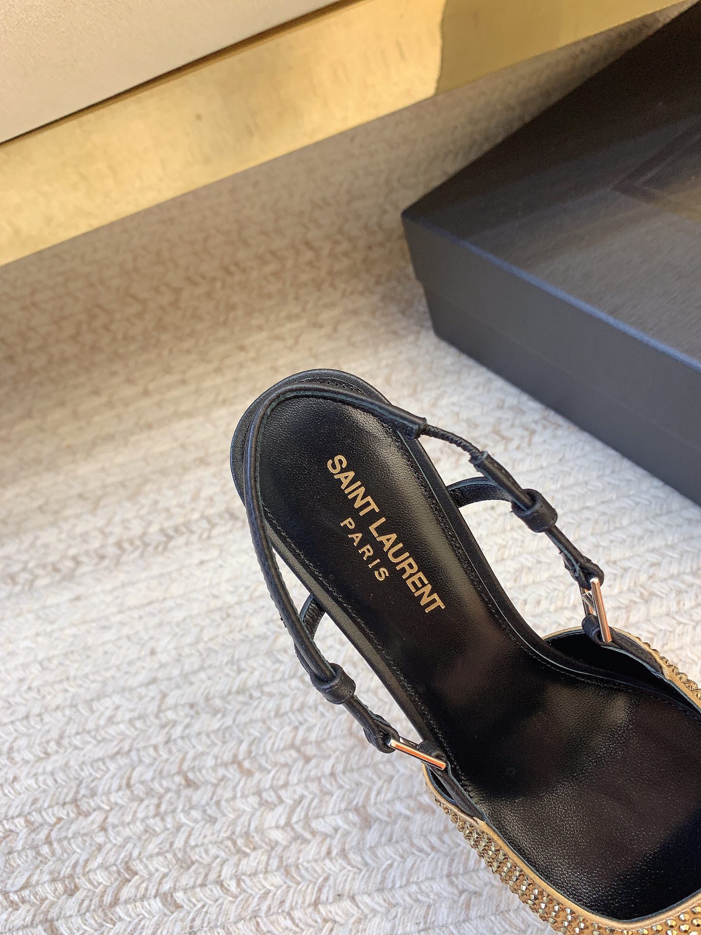 这款鞋子是AAAAA 1:1 质量 (非常棒). 使用了和原版一模一样的材料. 商标部分也保持了和圣罗兰/Saint Laurent一样. 图片拍摄是实物鞋子拍摄, 您所收到的实物保证和我们图片一模一样.