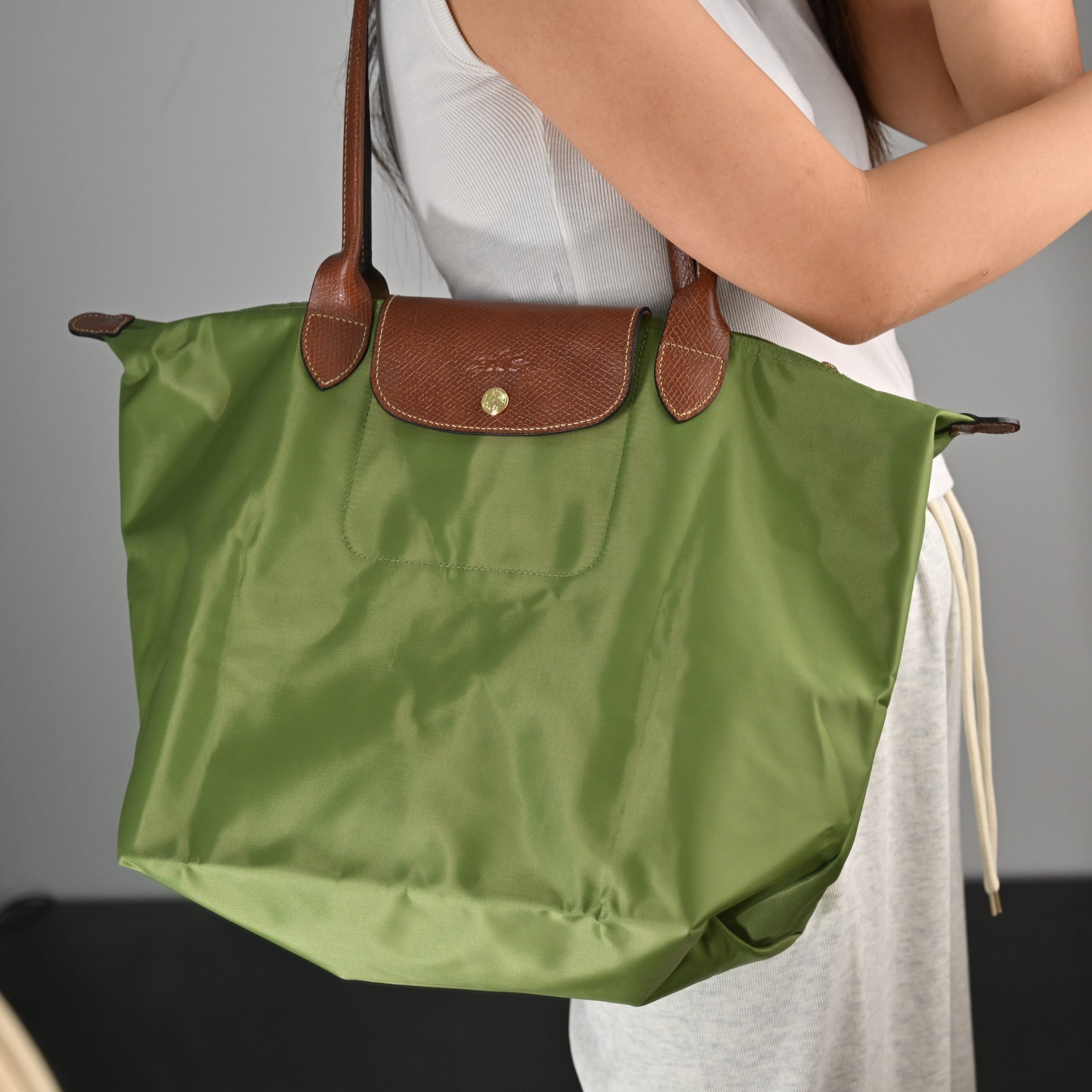 这款包包是AAAAA 1:1 质量 (非常棒). 使用了和原版一模一样的材料. 商标部分也保持了和Longchamp一样. 图片拍摄是实物包包拍摄, 您所收到的实物保证和我们图片一模一样.