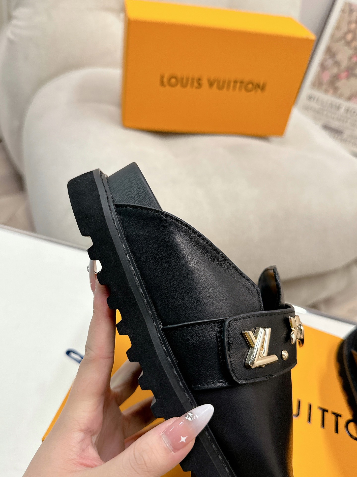 这款鞋子是AAAAA 1:1 质量 (非常棒). 使用了和原版一模一样的材料. 商标部分也保持了和路易威登/Louis Vuitton一样. 图片拍摄是实物鞋子拍摄, 您所收到的实物保证和我们图片一模一样.