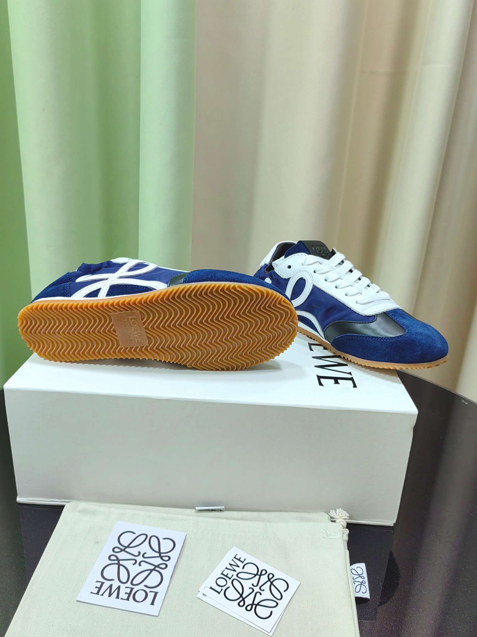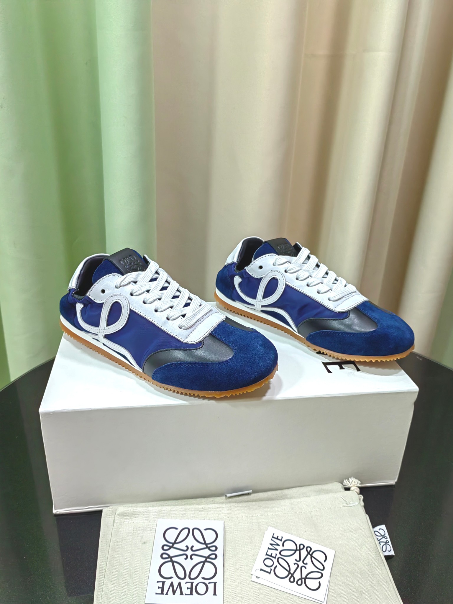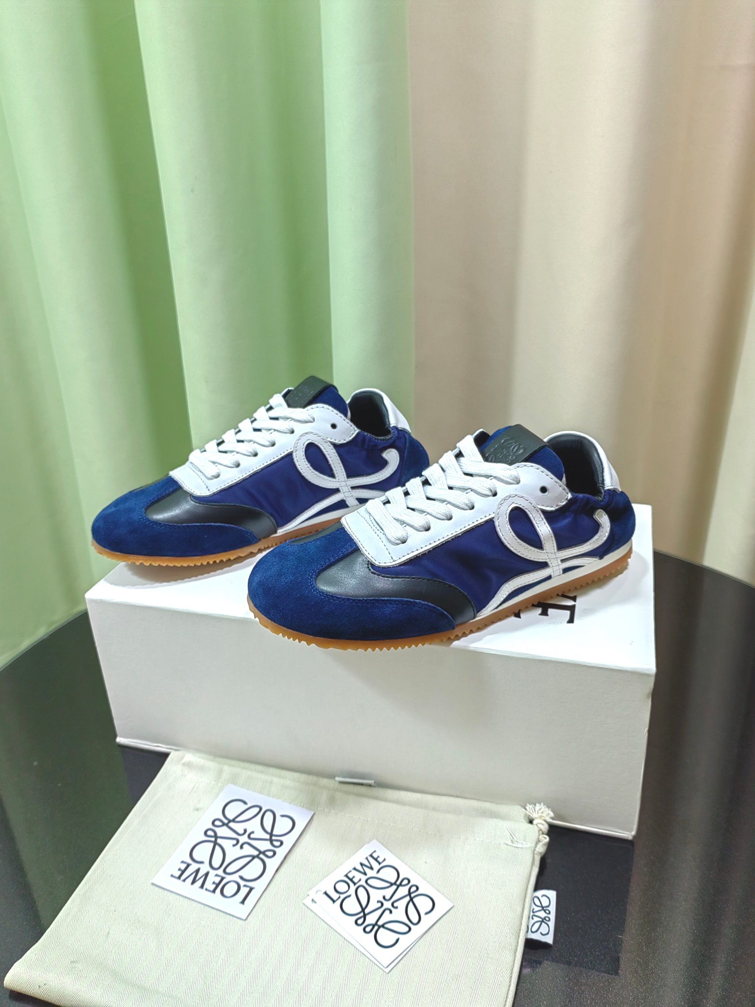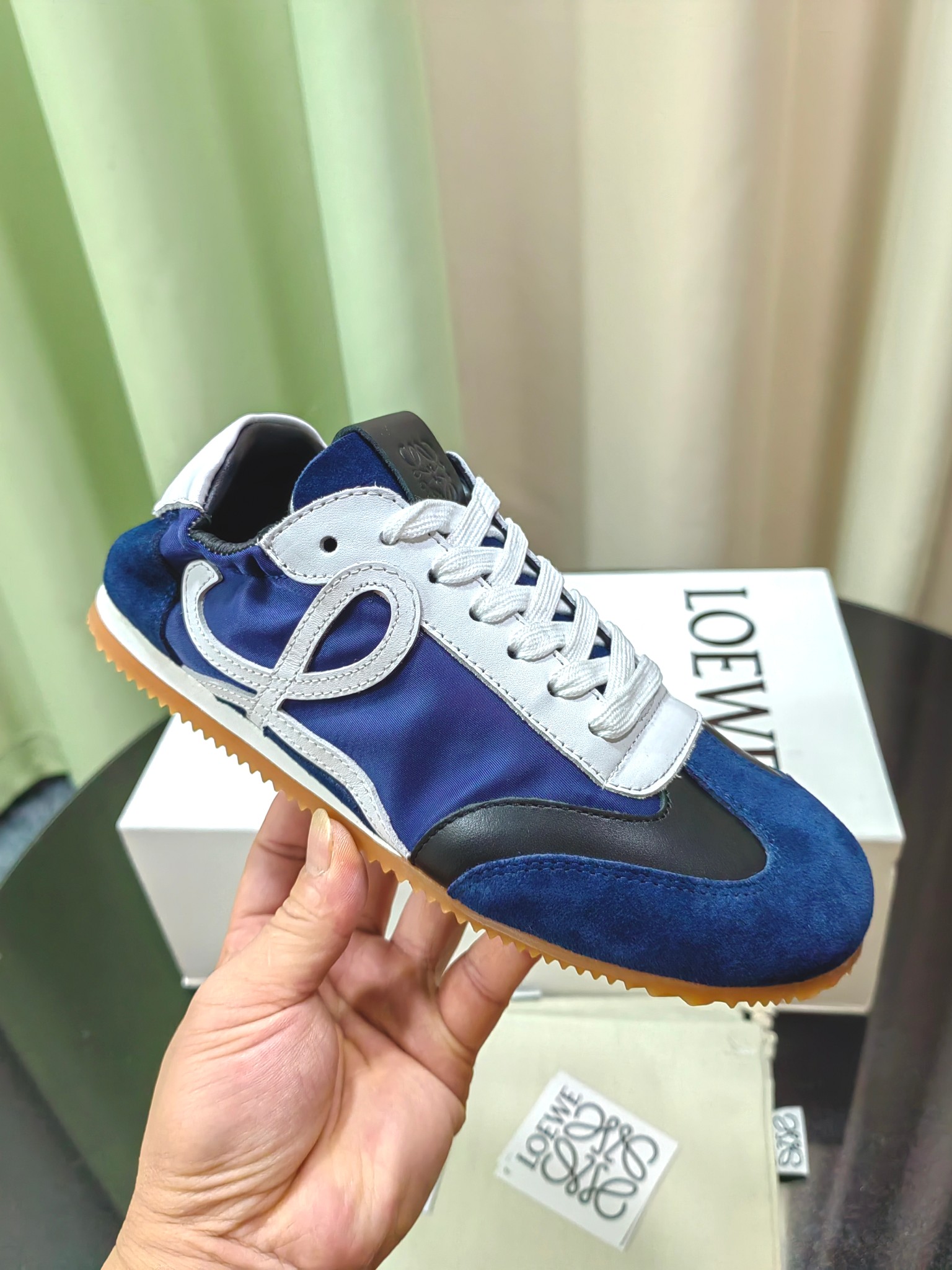 这款鞋子是AAAAA 1:1 质量 (非常棒). 使用了和原版一模一样的材料. 商标部分也保持了和罗意威/Loewe一样. 图片拍摄是实物鞋子拍摄, 您所收到的实物保证和我们图片一模一样.