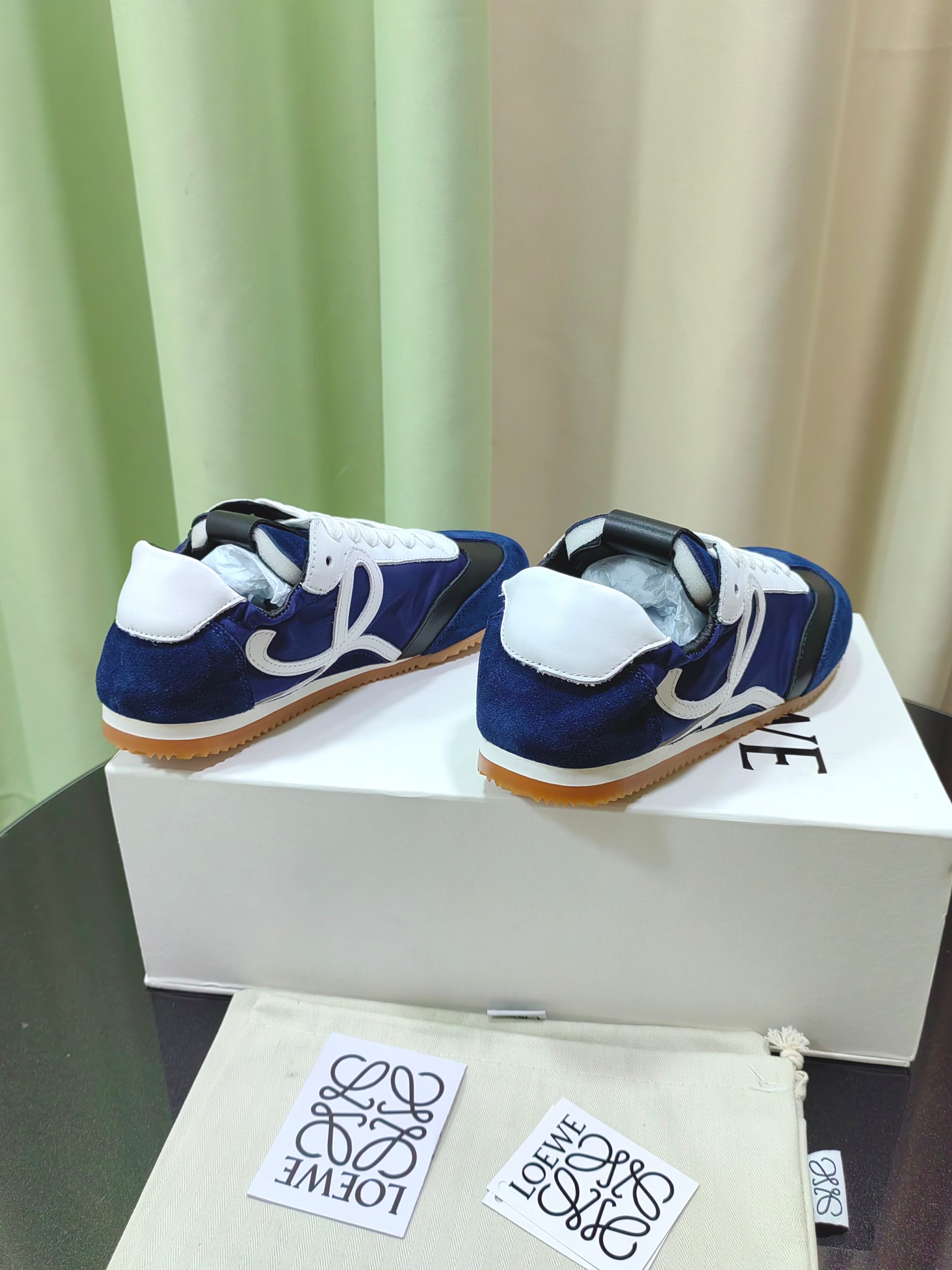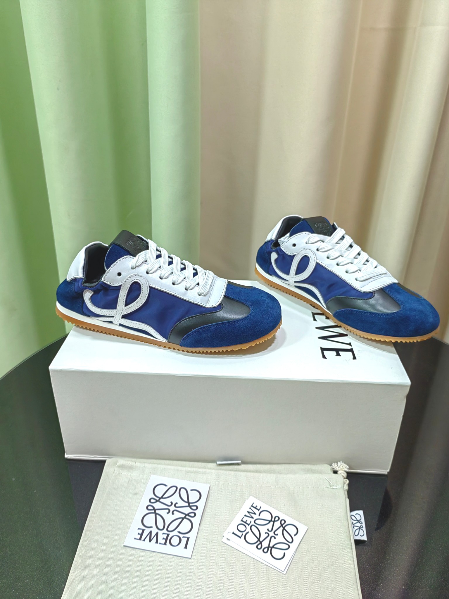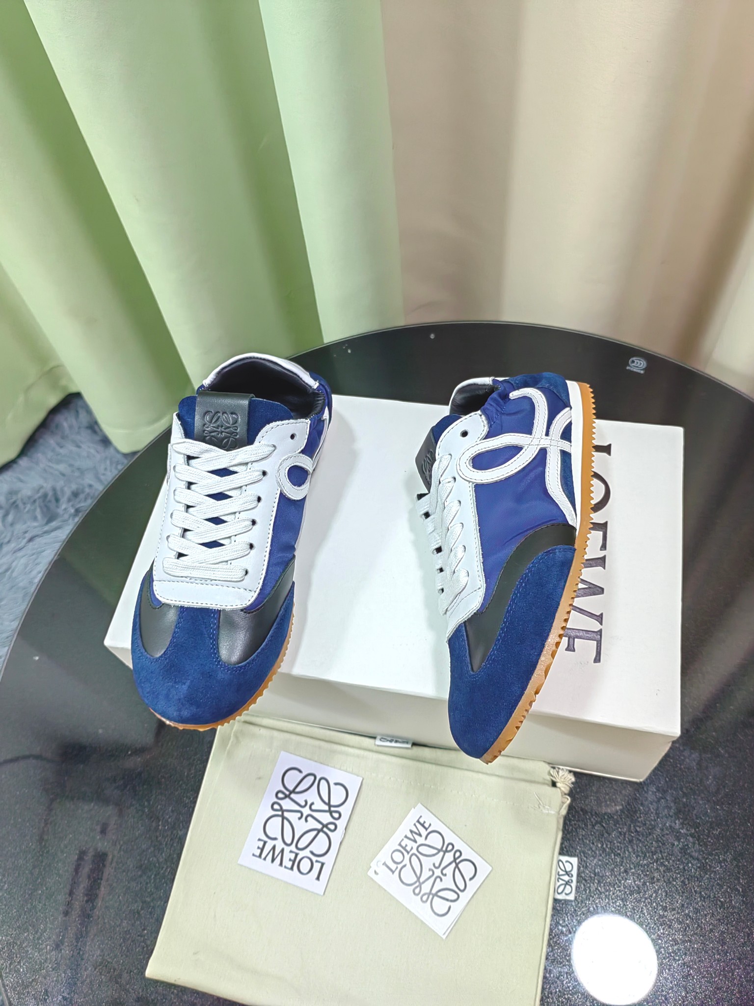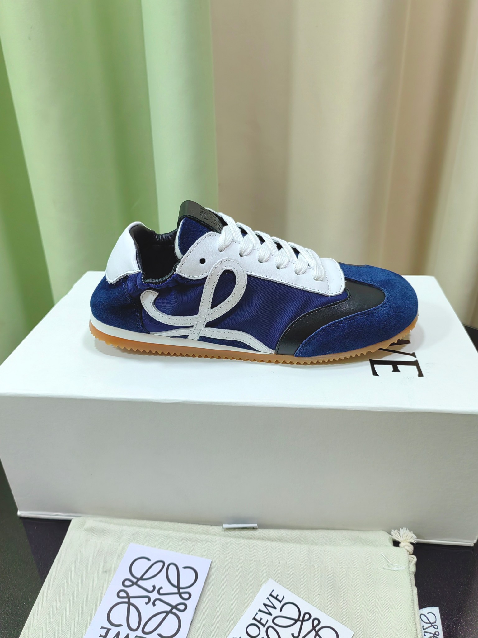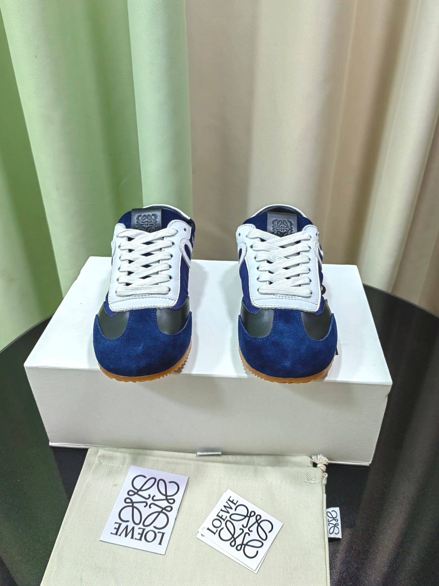 这款鞋子是AAAAA 1:1 质量 (非常棒). 使用了和原版一模一样的材料. 商标部分也保持了和罗意威/Loewe一样. 图片拍摄是实物鞋子拍摄, 您所收到的实物保证和我们图片一模一样.