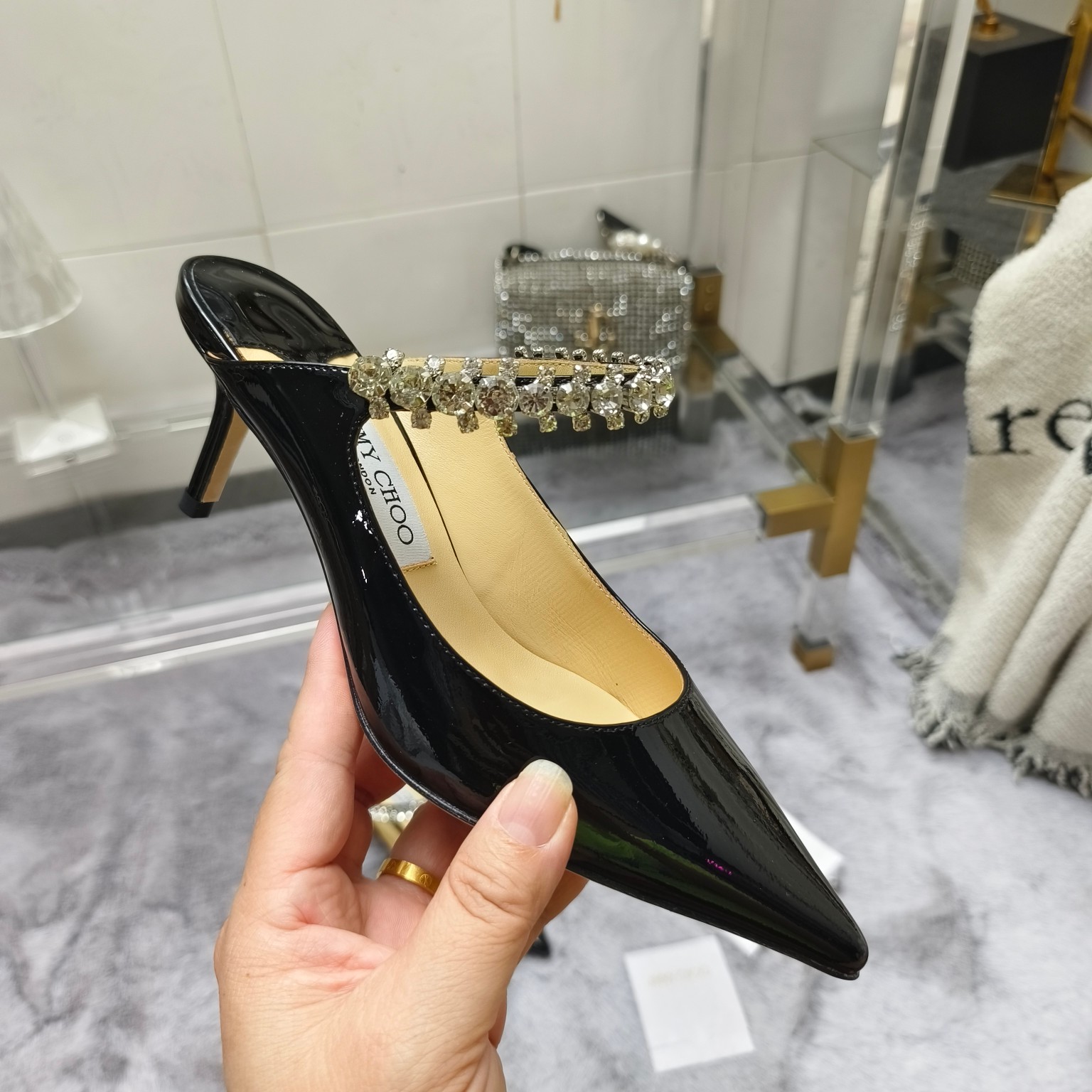 这款鞋子是AAAAA 1:1 质量 (非常棒). 使用了和原版一模一样的材料. 商标部分也保持了和吉米乔/JIMMY CHOO一样. 图片拍摄是实物鞋子拍摄, 您所收到的实物保证和我们图片一模一样.