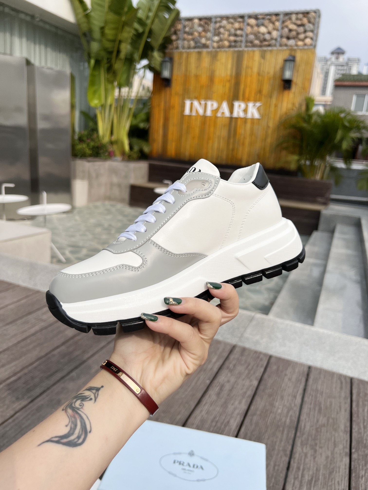 这款鞋子是AAAAA 1:1 质量 (非常棒). 使用了和原版一模一样的材料. 商标部分也保持了和普拉达/Prada一样. 图片拍摄是实物鞋子拍摄, 您所收到的实物保证和我们图片一模一样.