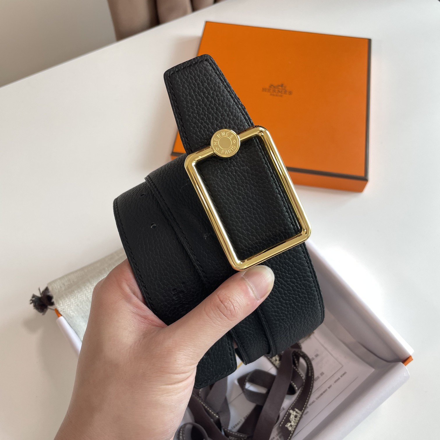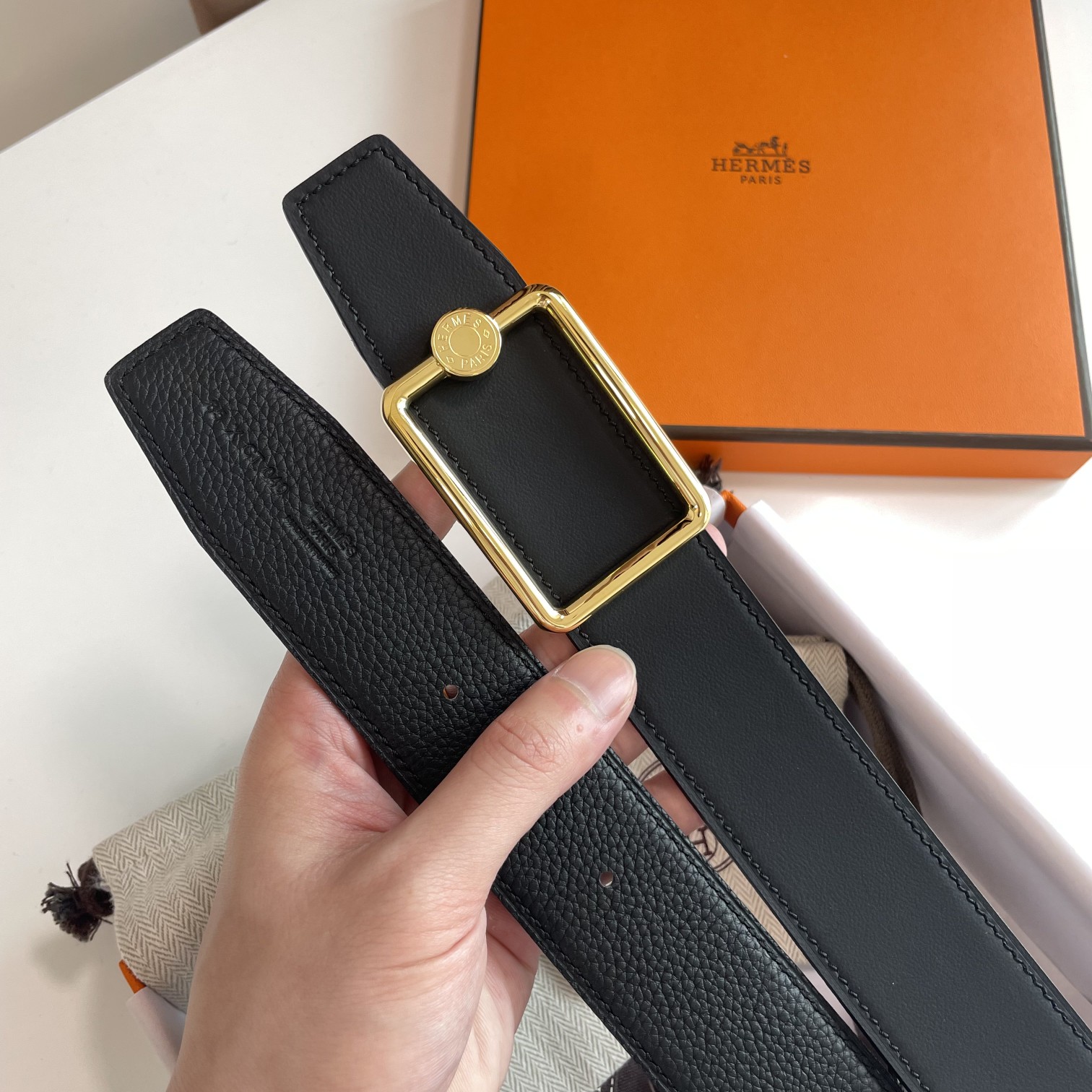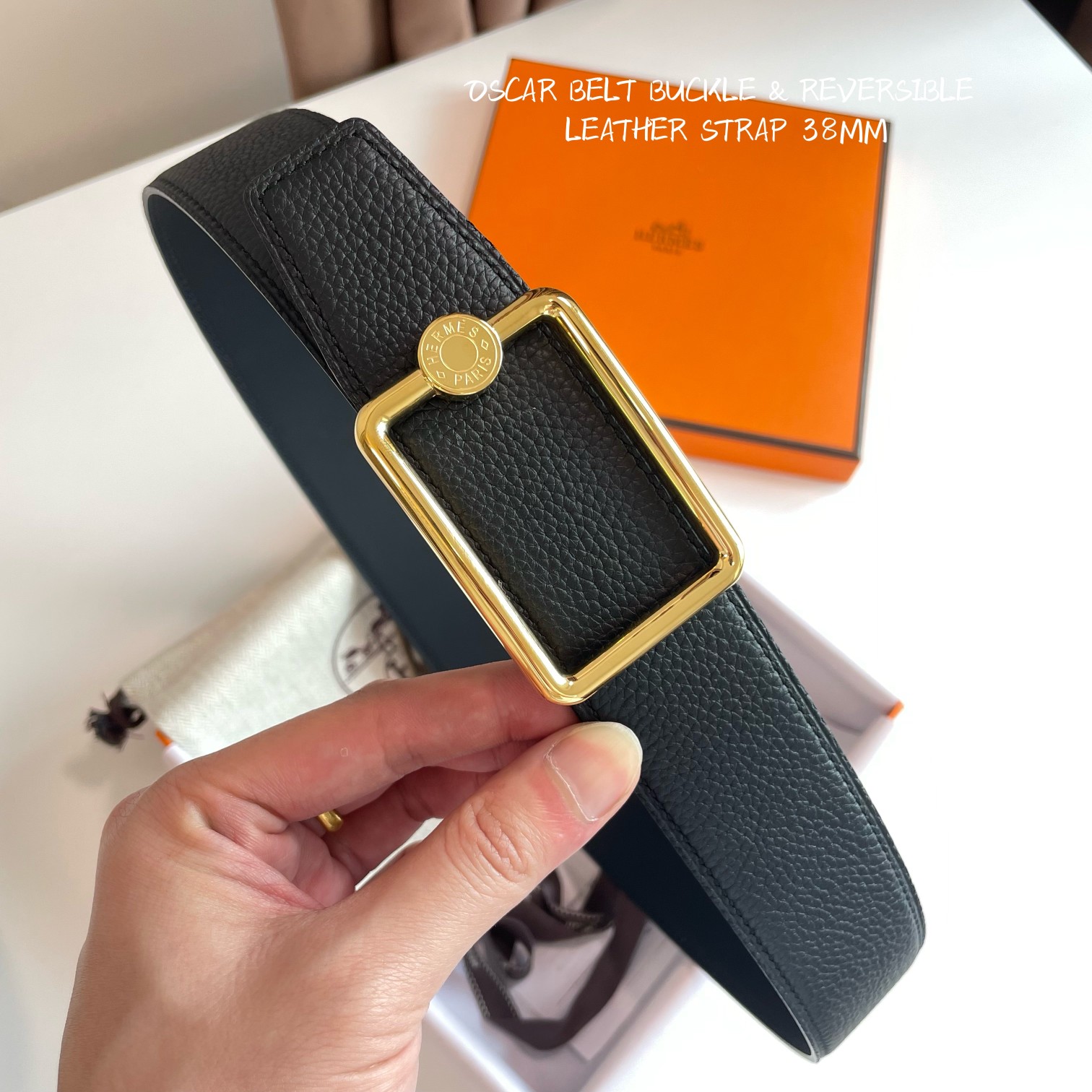 这款皮带是AAAAA 1:1 质量 (非常棒). 使用了和原版一模一样的材料. 商标部分也保持了和爱马仕/Hermes一样. 图片拍摄是实物皮带拍摄, 您所收到的实物保证和我们图片一模一样.