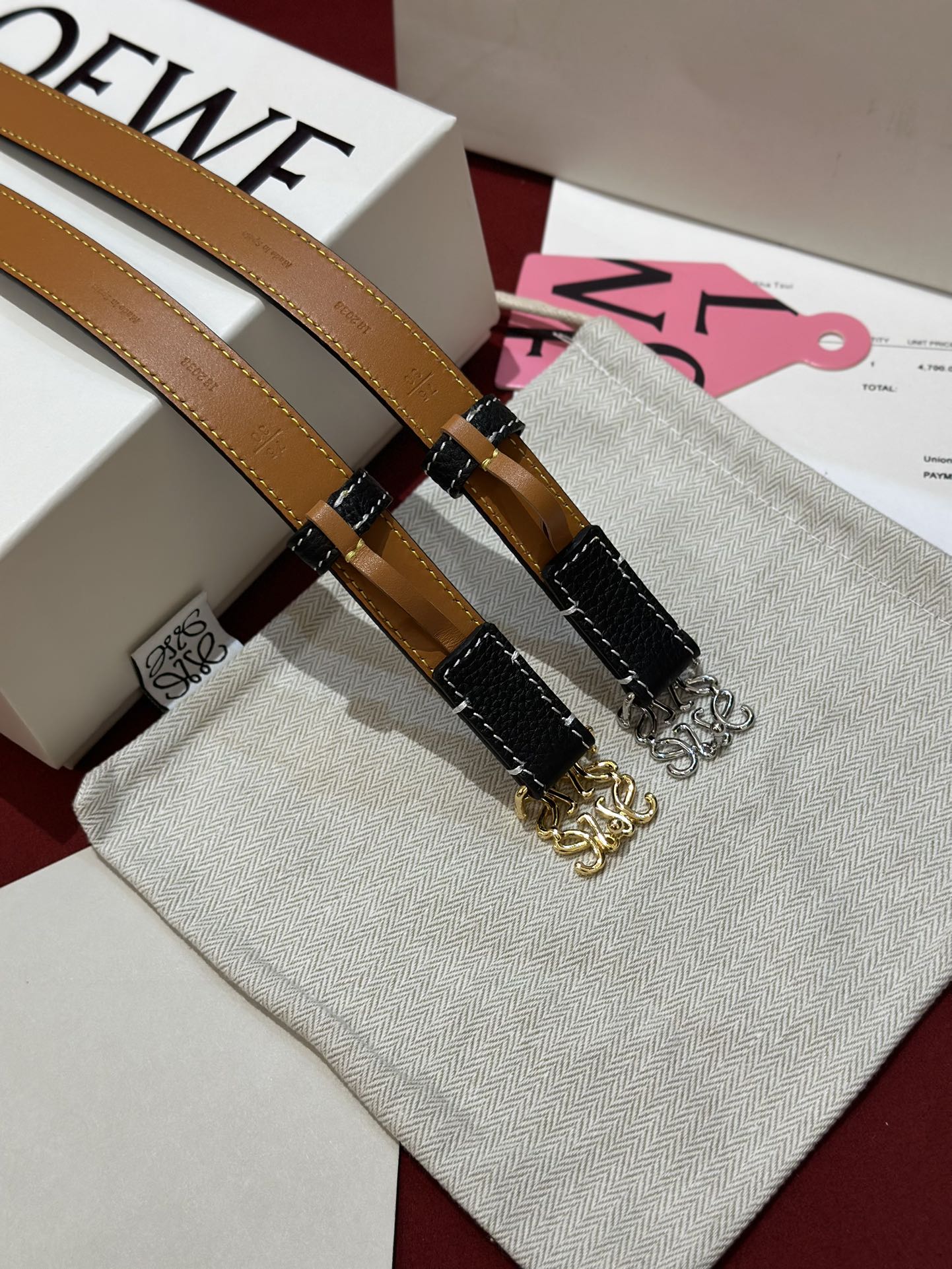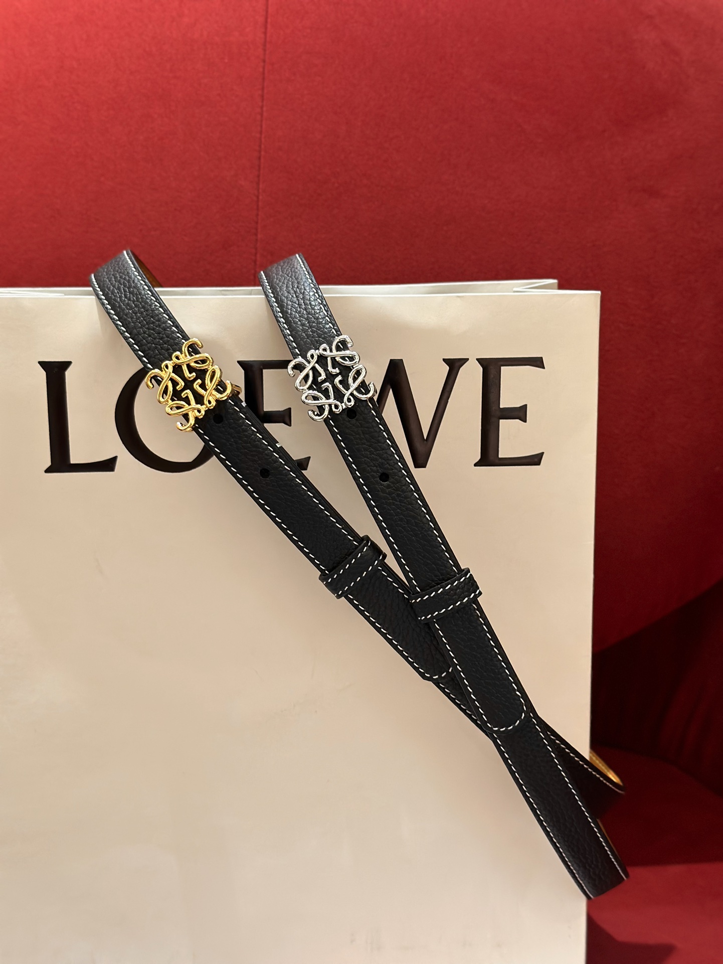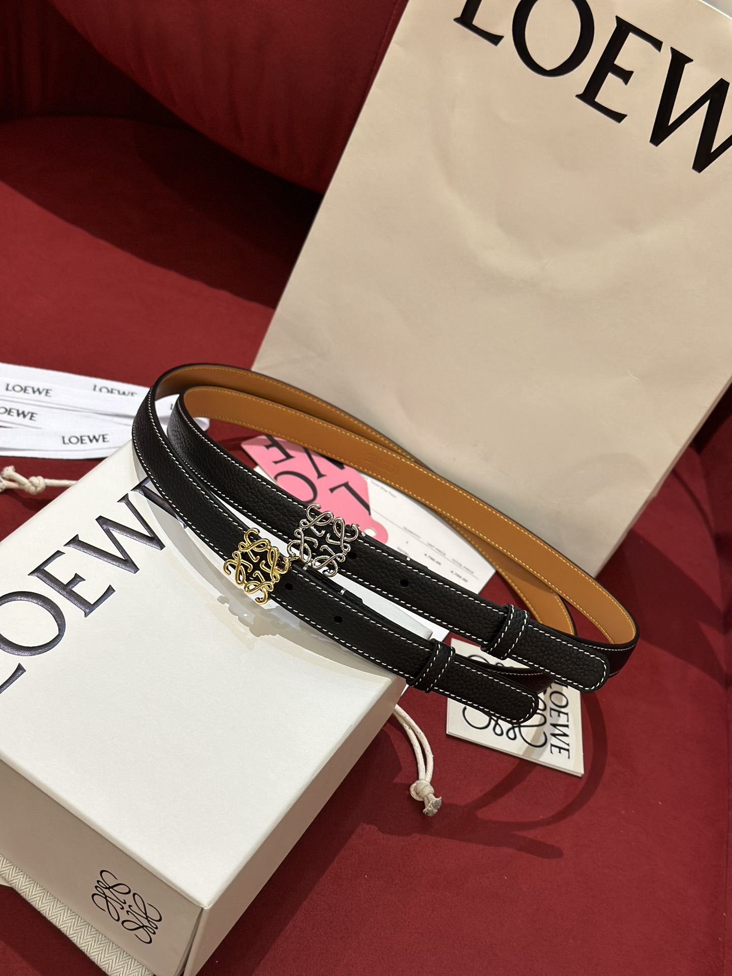 这款皮带是AAAAA 1:1 质量 (非常棒). 使用了和原版一模一样的材料. 商标部分也保持了和罗意威/Loewe一样. 图片拍摄是实物皮带拍摄, 您所收到的实物保证和我们图片一模一样.